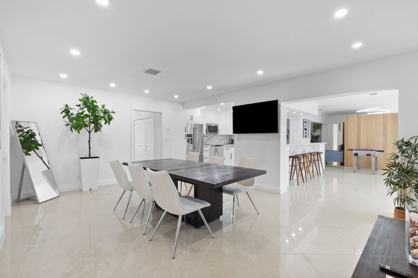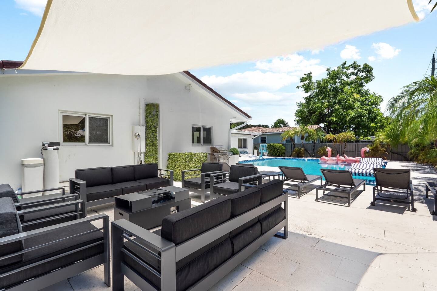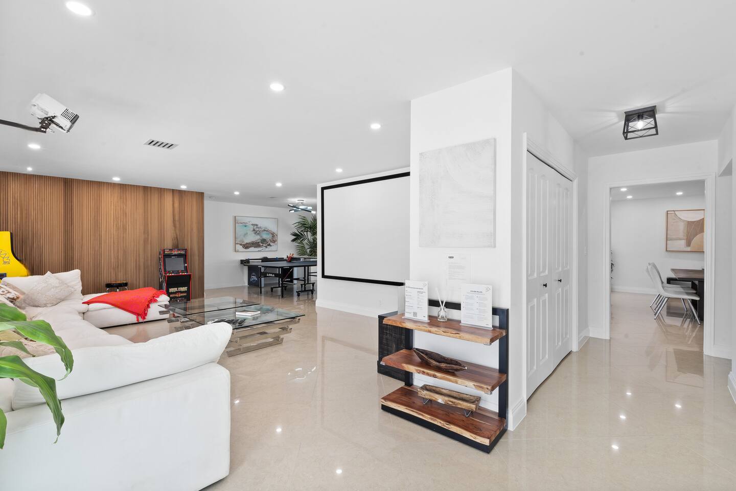 🏖️ÁREA: Esta moderna mansión está ubicada en uno de los barrios residenciales más codiciados de Miami, ofreciendo la rara combinación de paz, privacidad y conveniencia. Es lo mejor de ambos mundos: escondida en una calle tranquila y arbolada, pero a solo minutos de Hollywood Beach. * A pocos minutos en coche de playas bañadas por el sol: siente la brisa marina, hunde los pies en la arena y disfruta del encanto costero. * Cerca de parques familiares, tiendas y restaurantes de primera categoría, asegurando entretenimiento y gastronomía para todos los gustos y edades. * Fácil acceso a centros comerciales premium y a todas las experiencias icónicas de Miami que hacen de esta ciudad algo inolvidable. Ya sea que vengas a relajarte o a explorar, esta ubicación es el punto de partida ideal. 🏡 ESPACIO: Esta casa no solo es hermosa, sino también funcional, acogedora y sumamente espaciosa. Diseñada para familias grandes, grupos multigeneracionales o escapadas de amigos, la distribución garantiza que todos tengan su propio espacio para descansar, además de áreas comunes para convivir. Dentro de la mansión encontrarás: * 6 habitaciones diseñadas cuidadosamente + 2 espacios adicionales tipo dormitorio. * 5 baños completos con acabados de lujo y mucho espacio * Áreas de estar amplias y luminosas con decoración moderna y muebles cómodos * Home theater dedicado con proyector—perfecto para noches de cine en familia * Sauna en casa para máxima relajación * Piscina estilo resort con tumbonas * Cocina moderna totalmente equipada con electrodomésticos premium y comedor para 8+ * Área de comedor exterior con parrilla BBQ—ideal para comidas al aire libre * Wi-Fi de alta velocidad en toda la casa * Dos sistemas centrales de A/C para mantenerte fresco y cómodo * Lavandería en casa con lavadora/secadora * Gran patio trasero con jardines bellamente diseñados Esto es más que un alquiler vacacional: es tu hogar en Miami, ofreciendo calidez, espacio y comodidades modernas para que tu grupo se relaje, reconecte y cree recuerdos increíbles juntos.