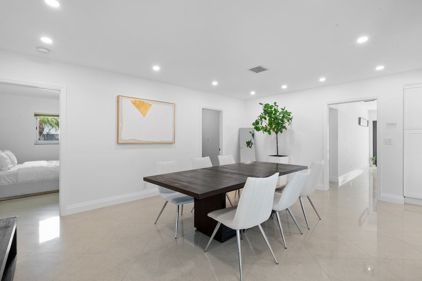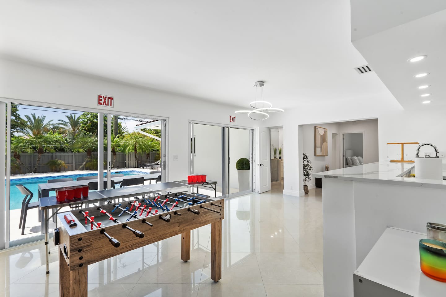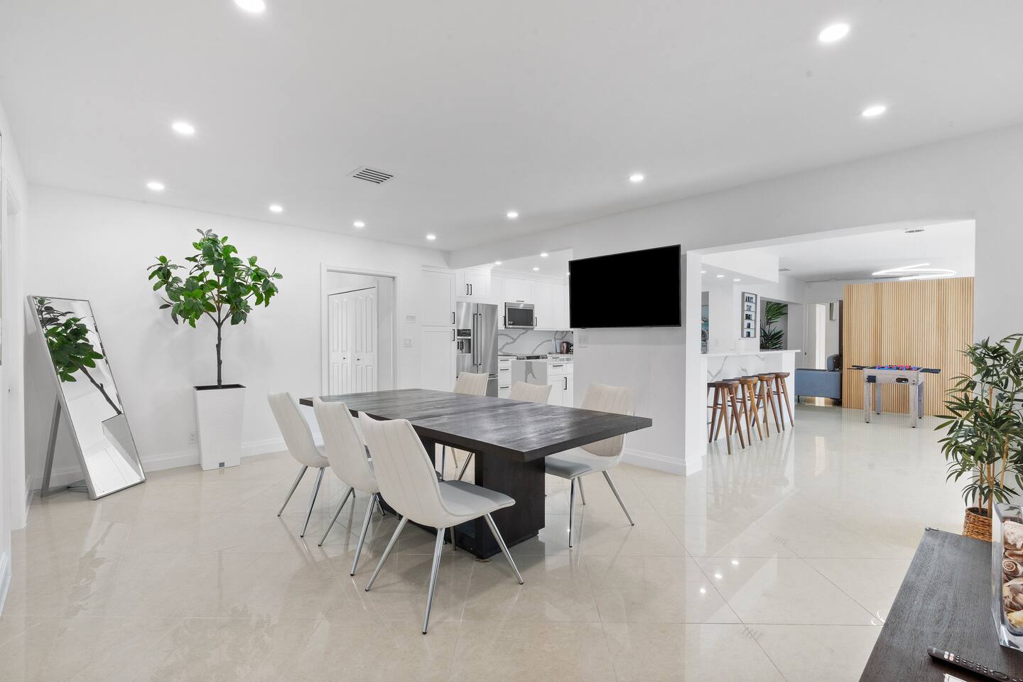 🏖️ÁREA: Esta moderna mansión está ubicada en uno de los barrios residenciales más codiciados de Miami, ofreciendo la rara combinación de paz, privacidad y conveniencia. Es lo mejor de ambos mundos: escondida en una calle tranquila y arbolada, pero a solo minutos de Hollywood Beach. * A pocos minutos en coche de playas bañadas por el sol: siente la brisa marina, hunde los pies en la arena y disfruta del encanto costero. * Cerca de parques familiares, tiendas y restaurantes de primera categoría, asegurando entretenimiento y gastronomía para todos los gustos y edades. * Fácil acceso a centros comerciales premium y a todas las experiencias icónicas de Miami que hacen de esta ciudad algo inolvidable. Ya sea que vengas a relajarte o a explorar, esta ubicación es el punto de partida ideal. 🏡 ESPACIO: Esta casa no solo es hermosa, sino también funcional, acogedora y sumamente espaciosa. Diseñada para familias grandes, grupos multigeneracionales o escapadas de amigos, la distribución garantiza que todos tengan su propio espacio para descansar, además de áreas comunes para convivir. Dentro de la mansión encontrarás: * 6 habitaciones diseñadas cuidadosamente + 2 espacios adicionales tipo dormitorio. * 5 baños completos con acabados de lujo y mucho espacio * Áreas de estar amplias y luminosas con decoración moderna y muebles cómodos * Home theater dedicado con proyector—perfecto para noches de cine en familia * Sauna en casa para máxima relajación * Piscina estilo resort con tumbonas * Cocina moderna totalmente equipada con electrodomésticos premium y comedor para 8+ * Área de comedor exterior con parrilla BBQ—ideal para comidas al aire libre * Wi-Fi de alta velocidad en toda la casa * Dos sistemas centrales de A/C para mantenerte fresco y cómodo * Lavandería en casa con lavadora/secadora * Gran patio trasero con jardines bellamente diseñados Esto es más que un alquiler vacacional: es tu hogar en Miami, ofreciendo calidez, espacio y comodidades modernas para que tu grupo se relaje, reconecte y cree recuerdos increíbles juntos.
