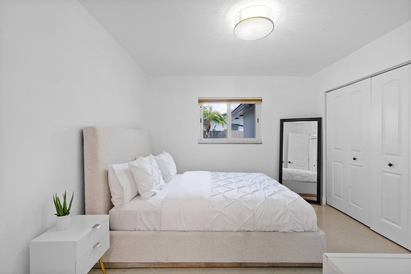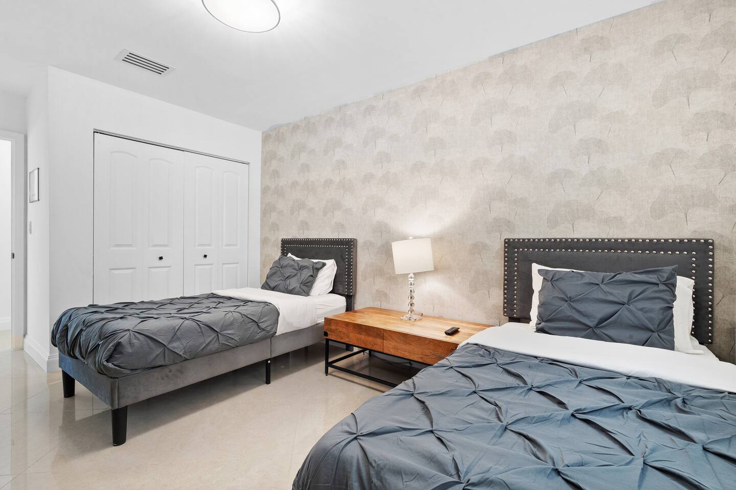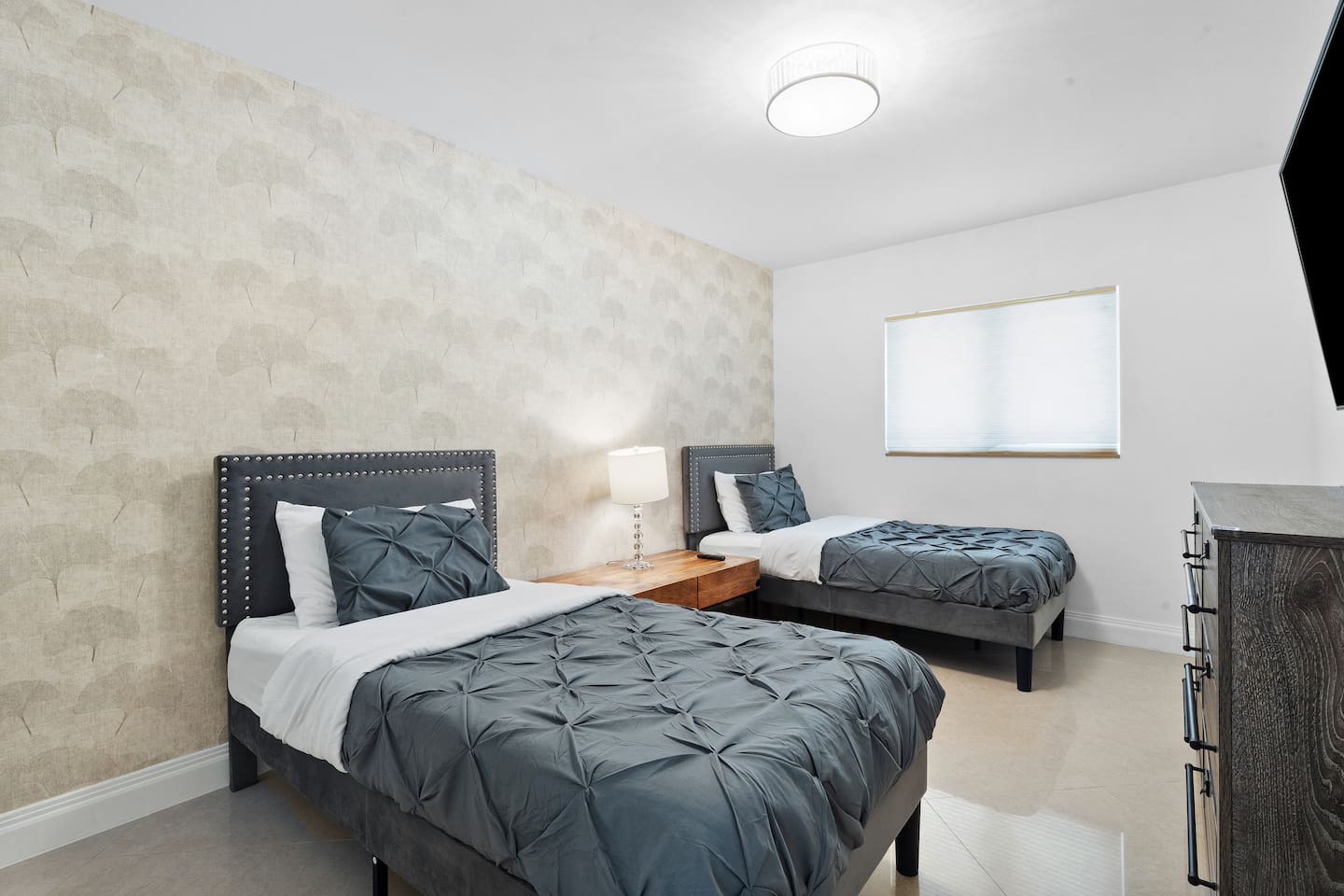 🛌 DORMITORIOS: - Dormitorio 1: Cama king size - Dormitorio 2: Cama king size - Dormitorio 3: Cama king size - Dormitorio 4: Cama queen size - Dormitorio 5: Cama queen size - Dormitorio 6: Cama queen size * 2 espacios adicionales para dormir para mayor flexibilidad: - Sala de estar 2: 1 cama queen - Sala de estar 3: 2 camas individuales Cada dormitorio ofrece un refugio acogedor y elegante donde puedes descansar, recargar energías y despertar renovado. Con ropa de cama de alta calidad, almohadas frescas y detalles pensados, cada huésped duerme con comodidad y estilo. 🚿 BAÑOS: No tendrás que esperar tu turno: hay un baño bellamente equipado en cada rincón. * Baño 1: El lujoso baño en suite, conectado a los dormitorios 1 y 2 (ubicado entre ambos), ofrece una amplia ducha tipo walk-in con ventanas en el techo para luz natural, grifería moderna y amenidades premium para una experiencia tipo spa. * Baño 2: Asignado al dormitorio 3 y ubicado justo al lado, es un baño bien equipado con ducha y bañera, perfecto para relajarse tras un largo día. * Baño 3: Asignado al dormitorio 4 y ubicado justo al lado, cuenta con ducha. * Baño 4: Con acceso privado desde el dormitorio 5, es un baño elegante con bañera. * Baño 5: Con acceso privado desde el dormitorio 6, otro baño espacioso con bañera. Todos los baños están equipados con lo esencial: toallas, amenidades premium y grifería moderna, asegurando una experiencia indulgente y cómoda durante tu estancia. 🎥 ÁREA DE ESTAR: El espacio central de la casa es el punto de reunión, lleno de luz y vida. * Diseño moderno y de concepto abierto que une a todos * TV HD de 60" con Hulu, perfecto para relajarse viendo tus programas favoritos * Home theater con proyector para noches de cine inmersivas con toda la familia * Mobiliario elegante y funcional * Grandes ventanales con vistas relajantes al patio privado y la piscina * Flujo natural hacia la cocina y el comedor, ideal para reuniones grupales Ya sea para charlas matutinas con café o historias nocturnas, este espacio invita a relajarse y quedarse un rato. 🍳COCINA Y COMEDOR: Crea magia culinaria y disfruta de las comidas con tu grupo en esta cocina y comedor modernos y bien equipados. * Cocina de última generación con electrodomésticos de acero inoxidable * Encimeras de cuarzo, gabinetes a medida y amplio espacio de preparación * Cafetera Keurig, licuadora, tostadora, tetera y más * Mesa de comedor para 8 en el interior y comedor exterior para 10 * Transición perfecta entre interior y exterior para esas cenas frescas de Miami * Parrilla BBQ a pasos de la piscina para asados bajo el sol Desde desayunos caseros hasta cenas de celebración, este espacio convierte cualquier comida en un recuerdo compartido. 💧AGUA PURIFICADA FILTRADA: Experimenta la diferencia de un agua más limpia y suave en toda la propiedad: * Favorece una piel y cabello más saludables para una rutina diaria refrescante * Mejora el sabor del agua para beber y cocinar * Promueve el bienestar general con filtración de alta calidad Disfruta de la tranquilidad de saber que usas tecnología avanzada de purificación de agua 🌴 ESPACIO EXTERIOR: ¡Tu oasis tropical privado te espera! Da un paso hacia el sol y la serenidad. * Piscina privada con 6 cómodas tumbonas * Parrilla BBQ con comedor exterior cercano * Patio trasero completamente cercado: seguro, espacioso y perfecto para juegos en familia * Sauna en casa, a solo pasos de la piscina para una relajación humeante * Hermosos jardines, el fondo perfecto para todas tus fotos de vacaciones Ya sea tomando el sol, asando a la parrilla o disfrutando de una bebida fresca junto a la piscina, este patio trasero cumple el sueño de Miami.