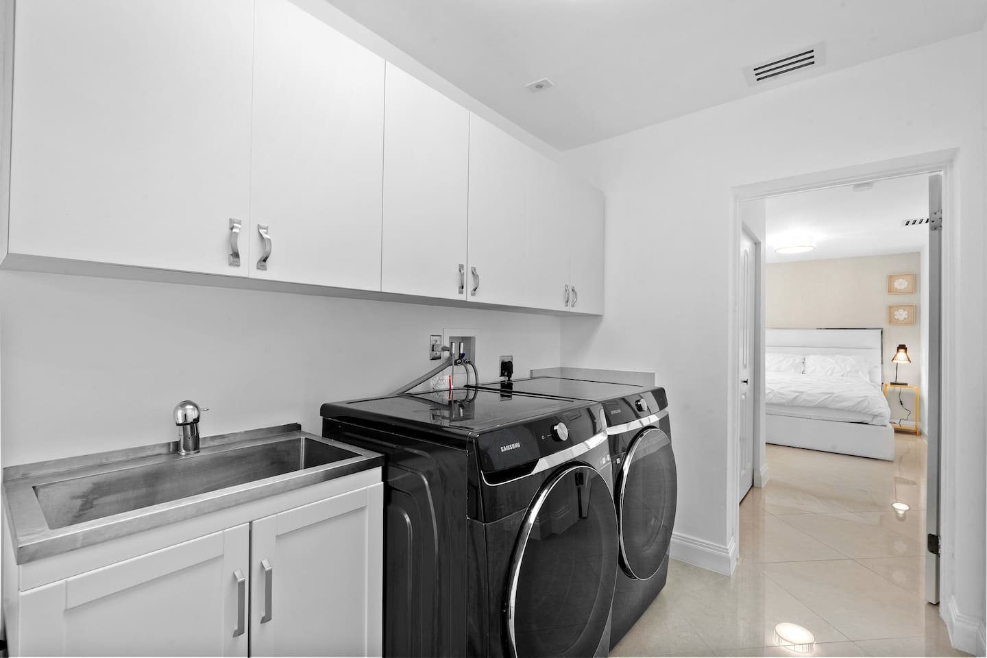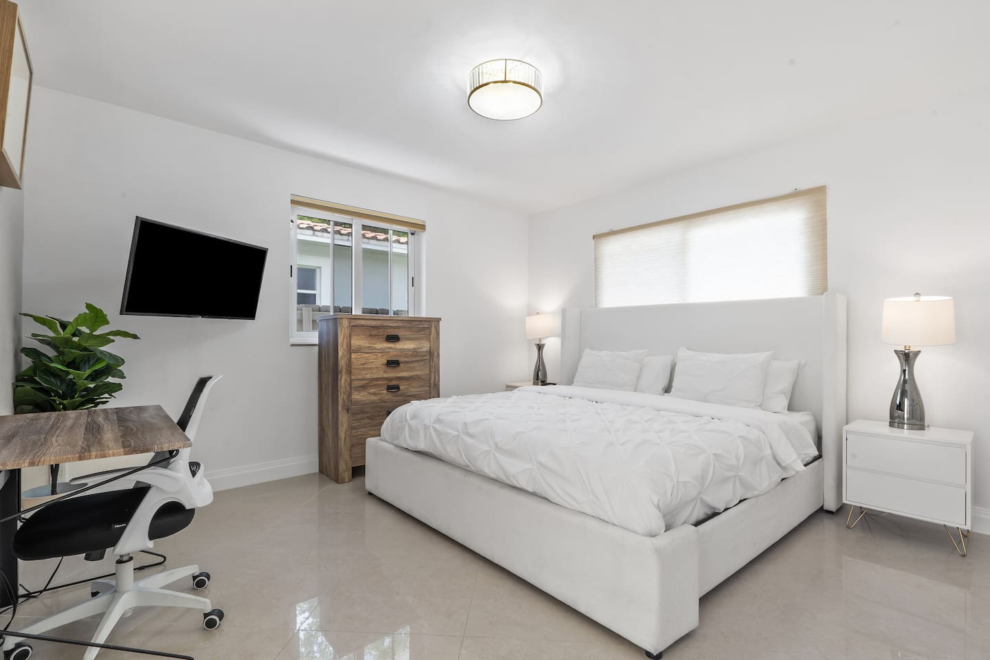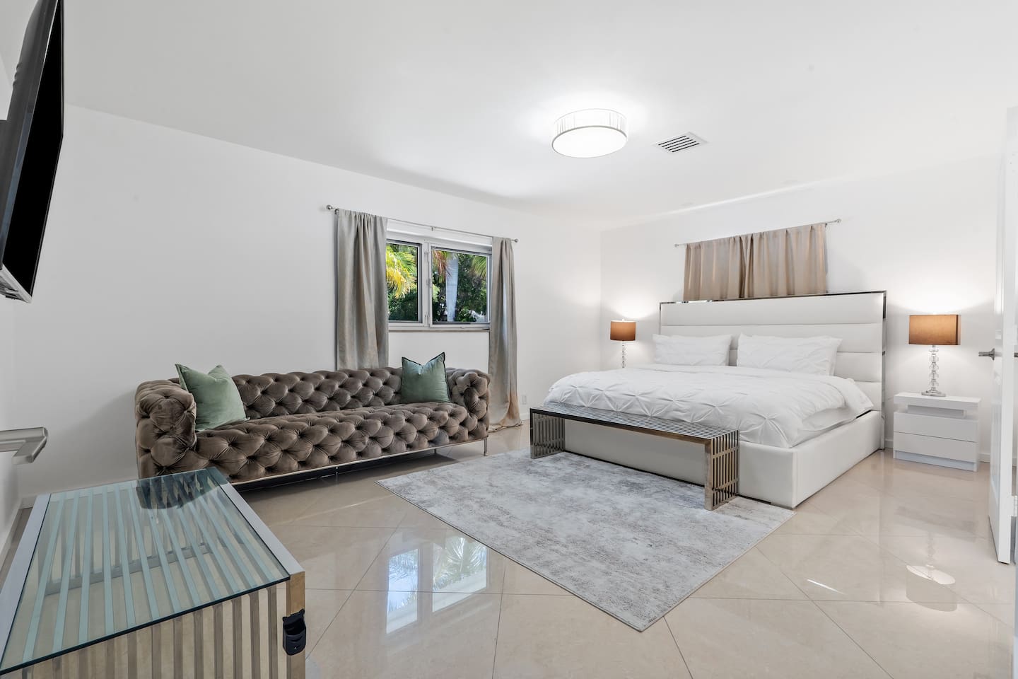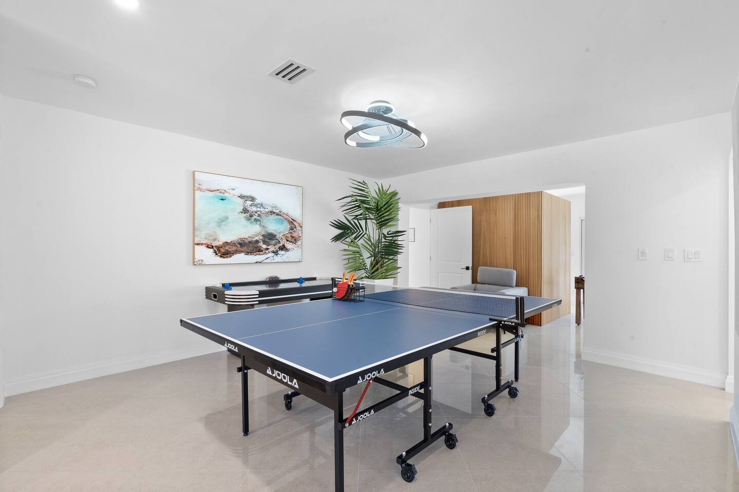 🛌 DORMITORIOS: - Dormitorio 1: Cama king size - Dormitorio 2: Cama king size - Dormitorio 3: Cama king size - Dormitorio 4: Cama queen size - Dormitorio 5: Cama queen size - Dormitorio 6: Cama queen size * 2 espacios adicionales para dormir para mayor flexibilidad: - Sala de estar 2: 1 cama queen - Sala de estar 3: 2 camas individuales Cada dormitorio ofrece un refugio acogedor y elegante donde puedes descansar, recargar energías y despertar renovado. Con ropa de cama de alta calidad, almohadas frescas y detalles pensados, cada huésped duerme con comodidad y estilo. 🚿 BAÑOS: No tendrás que esperar tu turno: hay un baño bellamente equipado en cada rincón. * Baño 1: El lujoso baño en suite, conectado a los dormitorios 1 y 2 (ubicado entre ambos), ofrece una amplia ducha tipo walk-in con ventanas en el techo para luz natural, grifería moderna y amenidades premium para una experiencia tipo spa. * Baño 2: Asignado al dormitorio 3 y ubicado justo al lado, es un baño bien equipado con ducha y bañera, perfecto para relajarse tras un largo día. * Baño 3: Asignado al dormitorio 4 y ubicado justo al lado, cuenta con ducha. * Baño 4: Con acceso privado desde el dormitorio 5, es un baño elegante con bañera. * Baño 5: Con acceso privado desde el dormitorio 6, otro baño espacioso con bañera. Todos los baños están equipados con lo esencial: toallas, amenidades premium y grifería moderna, asegurando una experiencia indulgente y cómoda durante tu estancia. 🎥 ÁREA DE ESTAR: El espacio central de la casa es el punto de reunión, lleno de luz y vida. * Diseño moderno y de concepto abierto que une a todos * TV HD de 60" con Hulu, perfecto para relajarse viendo tus programas favoritos * Home theater con proyector para noches de cine inmersivas con toda la familia * Mobiliario elegante y funcional * Grandes ventanales con vistas relajantes al patio privado y la piscina * Flujo natural hacia la cocina y el comedor, ideal para reuniones grupales Ya sea para charlas matutinas con café o historias nocturnas, este espacio invita a relajarse y quedarse un rato. 🍳COCINA Y COMEDOR: Crea magia culinaria y disfruta de las comidas con tu grupo en esta cocina y comedor modernos y bien equipados. * Cocina de última generación con electrodomésticos de acero inoxidable * Encimeras de cuarzo, gabinetes a medida y amplio espacio de preparación * Cafetera Keurig, licuadora, tostadora, tetera y más * Mesa de comedor para 8 en el interior y comedor exterior para 10 * Transición perfecta entre interior y exterior para esas cenas frescas de Miami * Parrilla BBQ a pasos de la piscina para asados bajo el sol Desde desayunos caseros hasta cenas de celebración, este espacio convierte cualquier comida en un recuerdo compartido. 💧AGUA PURIFICADA FILTRADA: Experimenta la diferencia de un agua más limpia y suave en toda la propiedad: * Favorece una piel y cabello más saludables para una rutina diaria refrescante * Mejora el sabor del agua para beber y cocinar * Promueve el bienestar general con filtración de alta calidad Disfruta de la tranquilidad de saber que usas tecnología avanzada de purificación de agua 🌴 ESPACIO EXTERIOR: ¡Tu oasis tropical privado te espera! Da un paso hacia el sol y la serenidad. * Piscina privada con 6 cómodas tumbonas * Parrilla BBQ con comedor exterior cercano * Patio trasero completamente cercado: seguro, espacioso y perfecto para juegos en familia * Sauna en casa, a solo pasos de la piscina para una relajación humeante * Hermosos jardines, el fondo perfecto para todas tus fotos de vacaciones Ya sea tomando el sol, asando a la parrilla o disfrutando de una bebida fresca junto a la piscina, este patio trasero cumple el sueño de Miami.