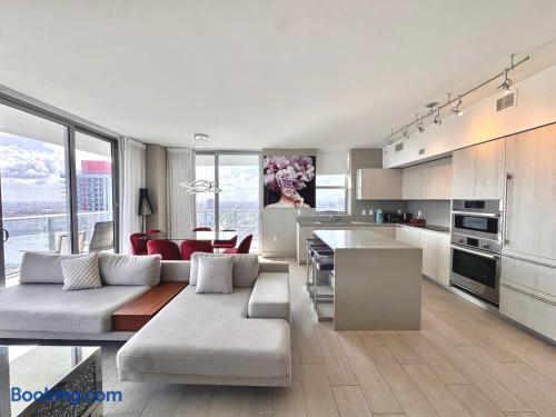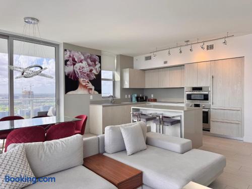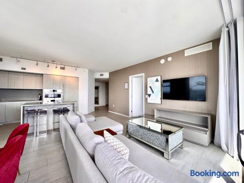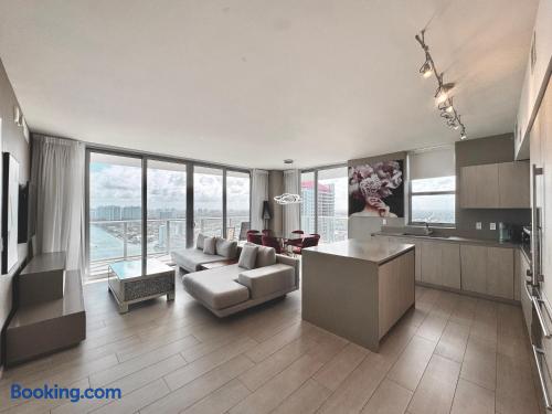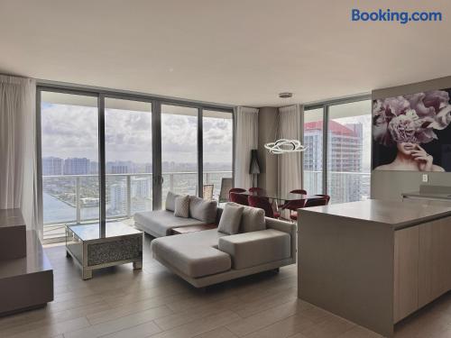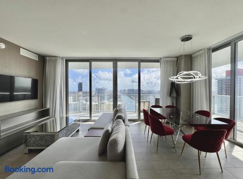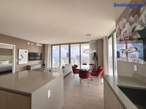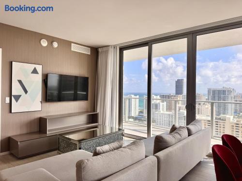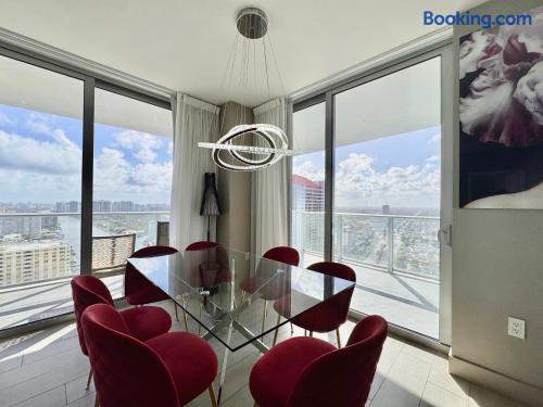 BIENVENUE DANS NOTRE LOGEMENT RÉCEMMENT RÉNOVÉ ! Profitez de vues panoramiques, d'équipements haut de gamme et de l'énergie vibrante de la ville à votre porte. ATTENTION ! Merci de lire et d'accepter tout ce qui est décrit dans la section « Autres informations à noter » ! Bienvenue au Hyde Beach House ! Espace de vie : L'espace principal est aménagé avec goût et confort pour votre séjour. La cuisine ouverte dispose de tout le nécessaire, y compris les ustensiles et une cafetière. Depuis l'îlot de cuisine, vous profitez d'une vue sur le salon/salle à manger ainsi que sur l'océan, la ville et l'intercôtier grâce aux grandes baies vitrées du sol au plafond. La salle à manger comprend une table et six chaises. Elle donne sur le salon, équipé d'un canapé confortable et d'une Smart TV, idéale après une longue journée à la plage. Chambre principale (vue intercôtier/océan latérale) : La chambre principale dispose d'un lit king size avec matelas mémoire de forme de haute qualité, linge de lit écologique et de magnifiques vues sur l'océan. Le dressing offre beaucoup d'espace pour vos affaires et la salle de bain attenante comprend une douche séparée et une baignoire pour plus de confort. Cette chambre est également équipée d'une TV à écran plat. Deuxième chambre (vue sur la ville) : La 2ème chambre comprend deux lits doubles et une TV à écran plat. Beaucoup d'espace de rangement et un bureau avec chaise. Troisième chambre (vue sur la ville) : La 3ème chambre dispose de deux lits simples, d'une TV à écran plat, d'un grand placard, d'un balcon privé, d'un bureau avec chaise et de sa propre salle de bain avec douche. Détendez-vous, profitez et vivez le meilleur de Miami au Hyde Beach House. Réservez dès maintenant !