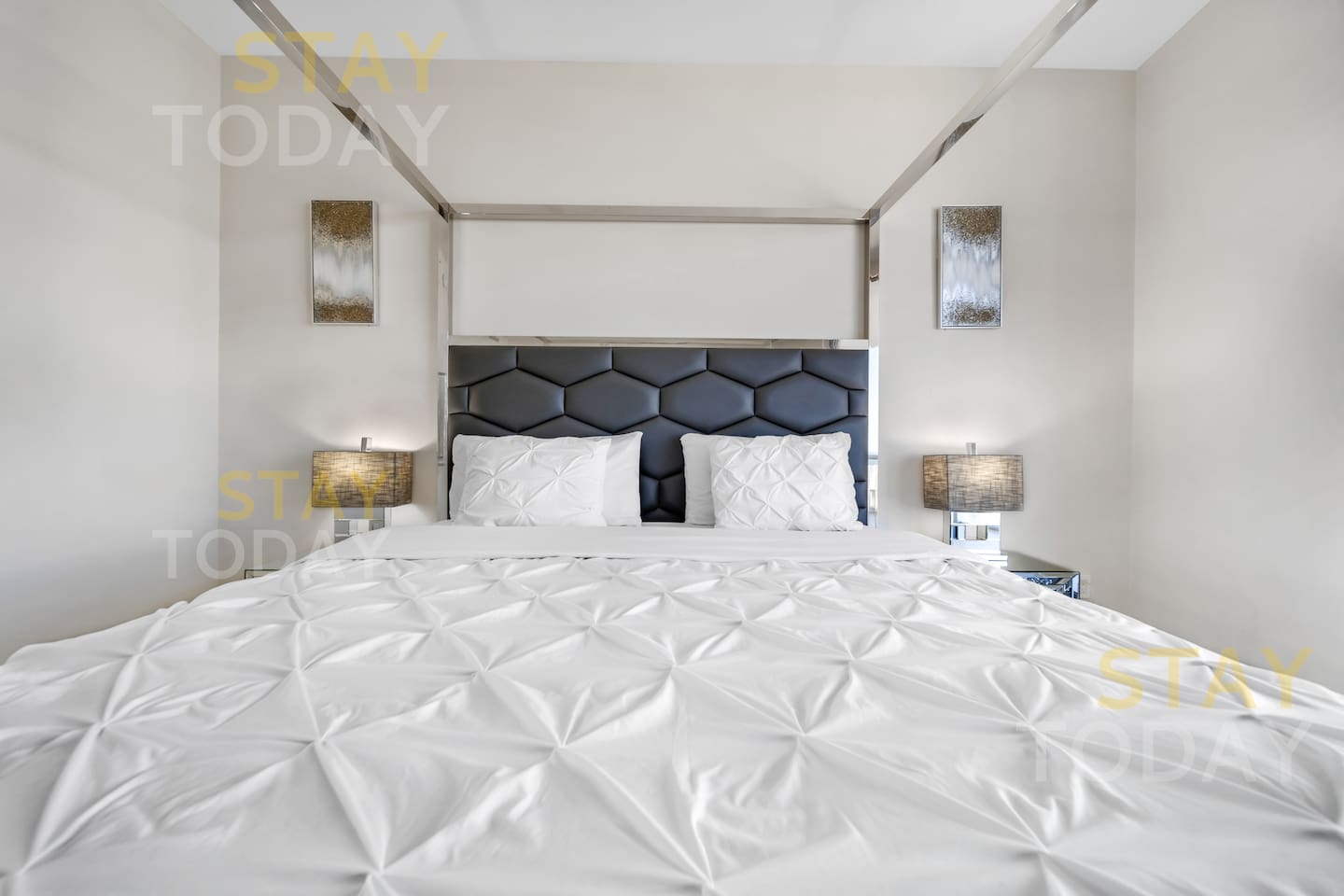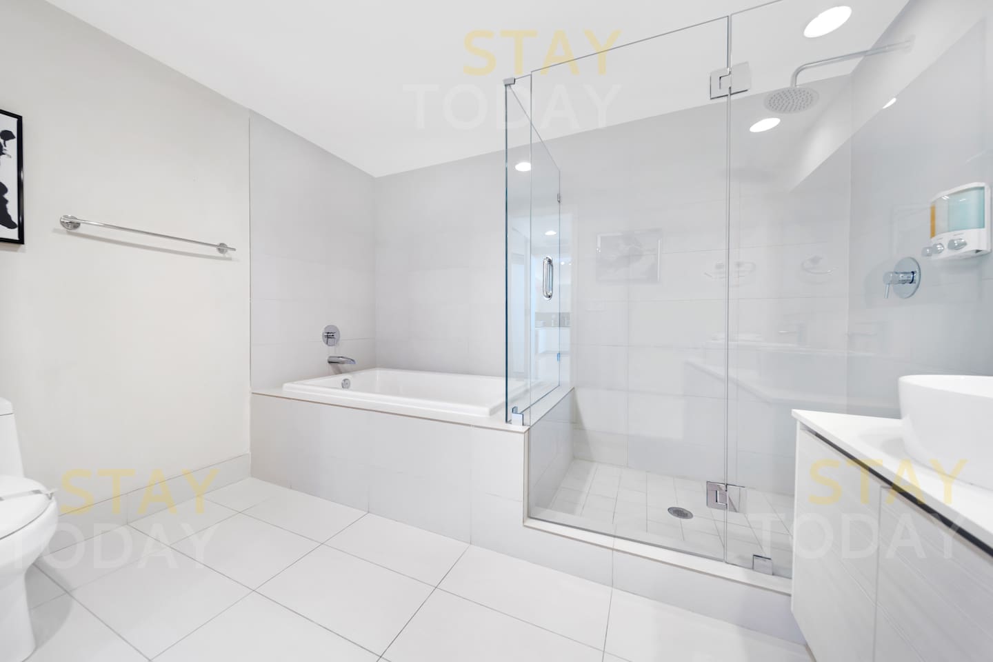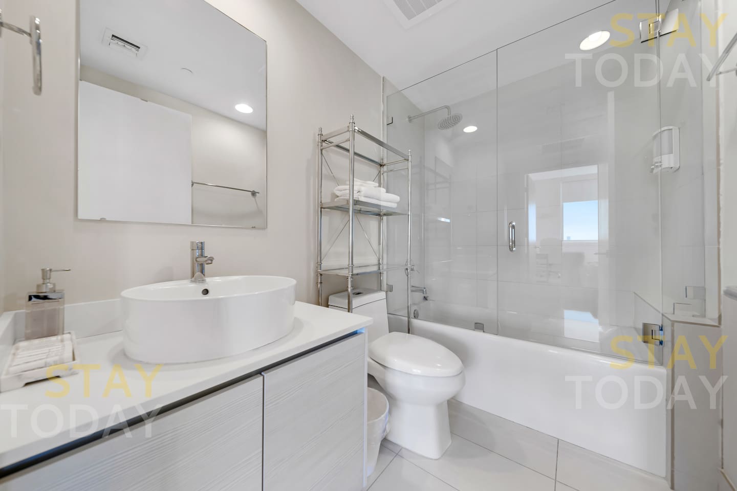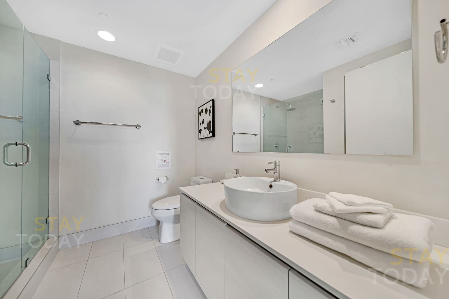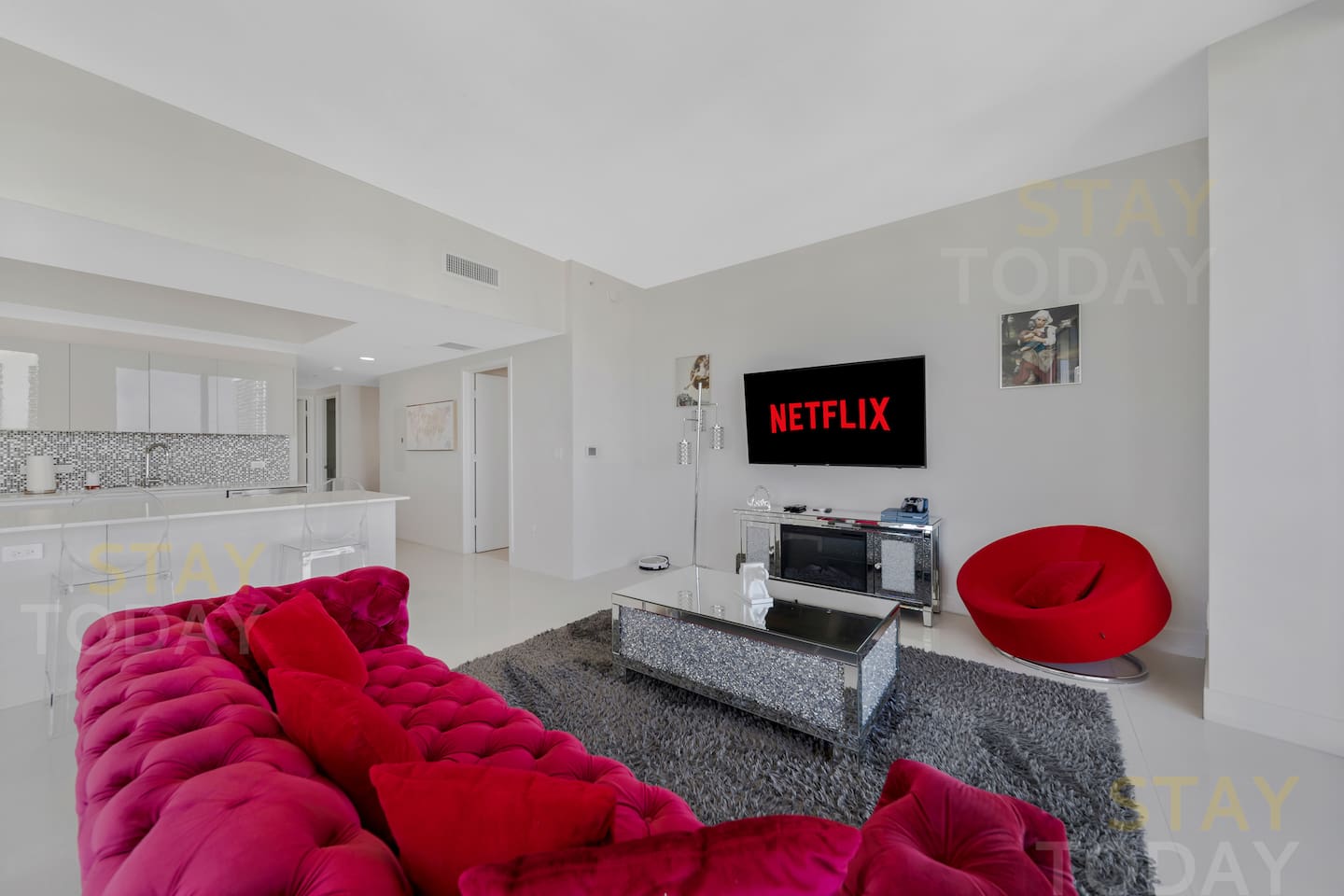 🍳 Kitchen: Enjoy a fully equipped, modern open-plan kitchen with stainless steel appliances, ocean views, and panoramic windows. Everything you need to cook and dine comfortably at home is provided. ⸻ 🪑 Dining Area: A stylish and comfortable area with a table for six, perfect for shared meals, game nights, or casual conversation, complemented by additional bar seating for four. ⸻ 🛋️Living Room: The living room offers a bright and inviting space with floor-to-ceiling windows that open onto a private balcony with ocean and city views. A plush seating area creates the perfect spot to relax with family or friends. The modern design and natural light give the room a stylish yet comfortable atmosphere, ideal for unwinding after a day at the beach or exploring the city. ⸻ 🛏️ First Bedroom(Intercostal/city, ocean-view): The master suite features a king-size memory foam bed with eco-friendly linens, breathtaking ocean views, a walk-in closet, and a private en-suite bathroom with a separate shower and tub. It includes a flat-screen TV and direct access to the balcony. ⸻ 🛏️ Second Bedroom(Intercostal/city, side ocean-view): This cozy room includes a queen-size bed, flat-screen TV, ample closet space, and ocean/Intracoastal views. It also has a private en-suite bathroom with a walk-in shower. ⸻ 🛏️ Third Bedroom(Intercostal/city, side ocean-view): Furnished with a queen-size bed, flat-screen TV, and a bathroom that also has access from the living area. Enjoy both ocean and Intracoastal views from this bedroom. ⸻ 🛁Master Bathroom: The master bathroom, located within the master bedroom, features a sleek modern design with a glass-enclosed walk-in shower and a separate soaking tub for ultimate relaxation. A spacious vanity with contemporary fixtures provides plenty of room for getting ready in comfort. Bright lighting and clean finishes create a spa-like atmosphere, making this bathroom both stylish and functional. ⸻ 🛁Second Bathroom: The second bathroom, located within the second bedroom, offers a sleek and modern design with a spacious walk-in glass shower. A wide vanity with a bright mirror and fresh towels provides both style and convenience. Its private setup ensures guests enjoy comfort and ease throughout their stay. ⸻ 🛁Third Bathroom: The third bathroom, located just in front of the third bedroom, features a modern design with a glass-enclosed shower and tub combination. A sleek vanity with a bright mirror and fresh towels provides comfort and convenience. Its thoughtful layout makes it easily accessible while maintaining a clean and stylish look. ⸻ 🧺 Washer/Dryer: For your convenience, a private washer and dryer are available in the unit - ideal for longer stays or beach-heavy days.