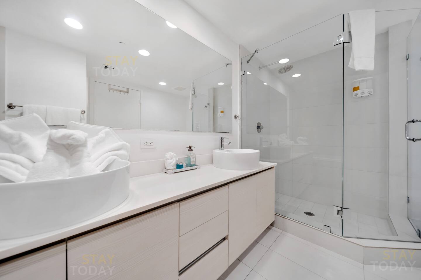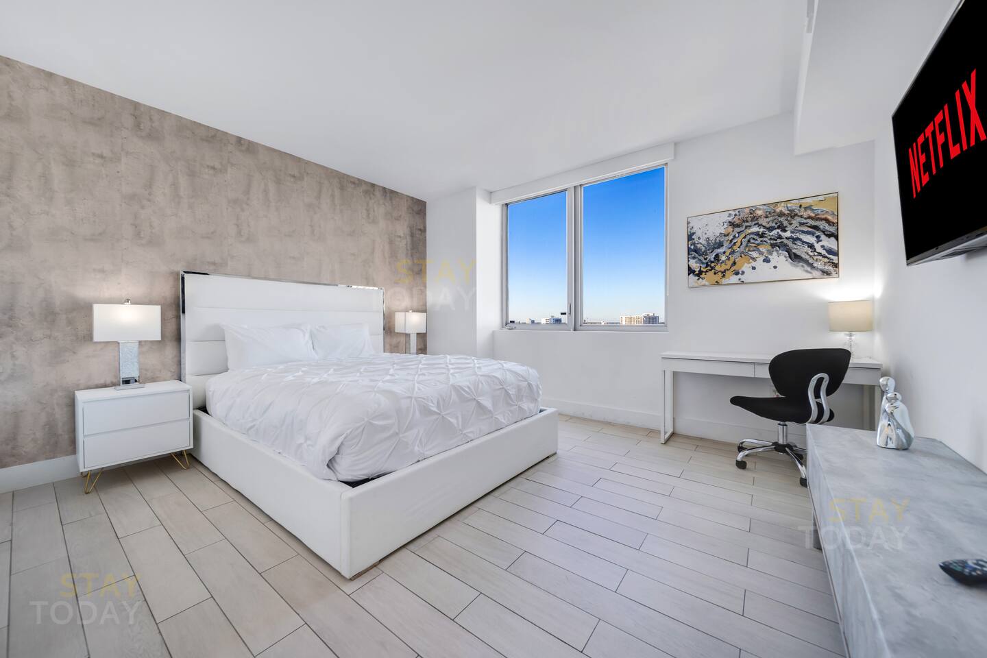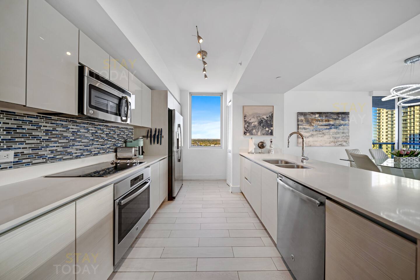 🏝️Beachwalk Resort offers a bespoke luxury experience in a casually elegant setting, with welcoming check-in staff, spectacular views, a fully equipped fitness center, and an infinity-edge waterfront pool that make every stay unforgettable. In this true 3-bedroom, 3-bath condo located in the VIP residents tower, a private keycard elevator opens directly to your foyer. The residence is styled with modern furnishings and includes a gourmet kitchen, WiFi, PlayStation, laundry, and full access to resort amenities such as the infinity pool, gym, beach service, and complimentary shuttle. ⸻ 🍳 Kitchen: Bright and contemporary kitchen designed for both style and function. Enjoy plenty of space to prepare meals, modern appliances, and an inviting layout that flows seamlessly into the dining area and living space. ⸻ 🥂Dining Area: The dining area has a table with six chairs, complemented by bar seating for three. After enjoying a delicious meal, you can relax on the couch with a Smart TV or simply take in the peaceful sunsets through the panoramic floor-to-ceiling windows. ⸻ 🛋️ Living Room: The main living room area is professionally designed to be tasteful as well as comfortable for your stay. The open plan kitchen has everything you will need for your stay. ⸻ 🛏️Master Bedroom (Direct ocean-view): The master bedroom has a king-sized bed with high-quality memory foam and eco-friendly linens, along with beautiful ocean views and direct access to the balcony. A spacious walk-in closet provides plenty of room for your belongings, and the en-suite bathroom includes both a separate shower and a tub for added convenience. ⸻ 🛏️Second Bedroom (Intercostal/city, side ocean-view): The 2nd bedroom has a queen size bed and bay/city view. Plenty of closet space and an in suite full bathroom with shower and bathtub make this room just as desirable as the master. ⸻ 🛏️Third Bedroom (Intercostal/city, side ocean-view): The third bedroom has a queen-size bed, wall-mounted Smart TV, work desk, and spacious closet, perfect for relaxing during your stay. It also comes with a dedicated bathroom conveniently accessible from the living room. ⸻ 🛁Master Bathroom: The master bathroom offers a luxurious retreat with a sleek double vanity, a glass-enclosed walk-in shower, and a separate soaking tub. Bright lighting and modern finishes create a spa-like atmosphere, perfectly complementing the comfort of the master bedroom. ⸻ 🛁Second Bathroom: The second bathroom, located inside the second bedroom, features a clean and modern design with a full bathtub-shower combo, stylish vanity, and bright lighting. Its private, in-room access ensures comfort and convenience for a more exclusive stay. ⸻ 🛁Third Bathroom: The third bathroom, dedicated to the third bedroom yet conveniently accessible from the living room, features a sleek glass-enclosed shower, modern vanity, and bright lighting. Its thoughtful design offers both style and practicality for everyday comfort. ⸻ 🧺 Washer/Dryer: In-unit washer and dryer available for your convenience. ⸻ 🌅 Balcony: The expansive private balcony offers unobstructed views of the Intracoastal Waterway, city skyline, and Atlantic Ocean. Perfect for morning coffee or evening relaxation, it provides a unique vantage point to enjoy both sunrise and sunset.