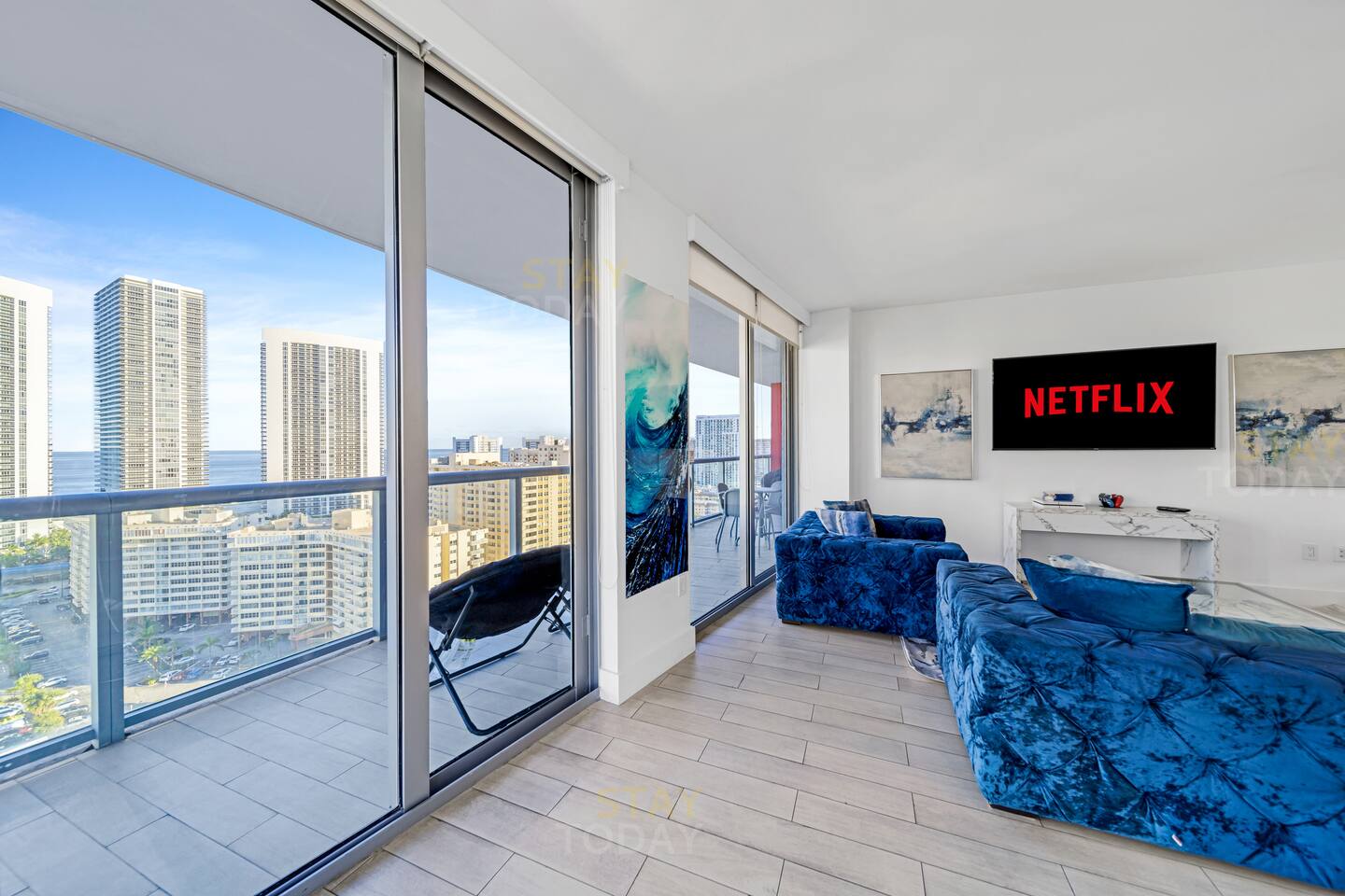 Hallandale Beach is a great town that sits squarely between Miami and Fort Lauderdale offering the best of each city only minutes away in a car. The neighborhood has plenty of shopping available with a Walmart right across the street for food shopping during extended stays, there are several restaurants available including Etaru which sits right on the beach next to the building beach service area.