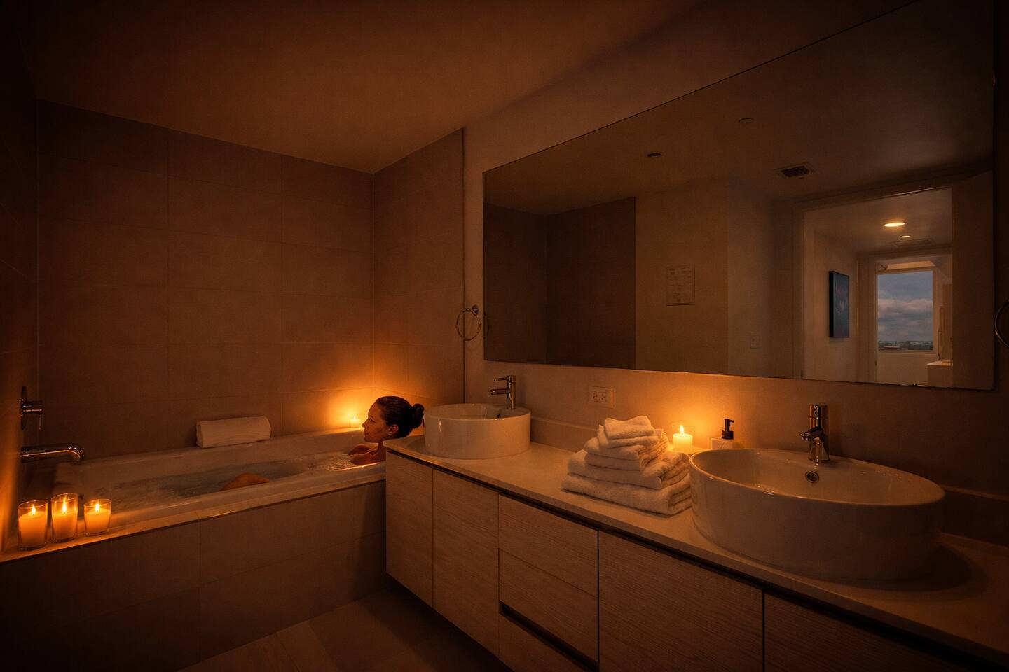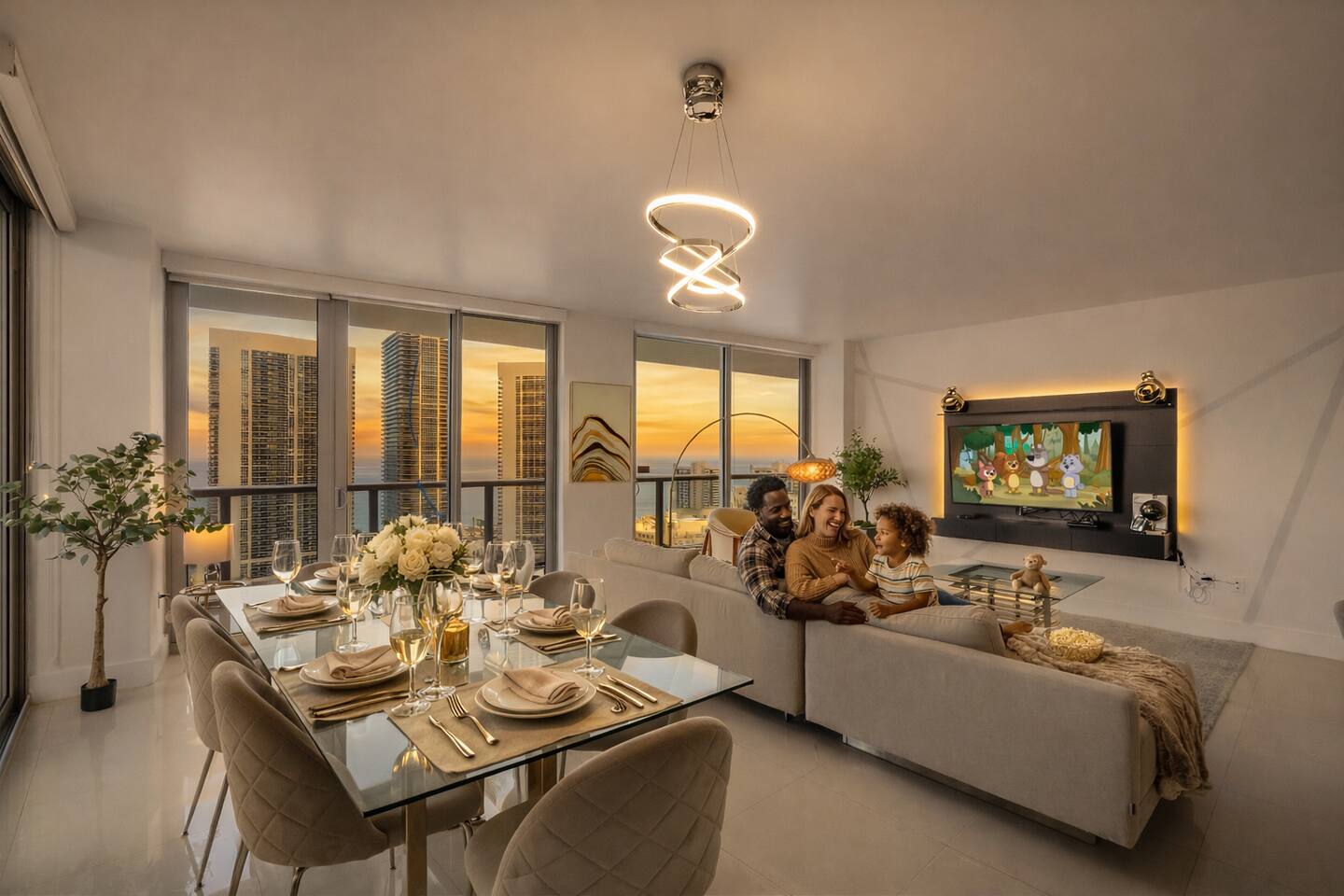 🏝️Revel in Miami sunshine at the exclusive and luxury building with resort amenities including gym, pool and beach service and complimentary beach shuttle. This apartment is great for couples, solo adventurers, business travelers, families (with kids), and big groups. ⸻ 🍳Kitchen: The kitchen offers a bright and modern space with sleek finishes, quality appliances, and ample counter space, perfect for preparing meals and spending time together. ⸻ 🥂Dining area: The dining area offers a bright and inviting setting with seating for six, where stunning views become the backdrop for every meal. It also features bar seating for two, creating the perfect atmosphere to gather, share, and enjoy time together. ⸻ 🛋️Living Area: The main living space is professionally designed to be tasteful as well as comfortable for your stay. The open plan kitchen has everything you will need for your stay. From the kitchen island you look out to the living room/dinning are as well as beautiful views through panoramic floor to ceiling windows. The dining area has a table and six chairs. The dining area leads into the living area which has a comfortable couch along with a 65-inch Smart TV that is perfect after a long day at the beach. ⸻ 🛏️Master Bedroom (Ocean-View): The master bedroom has a king-sized bed with high-quality memory foam and eco-friendly linens, along with beautiful ocean views and private balcony access. A spacious walk-in closet provides plenty of room for your belongings, and the en-suite bathroom features both a separate shower and a tub for added convenience. This bedroom also includes a 58-inch smart TV. ⸻ 🛏️Second Bedroom (Intercostal/city, side Ocean-View): The second bedroom features two comfortable twin-size beds with elegant tufted headboards, a spacious closet, and a 43-inch smart TV for your entertainment. Enjoy the added convenience of a private in-room bathroom, offering both comfort and privacy. ⸻ 🛏️Third Bedroom (Intercostal/city, side Ocean-View): The third bedroom has a queen-size bed and bay/city view, along with a 50-inch smart TV and plenty of closet space. A dedicated full bathroom with shower is located right in front of the bedroom, accessible from the living room for added convenience. ⸻ 🛁Master Bathroom: The master bathroom in the master bedroom offers a luxurious retreat with a spacious layout, double vanity sinks, a glass-enclosed rainfall shower, and a separate deep soaking tub. Modern finishes and bright lighting create a serene, spa-like atmosphere for ultimate comfort. ⸻ 🛁Second Bathroom: The second bathroom, located in the second bedroom, offers a bright and functional space with a modern vanity, large mirror, and a combination bathtub and shower. Fresh towels and contemporary finishes make it a comfortable and convenient private retreat. ⸻ 🛁Third Bathroom: The third bathroom, located just in front of the third bedroom and accessible from the living room, features a modern glass-enclosed shower, stylish vanity, and bright lighting. Its fresh, contemporary design makes it both functional and inviting for guests. ⸻ 🧺 Washer/Dryer: In-unit washer and dryer available for your convenience. ⸻ 🌅Balcony: The balcony invites you to unwind while taking in sweeping city and ocean views, creating the perfect spot to relax, sip your favorite drink, and enjoy the fresh coastal breeze.