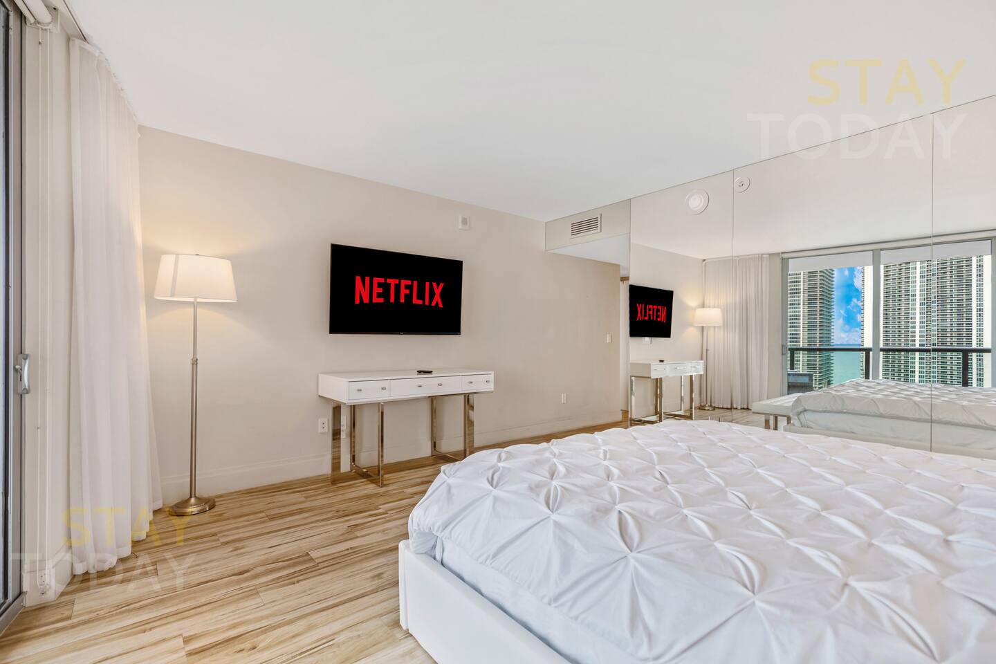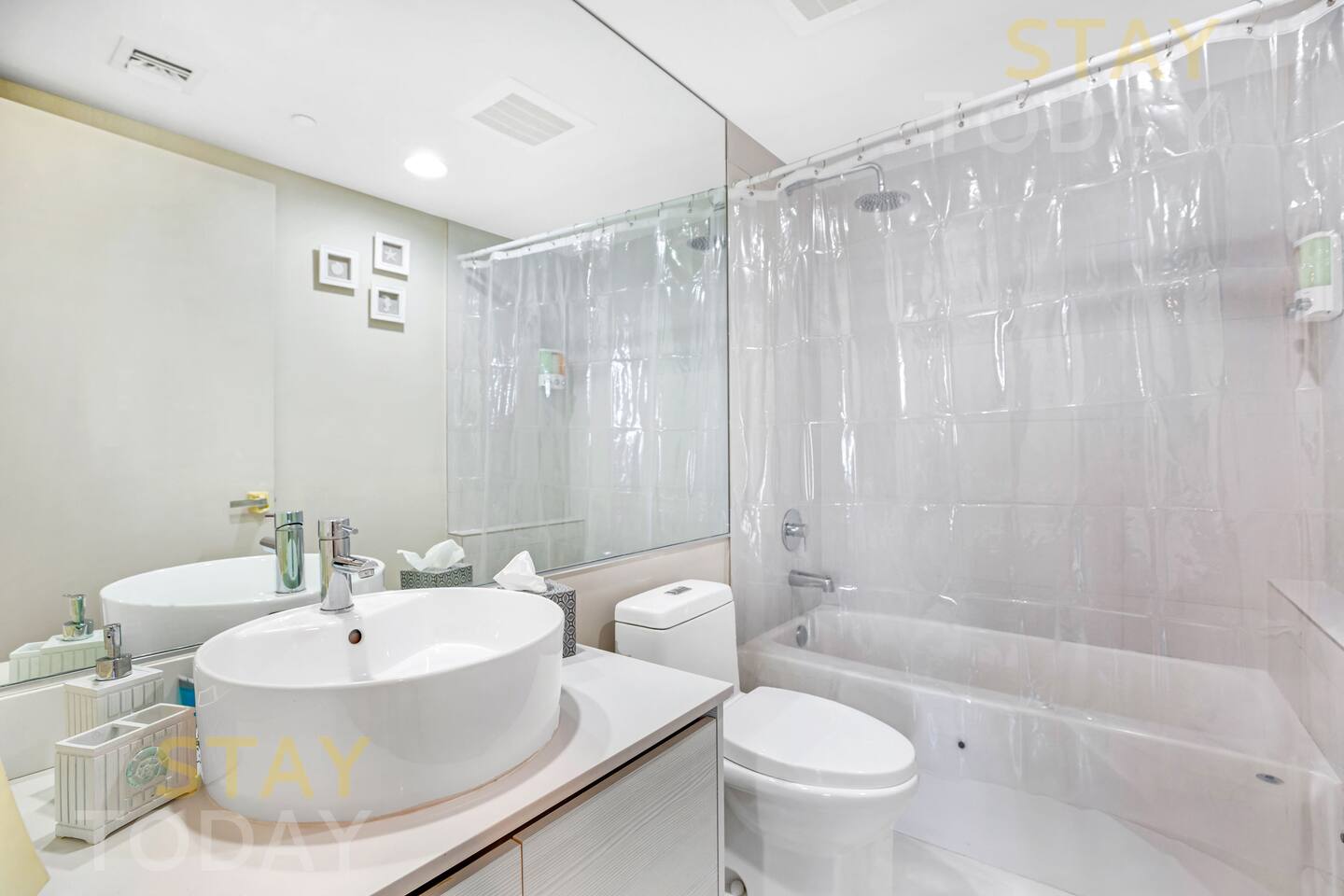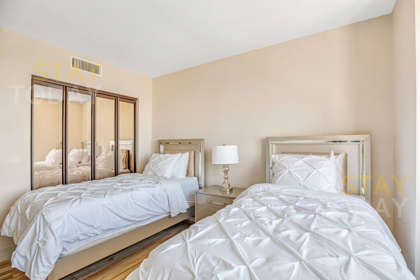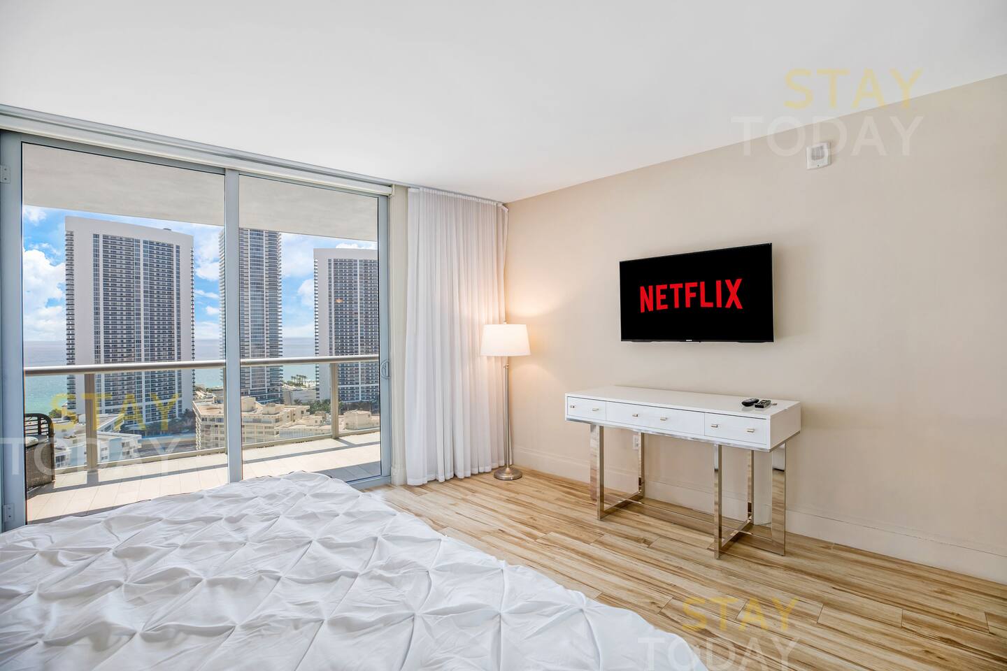 🍳 Kitchen: Cook and dine in style in the fully equipped, gourmet kitchen featuring European cabinetry, stainless steel appliances, and floor-to-ceiling windows with breathtaking water views. The kitchen island flows into the open-concept living and dining area, perfect for entertaining. ⸻ 🪑 Dining Area: A dedicated space with a table and seating for six, additional bar seating at the kitchen island for three. Ideal for meals, games, or conversation after a day in the sun. ⸻ 🛋️ Living Room: The living room offers a bright and inviting space with floor-to-ceiling windows framing stunning ocean and city views. A large sectional couch provides plenty of seating for relaxing with family or friends. The flat-screen TV with streaming options, including Netflix, makes it easy to enjoy movie nights or unwind after a day at the beach. With its open design, the space flows naturally into the dining area and kitchen, creating the perfect setting for gathering and entertaining. ⸻ 🛏️ First Bedroom (Intercostal/city, Ocean-View): The master suite includes a king-size memory foam bed with eco-friendly linens, direct ocean views, a walk-in closet, and a private en-suite bathroom with separate shower and tub. Enjoy direct access to the balcony with panoramic views of the ocean, city, and Intracoastal. ⸻ 🛏️ Second Bedroom(Intercostal/city, side Ocean-View): Furnished with a comfortable queen-size bed, this bedroom offers a relaxing space to unwind. It features a private en-suite bathroom and large windows that provide beautiful side ocean views along with a direct view of the city skyline. ⸻ 🛏️ Third Bedroom(Intercostal/city, side Ocean-View): This room features two twin-size beds and generous closet space. Large windows provide side ocean views, along with direct views of the city and Intracoastal Waterway. The third bathroom, which includes a bathtub, is accessible from this room as well as from the living area, offering added convenience for all guests. ⸻ 🛁Master Bathroom: The master bathroom offers a spa-like retreat with a sleek glass-enclosed shower and a deep soaking tub for ultimate relaxation. A wide vanity with dual sinks provides ample space for getting ready with ease. Bright lighting and modern finishes add to the clean, elegant design. Conveniently located in the master bedroom, this bathroom combines comfort and style in one private space. ⸻ 🛁Second Bathroom: The second bathroom, located within the second bedroom, offers modern finishes and a bright, clean design. A spacious glass-enclosed shower provides a refreshing place to unwind. The sleek vanity with ample counter space makes it easy to get ready for the day. With its private setup, this bathroom ensures convenience and comfort for guests staying in the second bedroom. ⸻ 🛁Third Bathroom: The third bathroom is conveniently located off the living room and serves the third bedroom. It features a modern vanity with a wide mirror, a clean and bright design, and a combination bathtub and shower for added flexibility. Thoughtful touches and contemporary finishes make it both stylish and practical. Its central location ensures comfort and easy access for guests. ⸻ 🧺 Washer/Dryer: A private washer and dryer are located in the unit. Great for longer stays or after time at the beach. ⸻