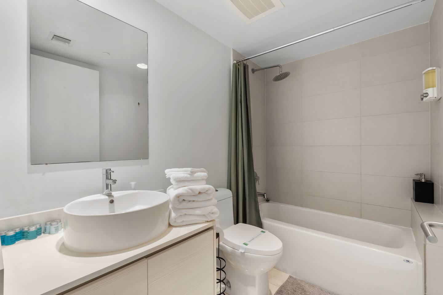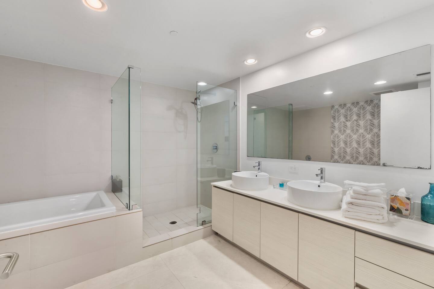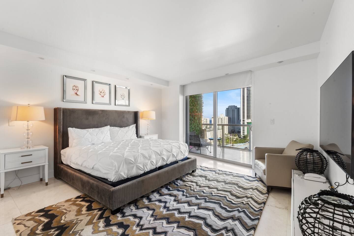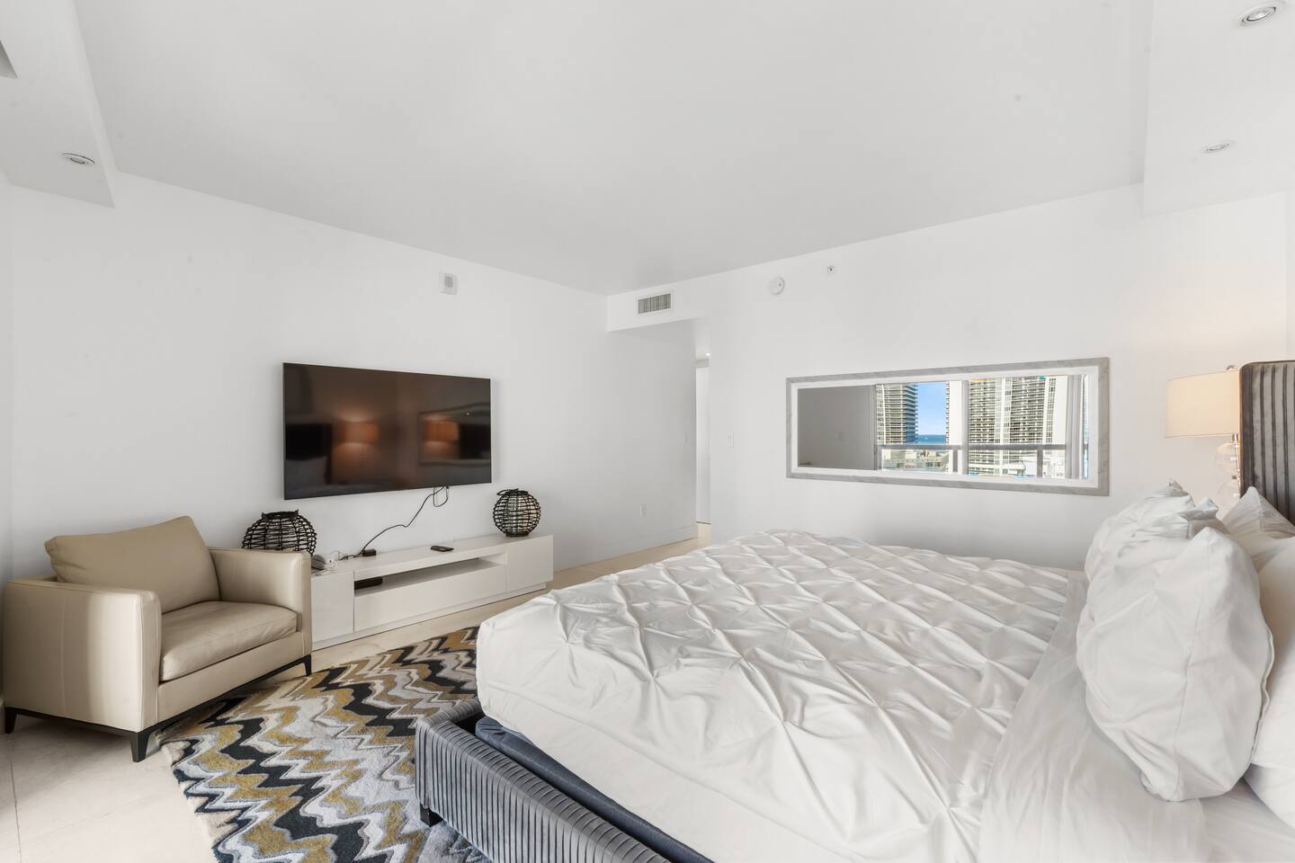 ⸻ 🍳 Kitchen The kitchen boasts a sleek, modern design with high-end stainless steel appliances, ample counter space, and a large island perfect for meal prep or casual dining. Fully equipped for all your cooking needs, it’s ideal for everything from quick snacks to full dinners. ⸻ 🥂Dining Area The dining area offers a stylish setting with a modern chandelier and seating for six, surrounded by floor-to-ceiling windows. It also includes bar seating for three, allowing you to enjoy meals with breathtaking views of the ocean, Intracoastal, and city skyline for a memorable dining experience any time of day. ⸻ 🛋️ Living Room Stylish open-concept living area with modern furnishings, plush seating, and floor-to-ceiling windows offering stunning water views. Flows into the dining area and a fully equipped kitchen with sleek, state-of-the-art appliances. ⸻ 🛏️Master Bedroom Unwind in the master suite, a spacious and tranquil haven featuring a luxurious king-sized bed with premium linens and direct access to the balcony. Floor-to-ceiling windows fill the room with natural light and offer stunning views, while the in-room master bathroom adds privacy and convenience, making this the perfect retreat after a day of adventure. ⸻ 🛏️ Second Bedroom The second bedroom offers a cozy and stylish escape with a comfortable queen-sized bed, ample storage, and a large window that invites in natural light. It features an in-room bathroom for added privacy and convenience, making it perfect for guests or family members seeking a restful night’s sleep. ⸻ 🛏️Third Bedroom Designed for flexibility and comfort, the third bedroom features two single beds, making it perfect for children, extra guests, or group travelers. Bright and inviting, it offers large windows with scenic views and a refreshing atmosphere, along with a dedicated bathroom that can be easily accessed from the living room. ⸻ 🛁Master Bathroom The master bathroom is a private en-suite retreat featuring a walk-in shower, relaxing bathtub, and dual sinks for added convenience. Bright lighting, a large mirror, and fresh towels complete this modern, elegant space designed for ultimate comfort. ⸻ 🛁Second Bathroom The second bathroom, located within the second bedroom, blends comfort and convenience with its clean, modern design. It offers a walk-in shower, fresh towels, and essential toiletries, creating a private space for guests to refresh and unwind during their stay. ⸻ 🛁Third Bathroom The third bathroom, accessible from the living room, offers convenience with its modern design. It features a shower-tub combo, fresh towels, and essential toiletries, creating a comfortable space for guests to refresh and unwind. ⸻ 🌅 Balcony Step onto your private balcony and take in panoramic ocean and city views. Whether sipping morning coffee or unwinding in the evening, this outdoor retreat offers a serene setting to enjoy the beauty of your surroundings. ⸻ 🧺 Washer/Dryer In-unit washer and dryer available for your convenience.