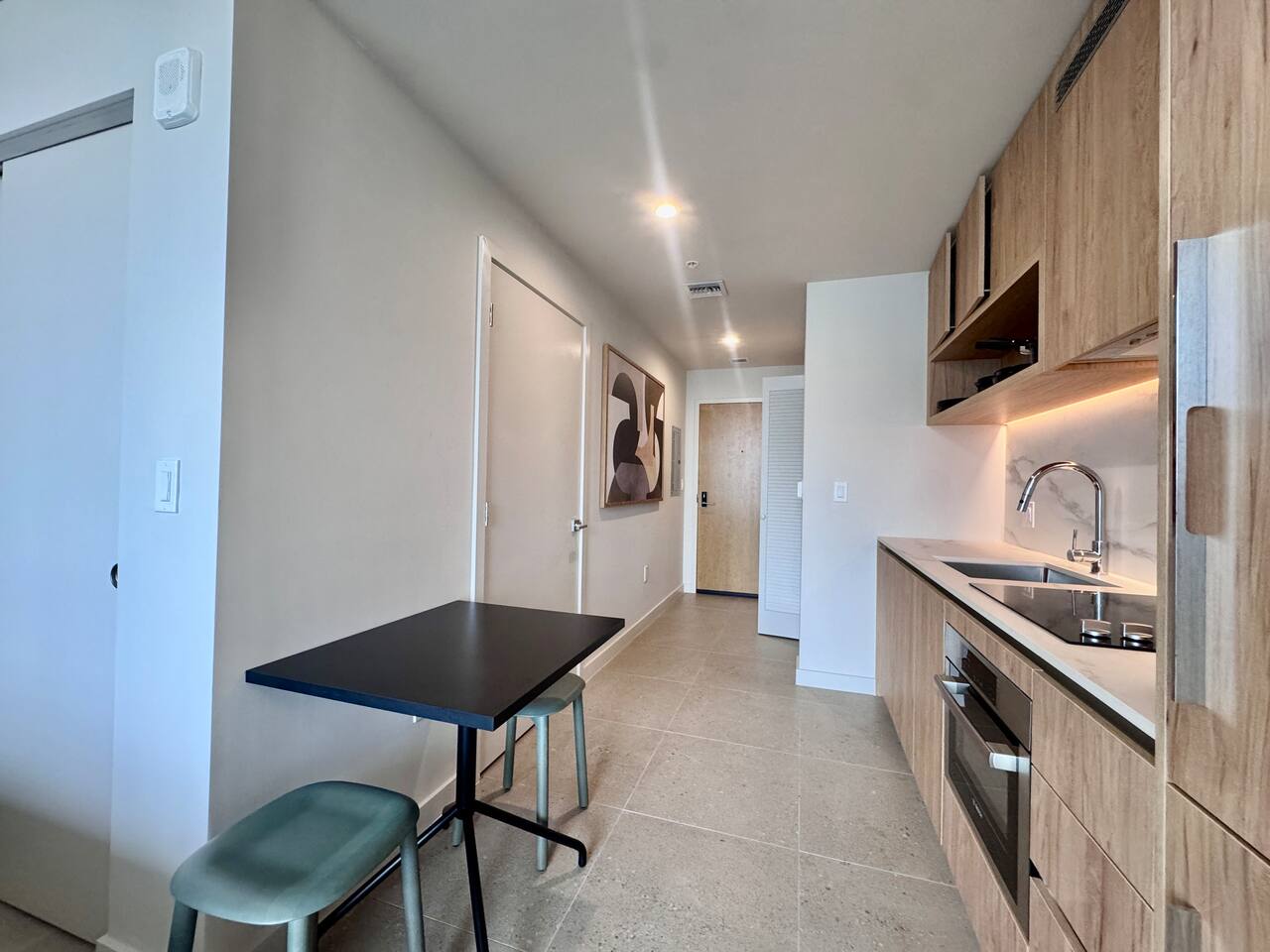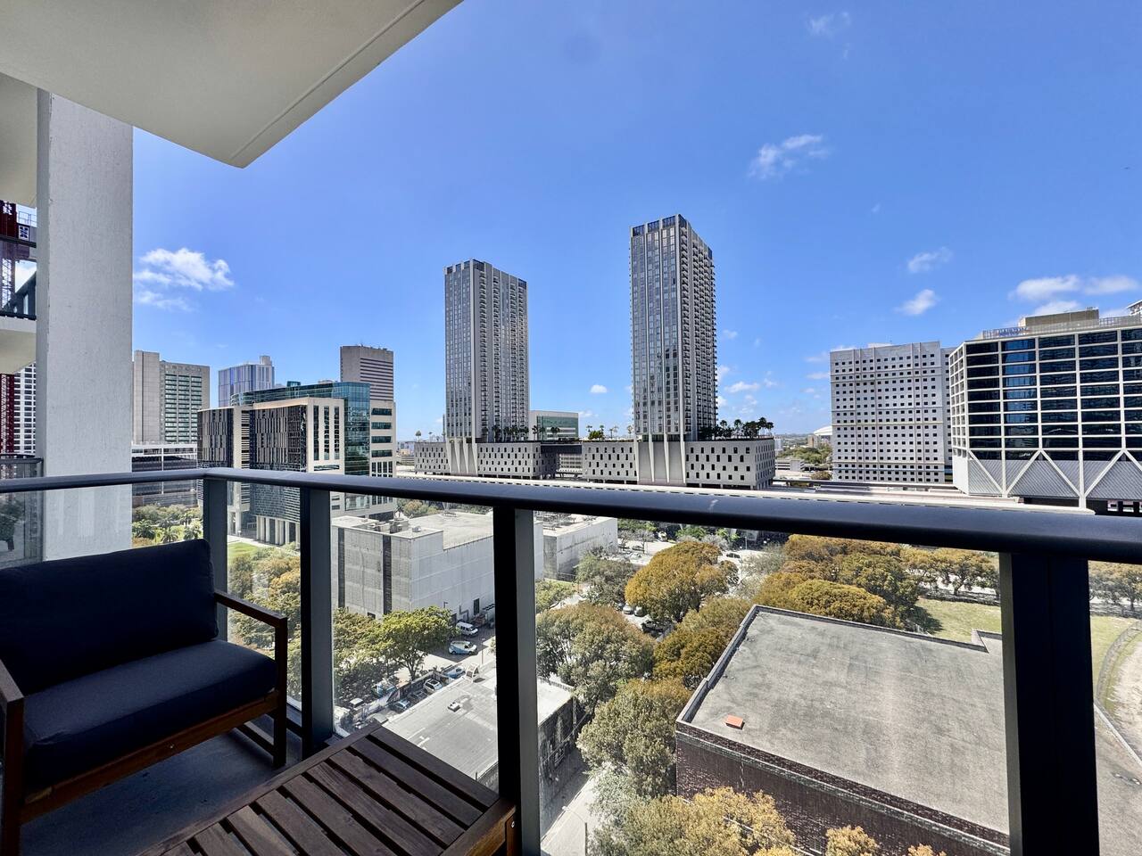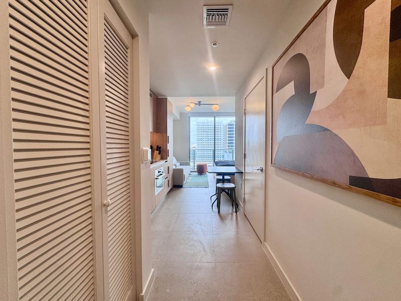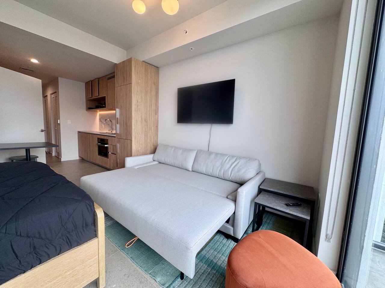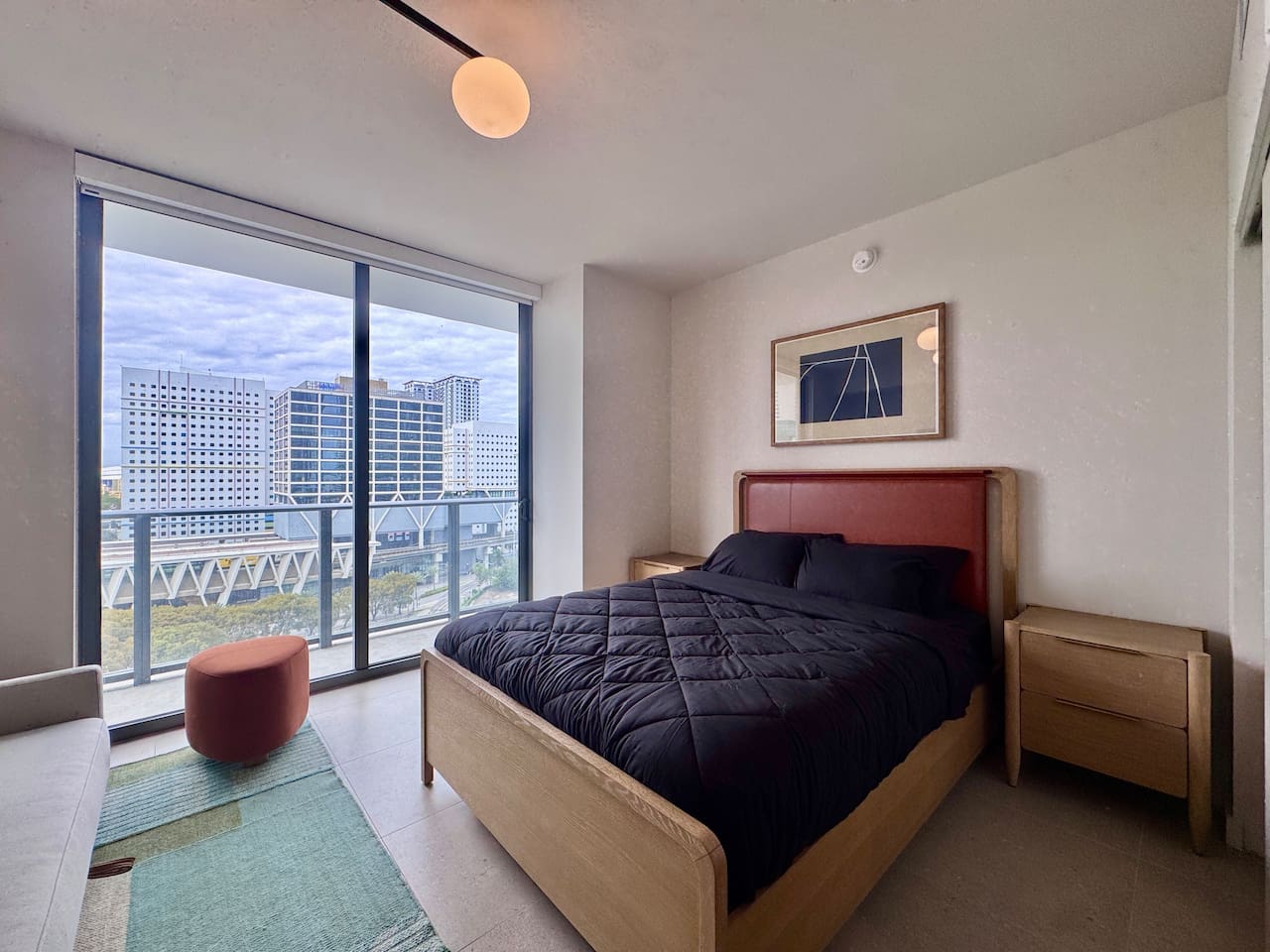 🛏️ Living & Sleeping Area: Welcome to a bright and thoughtfully designed studio where modern style meets comfort. The open-concept layout seamlessly combines the living and sleeping space, featuring a plush bed and inviting seating area perfect for relaxing after a day in Downtown Miami. Enjoy your favorite shows on the Smart TV while large windows fill the space with natural light, creating a sleek and airy atmosphere. ⸻ 🍳 Kitchen: The fully equipped kitchen has modern appliances, cookware, and all the essentials you’ll need for breakfast, lunch, or dinner. Everything is within easy reach, making meal prep simple and convenient. ⸻ 🧺 Washer & Dryer: An in-unit washer and dryer are included for your convenience, making longer stays stress-free and comfortable. ⸻ 🛁 Bathroom: Enjoy the beautifully appointed bathroom, complete with a spacious shower, sleek vanity, fresh towels, and elegant lighting designed to refresh and recharge you. ⸻ 🌇 Private Balcony: Step onto the private balcony and take in stunning city views. It’s the perfect place to enjoy your morning coffee or unwind in the evening as the Miami skyline lights up. ⸻ The studio includes air conditioning and high-speed WiFi throughout, ensuring a comfortable stay year-round. Book your stay today and experience modern comfort in the heart of Downtown Miami!