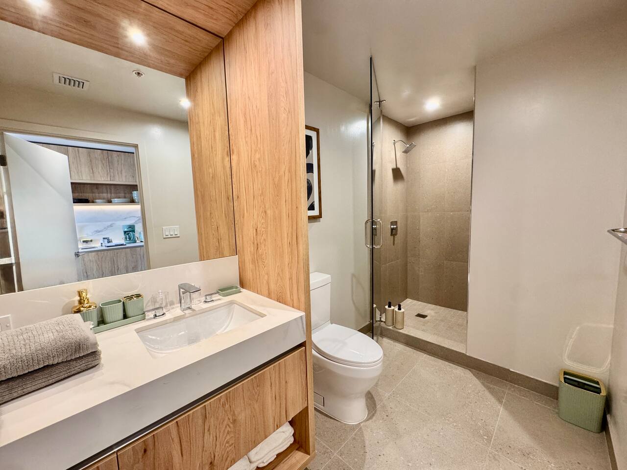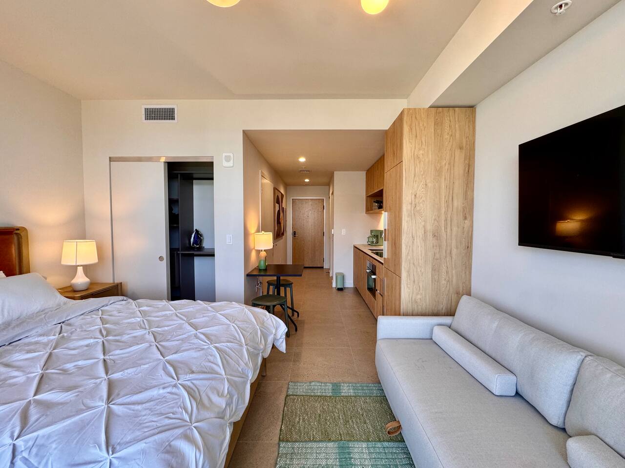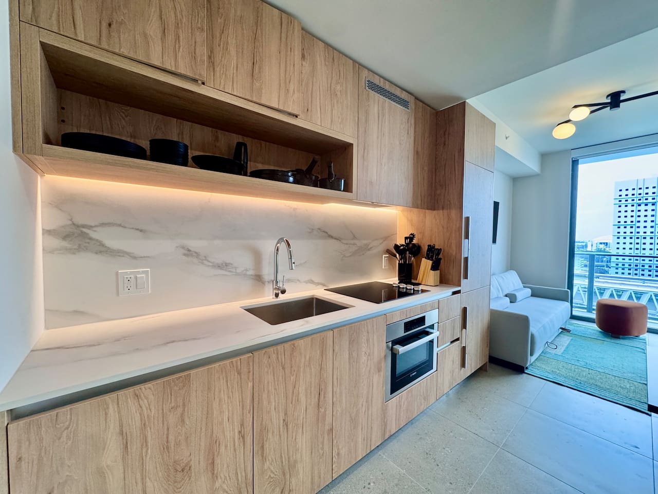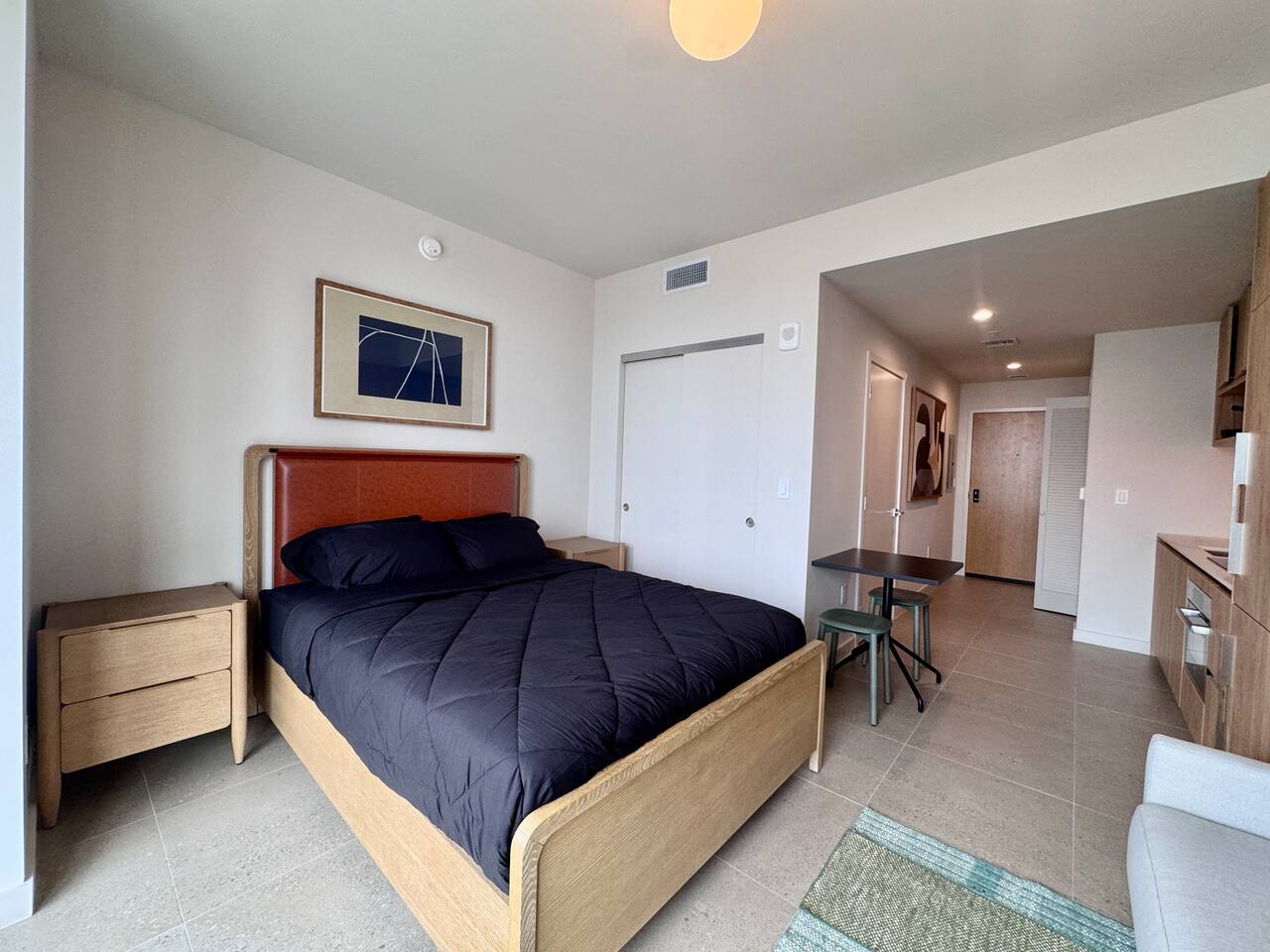 🛏️ Living & Sleeping Area: Welcome to a bright and thoughtfully designed studio where modern style meets comfort. The open-concept layout seamlessly combines the living and sleeping space, featuring a plush bed and inviting seating area perfect for relaxing after a day in Downtown Miami. Enjoy your favorite shows on the Smart TV while large windows fill the space with natural light, creating a sleek and airy atmosphere. ⸻ 🍳 Kitchen: The fully equipped kitchen has modern appliances, cookware, and all the essentials you’ll need for breakfast, lunch, or dinner. Everything is within easy reach, making meal prep simple and convenient. ⸻ 🧺 Washer & Dryer: An in-unit washer and dryer are included for your convenience, making longer stays stress-free and comfortable. ⸻ 🛁 Bathroom: Enjoy the beautifully appointed bathroom, complete with a spacious shower, sleek vanity, fresh towels, and elegant lighting designed to refresh and recharge you. ⸻ 🌇 Private Balcony: Step onto the private balcony and take in stunning city views. It’s the perfect place to enjoy your morning coffee or unwind in the evening as the Miami skyline lights up. ⸻ The studio includes air conditioning and high-speed WiFi throughout, ensuring a comfortable stay year-round. Book your stay today and experience modern comfort in the heart of Downtown Miami!