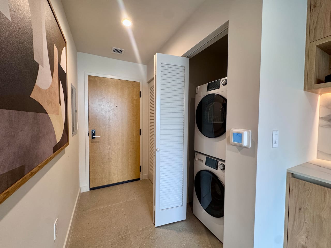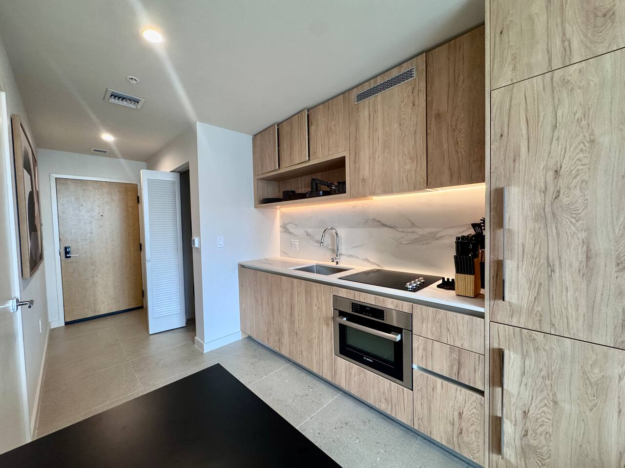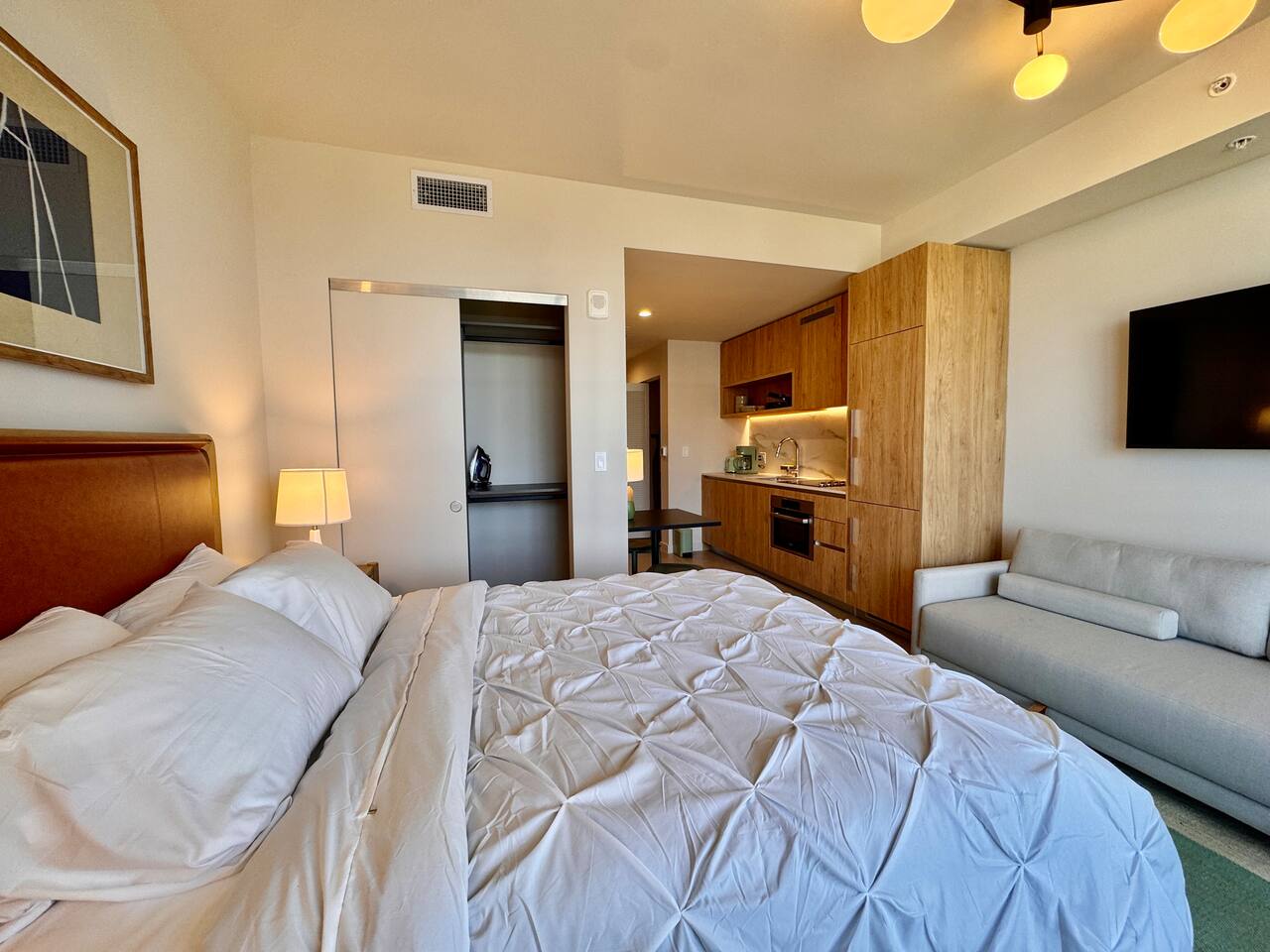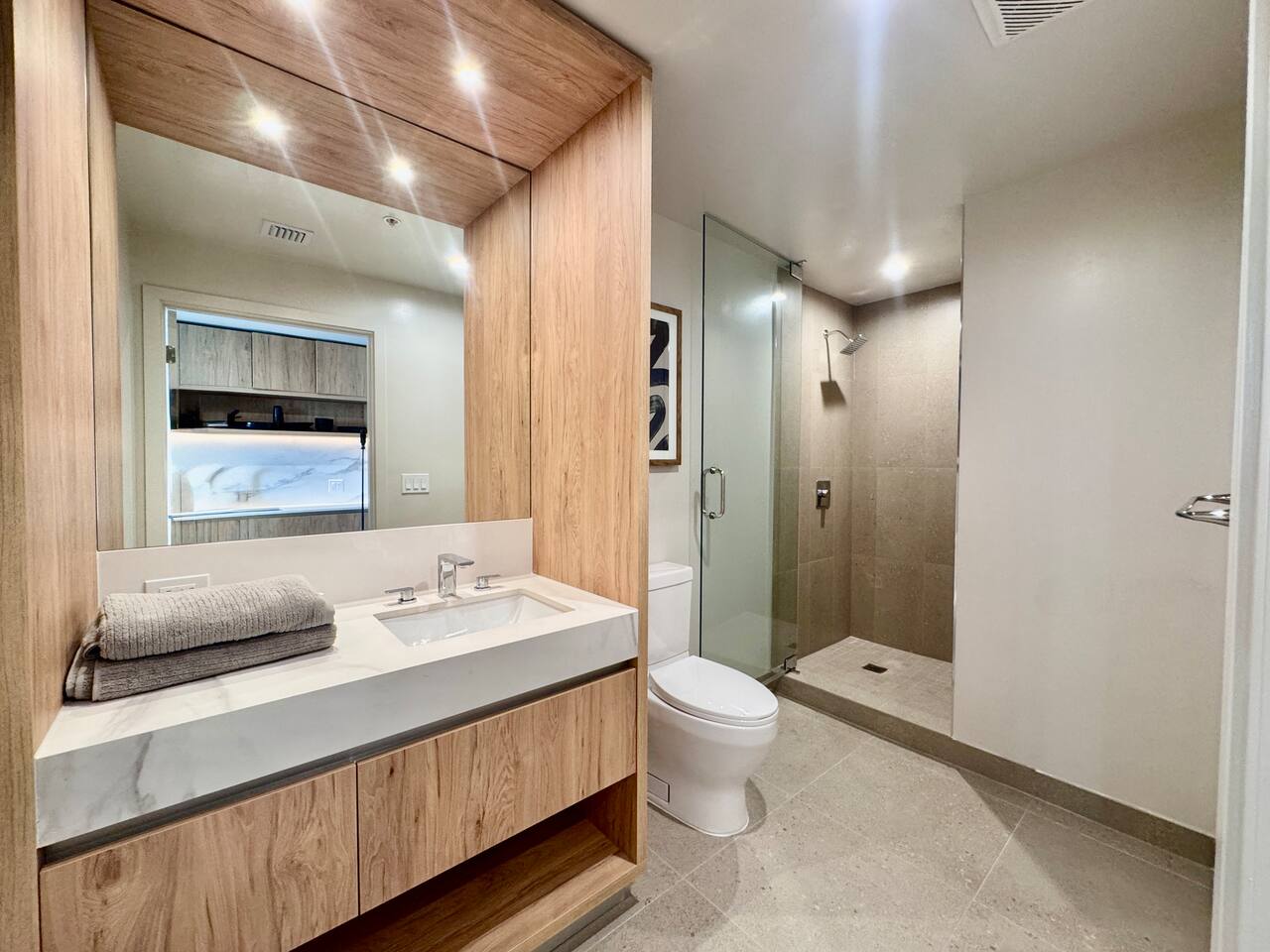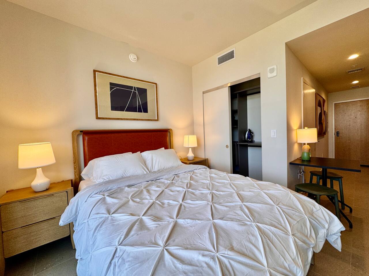 🛏️ Living & Sleeping Area: Welcome to a bright and thoughtfully designed studio where modern style meets comfort. The open-concept layout seamlessly combines the living and sleeping space, featuring a plush bed and inviting seating area perfect for relaxing after a day in Downtown Miami. Enjoy your favorite shows on the Smart TV while large windows fill the space with natural light, creating a sleek and airy atmosphere. ⸻ 🍳 Kitchen: The fully equipped kitchen has modern appliances, cookware, and all the essentials you’ll need for breakfast, lunch, or dinner. Everything is within easy reach, making meal prep simple and convenient. ⸻ 🧺 Washer & Dryer: An in-unit washer and dryer are included for your convenience, making longer stays stress-free and comfortable. ⸻ 🛁 Bathroom: Enjoy the beautifully appointed bathroom, complete with a spacious shower, sleek vanity, fresh towels, and elegant lighting designed to refresh and recharge you. ⸻ 🌇 Private Balcony: Step onto the private balcony and take in stunning city views. It’s the perfect place to enjoy your morning coffee or unwind in the evening as the Miami skyline lights up. ⸻ The studio includes air conditioning and high-speed WiFi throughout, ensuring a comfortable stay year-round. Book your stay today and experience modern comfort in the heart of Downtown Miami!