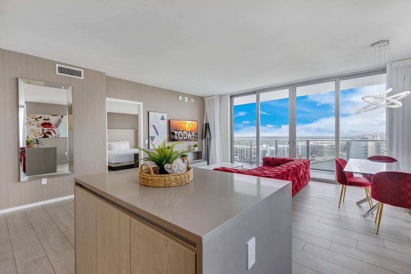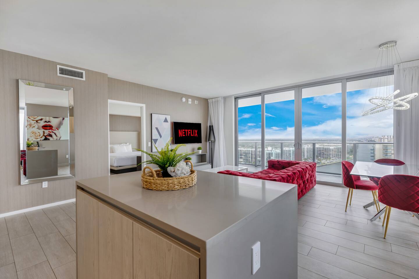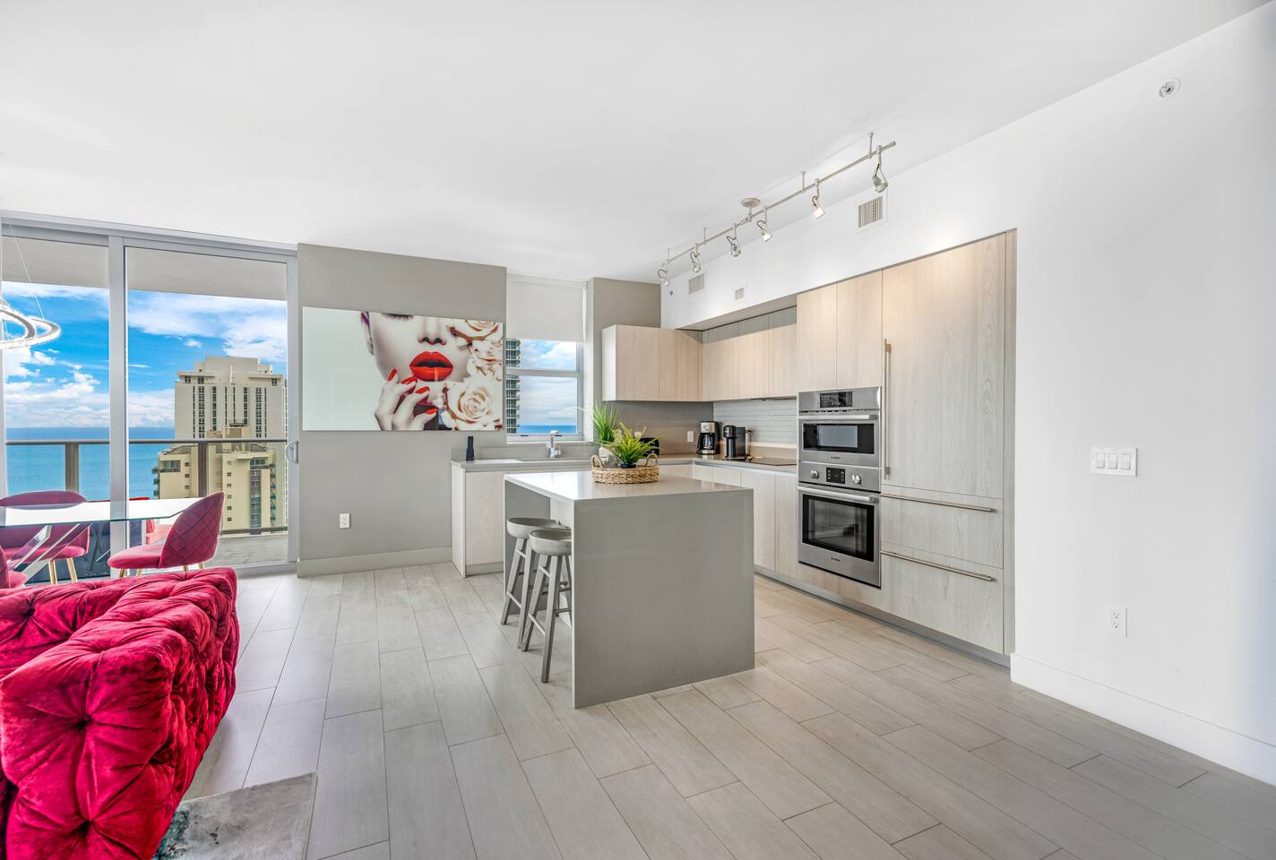 ✨Soak in stunning views, enjoy premium amenities, and embrace the dynamic city energy just outside your door. This superbly styled condo offers the perfect luxurious getaway, ideal for families, friends, or couples seeking a high-end Florida retreat. The property features world-class resort amenities, including a rooftop pool deck, outdoor movie theater, tennis court, and fitness center overlooking the Intracoastal. Whether you’re planning a relaxing escape or a romantic stay, you’ll feel right at home in your personal paradise. ⚠️Kindly review and agree to everything described in "Other things to note"⚠️ ⸻ 🛋️ Living Room: The bright and modern living room offers a comfortable space to relax and unwind, featuring a plush sofa that folds into a queen-size bed and a flat-screen TV for entertainment. Floor-to-ceiling windows open to the private balcony, where you can take in breathtaking water and city views stretching across the skyline. ⸻ 🥂Dining Area: The elegant dining area features a modern glass table with seating for four, perfectly positioned beside floor-to-ceiling windows that showcase beautiful city and water views. It’s an inviting space to share meals, enjoy morning coffee, or take in the stunning scenery while dining in comfort. ⸻ 🍳 Kitchen: The sleek, fully equipped kitchen features high-end stainless steel appliances, modern cabinetry, and a spacious island for meal preparation or casual dining. Large windows fill the space with natural light, creating a bright and inviting atmosphere perfect for cooking or enjoying morning coffee with a view. ⸻ 🛏️ Master Bedroom(Intercostal/Side ocean view): The luxurious master suite features a king-size bed with premium linens, a spacious walk-in closet, and a private bathroom with a separate shower and soaking tub. Floor-to-ceiling windows open directly onto the balcony, offering breathtaking views of the city and water. A stylish workspace and flat-screen TV complete this elegant retreat designed for both comfort and relaxation. ⸻ 🛏️ Second Bedroom(Direct ocean view): The stylish second bedroom features a comfortable double bed with an additional pull-out floor mattress, making it perfect for extra guests. Large windows showcase beautiful city and ocean views, filling the room with natural light. A dedicated working space and flat-screen TV provide both comfort and convenience, with a bathroom conveniently accessible from the living room, right by the bedroom entrance. ⸻ 🛁Master Bathroom: The spacious master bathroom, located within the master bedroom, features a sleek double vanity, glass-enclosed shower, and a relaxing soaking tub. Elegant finishes and soft lighting create a spa-like atmosphere, offering the perfect place to unwind after a day of sun and city adventures. ⸻ 🛁Second Bathroom: The modern second bathroom is conveniently located right next to the second bedroom and accessible from the living area. It features a sleek glass-enclosed shower, elegant vanity, and contemporary finishes, providing both comfort and style for guests. ⸻ 🌅Private Balcony: The expansive wraparound balcony offers breathtaking panoramic views of the ocean, city skyline, and Intracoastal Waterway. With multiple seating areas, it’s the perfect place to enjoy morning coffee, unwind at sunset, or simply take in the vibrant beauty of South Florida from every angle. ⸻ 🧺 Washer/Dryer: In-unit washer and dryer available for your convenience.