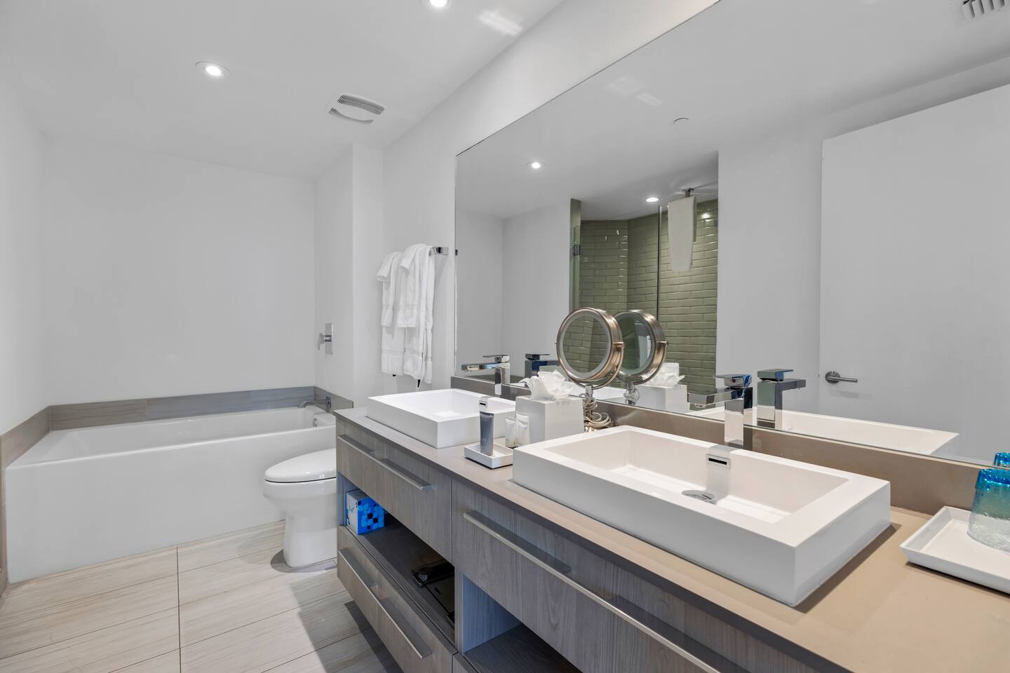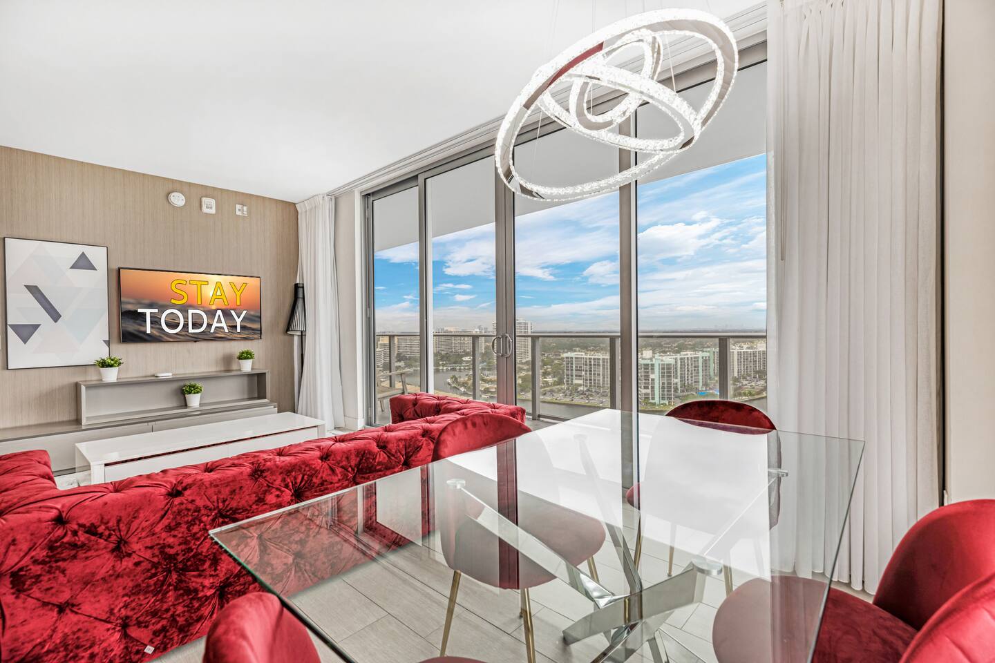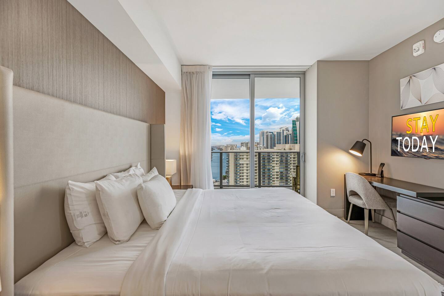 ✨Soak in stunning views, enjoy premium amenities, and embrace the dynamic city energy just outside your door. This superbly styled condo offers the perfect luxurious getaway, ideal for families, friends, or couples seeking a high-end Florida retreat. The property features world-class resort amenities, including a rooftop pool deck, outdoor movie theater, tennis court, and fitness center overlooking the Intracoastal. Whether you’re planning a relaxing escape or a romantic stay, you’ll feel right at home in your personal paradise. ⚠️Kindly review and agree to everything described in "Other things to note"⚠️ ⸻ 🛋️ Living Room: The bright and modern living room offers a comfortable space to relax and unwind, featuring a plush sofa that folds into a queen-size bed and a flat-screen TV for entertainment. Floor-to-ceiling windows open to the private balcony, where you can take in breathtaking water and city views stretching across the skyline. ⸻ 🥂Dining Area: The elegant dining area features a modern glass table with seating for four, perfectly positioned beside floor-to-ceiling windows that showcase beautiful city and water views. It’s an inviting space to share meals, enjoy morning coffee, or take in the stunning scenery while dining in comfort. ⸻ 🍳 Kitchen: The sleek, fully equipped kitchen features high-end stainless steel appliances, modern cabinetry, and a spacious island for meal preparation or casual dining. Large windows fill the space with natural light, creating a bright and inviting atmosphere perfect for cooking or enjoying morning coffee with a view. ⸻ 🛏️ Master Bedroom(Intercostal/Side ocean view): The luxurious master suite features a king-size bed with premium linens, a spacious walk-in closet, and a private bathroom with a separate shower and soaking tub. Floor-to-ceiling windows open directly onto the balcony, offering breathtaking views of the city and water. A stylish workspace and flat-screen TV complete this elegant retreat designed for both comfort and relaxation. ⸻ 🛏️ Second Bedroom(Direct ocean view): The stylish second bedroom features a comfortable double bed with an additional pull-out floor mattress, making it perfect for extra guests. Large windows showcase beautiful city and ocean views, filling the room with natural light. A dedicated working space and flat-screen TV provide both comfort and convenience, with a bathroom conveniently accessible from the living room, right by the bedroom entrance. ⸻ 🛁Master Bathroom: The spacious master bathroom, located within the master bedroom, features a sleek double vanity, glass-enclosed shower, and a relaxing soaking tub. Elegant finishes and soft lighting create a spa-like atmosphere, offering the perfect place to unwind after a day of sun and city adventures. ⸻ 🛁Second Bathroom: The modern second bathroom is conveniently located right next to the second bedroom and accessible from the living area. It features a sleek glass-enclosed shower, elegant vanity, and contemporary finishes, providing both comfort and style for guests. ⸻ 🌅Private Balcony: The expansive wraparound balcony offers breathtaking panoramic views of the ocean, city skyline, and Intracoastal Waterway. With multiple seating areas, it’s the perfect place to enjoy morning coffee, unwind at sunset, or simply take in the vibrant beauty of South Florida from every angle. ⸻ 🧺 Washer/Dryer: In-unit washer and dryer available for your convenience.