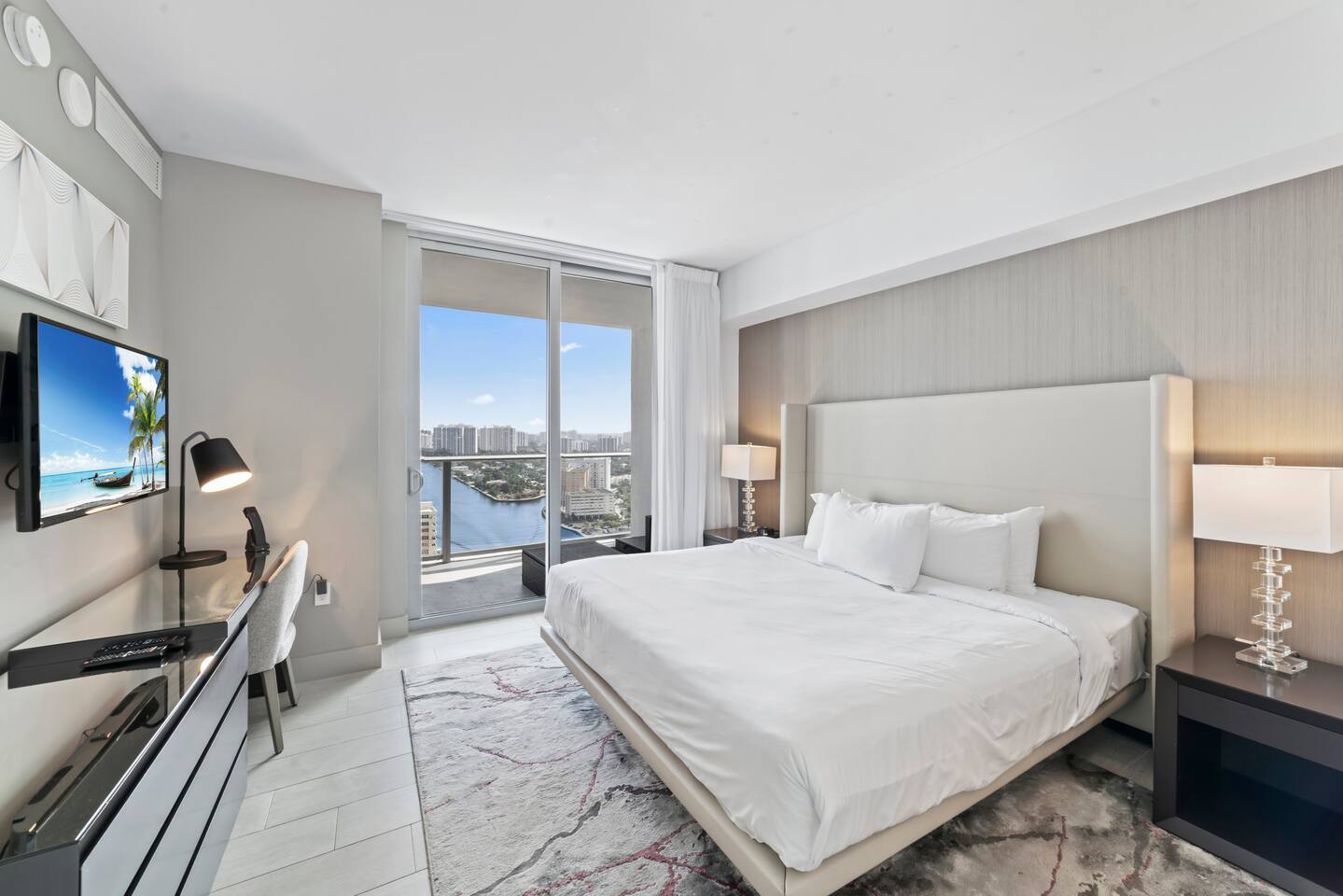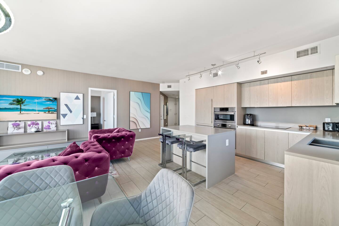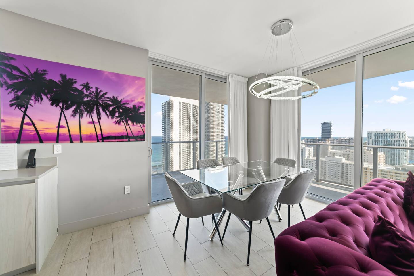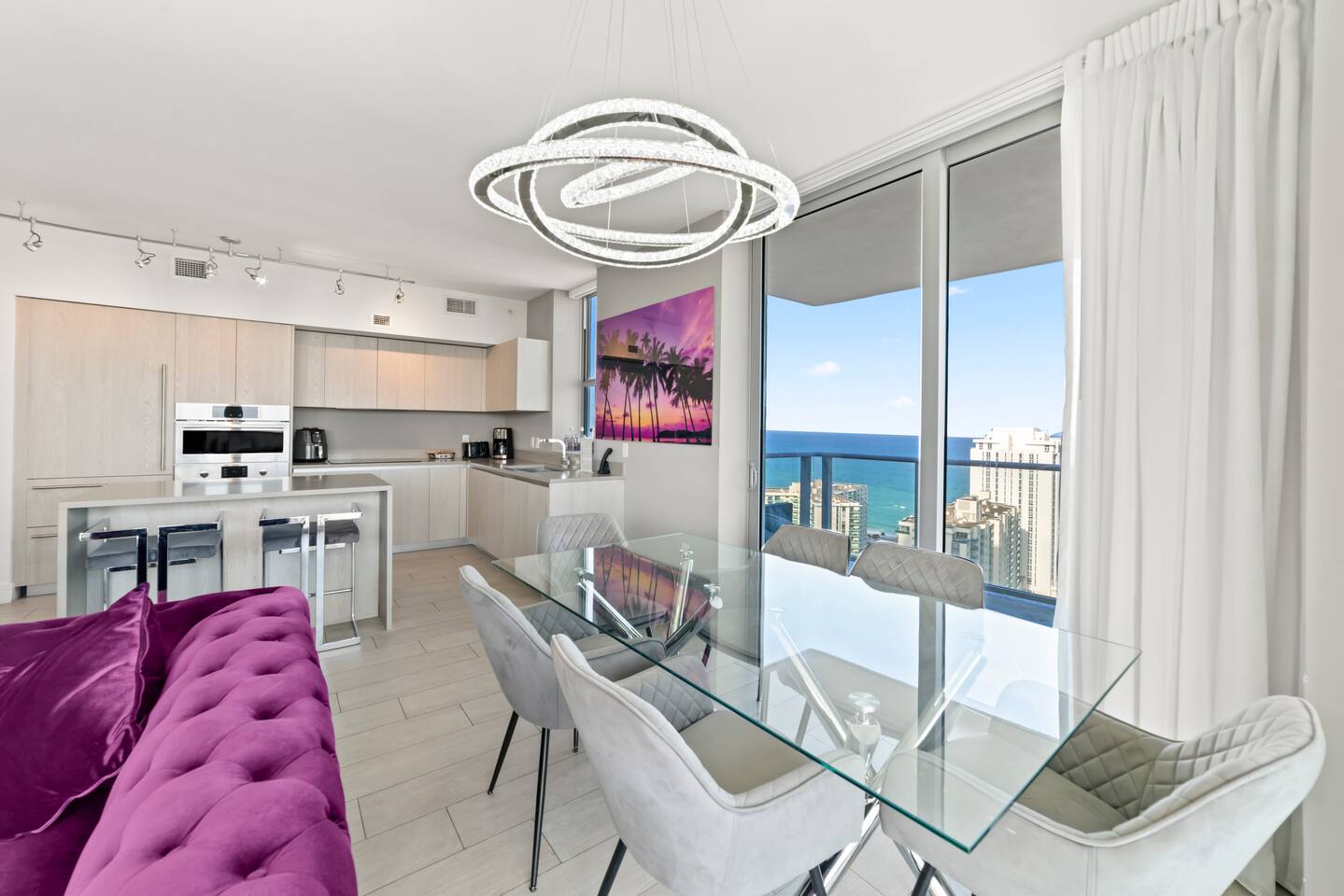 💎Step into comfort, style, and breathtaking views! ✨This professionally designed apartment features high-end furnishings and appliances to perfectly match the stunning panoramic views - from floor-to-ceiling windows with ocean and coastal scenery to sleek interior design that blends luxury with warmth. ⚠️ ATTENTION PLEASE! Kindly review and agree to everything described in "Other things to note". ⚠️ ⸻ 🛋️ Living Room: The living room is bright and elegant, featuring modern décor and floor-to-ceiling windows that fill the space with natural light. A flat-screen TV, comfortable seating, and a sleek glass coffee table create an inviting setting for relaxation or conversation. The room opens directly onto the private balcony, offering a seamless indoor-outdoor flow perfect for enjoying the fresh air or city views. ⸻ 🥂Dining Area: The dining area features a modern glass table with plush seating for six, creating an elegant space for shared meals or casual gatherings. Surrounded by large windows that fill the room with natural light, it connects seamlessly to both the kitchen and living room for a spacious, open feel. The stylish chandelier adds a touch of sophistication to this inviting setting. ⸻ 👨🍳 Kitchen: The full kitchen combines modern design with everyday convenience, featuring sleek cabinetry, stainless steel appliances, and a spacious island with bar seating. Fully equipped with cookware, utensils, and small appliances, it’s perfect for preparing anything from a quick breakfast to a family dinner. The open layout connects seamlessly to the dining and living areas, creating an inviting space to cook, dine, and relax together. ⸻ 🛏️ Master Bedroom (Side Ocean / Intracoastal / City Views): The master bedroom is designed for comfort and style, featuring a king bed with crisp linens, a spacious walk-in closet, and a private en-suite bathroom. It includes a dedicated workspace and TV for added convenience. Floor-to-ceiling windows and balcony access bring in natural light, creating a peaceful atmosphere perfect for rest and relaxation. ⸻ 🛌 Second Bedroom (Direct Ocean View): The second bedroom offers a cozy double bed and an additional floor mattress for extra guests. A flat-screen TV and convenient work desk provide space for entertainment or remote work, while the designated bathroom is located just next to the room with easy access from the living area. Large windows fill the room with natural light and showcase a beautiful direct ocean view, creating a calm and relaxing setting. ⸻ 🛁Master Bathroom: The master bathroom is elegant and spacious, featuring a glass-enclosed shower, a relaxing soaking tub, and a dual-sink vanity with modern fixtures. Soft lighting and clean finishes create a soothing, spa-like atmosphere. Conveniently located inside the master bedroom, it provides both privacy and comfort for a rejuvenating experience. ⸻ 🛁Second Bathroom: The second bathroom is modern and bright, featuring a glass-enclosed shower, sleek vanity, and fresh, minimalist design. Conveniently located right next to the second bedroom with access from the living room, it offers easy use for guests while maintaining privacy and comfort. ⸻ 🌅 Private Balcony: Spacious private balcony with comfortable seating, offering panoramic views of the ocean, Intracoastal, and city skyline. Perfect for enjoying your morning coffee, relaxing with a book, or unwinding in the evening breeze while taking in the serene coastal scenery. ⸻ 🧺 Washer & Dryer In-unit washer and dryer make long stays and beach trips easy and convenient! 🧼👕