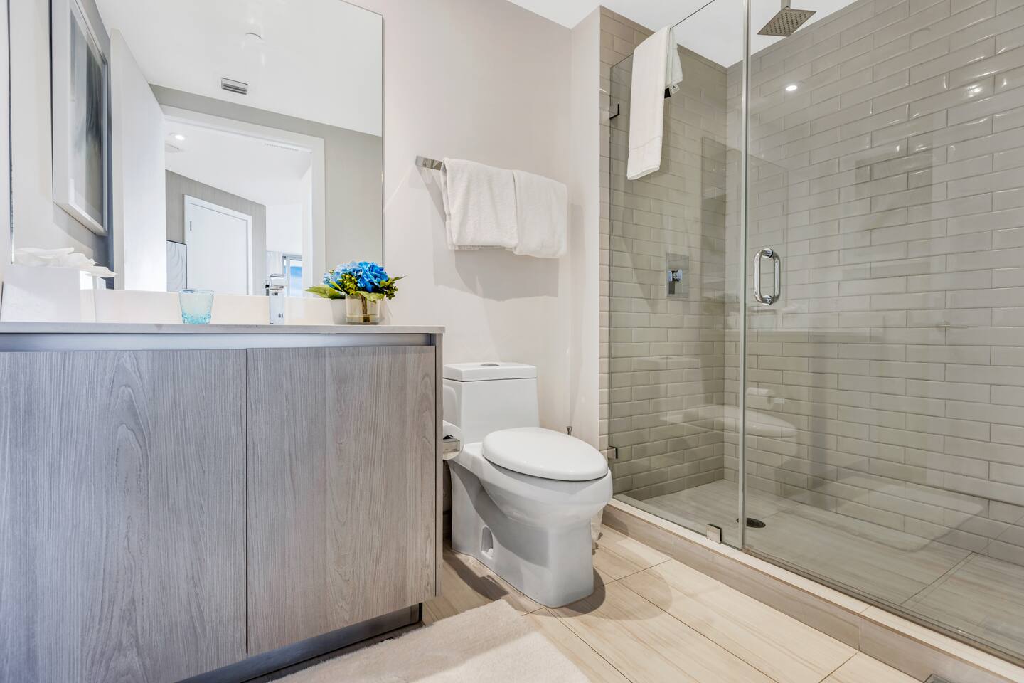 🛋️ Living Room: Bright and inviting, the living room features floor-to-ceiling windows that fill the space with natural light. A comfortable couch and elegant décor create a relaxing setting to unwind or enjoy a movie on the TV. The open layout flows seamlessly into the dining area and balcony, offering a spacious and airy atmosphere. ⸻ 🥂Dining Area: Elegant and airy, the dining area invites you to enjoy your meals surrounded by breathtaking views of the Intracoastal and city skyline. A sleek glass table with seating for four, modern lighting, and soft upholstered chairs create a stylish yet comfortable atmosphere for any occasion. ⸻ 🍳 Kitchen: The modern full kitchen features sleek cabinetry, premium stainless steel appliances, and a spacious island with seating for two. Large windows fill the area with natural light and offer scenic views while you cook or enjoy a quick bite. Fully equipped with all essentials, it’s perfect for preparing anything from a simple breakfast to a full dinner in style and comfort. ⸻ 🛏️ Master Bedroom: The master bedroom offers a relaxing retreat featuring a plush king bed, elegant décor, and direct access to the balcony. Enjoy the convenience of a spacious walk-in closet, personal safe, and sleek en suite bathroom. A flat-screen TV and dedicated workspace add extra comfort, making it ideal for both leisure and business stays. ⸻ 🛏️ Second Bedroom: The second bedroom provides a bright and comfortable space featuring two double beds with premium linens, modern décor, and a flat-screen TV for your entertainment. Large windows fill the room with natural light, creating a relaxing atmosphere. A designated bathroom is located right next to the bedroom with convenient access from the living room. ⸻ 🛁Master Bathroom: Elegant bathroom offers a double-sink vanity, a spacious walk-in shower, and a relaxing soaking tub with modern finishes and bright lighting. Its calm, spa-like design provides a refreshing retreat, conveniently located within the master bedroom for added privacy and comfort. ⸻ 🛁Second Bathroom: Bright, contemporary bathroom offers a spacious walk-in shower, modern vanity, and clean finishes that create a refreshing atmosphere. It’s conveniently located next to second bedroom and can also be accessed from the living area for everyday ease. ⸻ 🌅 Private Balcony: The private balcony offers a serene outdoor space to unwind and take in the stunning panoramic views of the city, ocean, and Intracoastal Waterway. Furnished with comfortable seating, it’s an ideal spot to enjoy morning coffee, relax in the fresh breeze, or watch the sunset after a day at the beach. ⸻ 🧺 Washer/Dryer: A convenient in-unit washer and dryer are tucked neatly behind closet doors, allowing you to refresh your wardrobe throughout your stay. Whether you’re here for a weekend or an extended visit, this practical feature ensures comfort and ease during your time at the resort.
