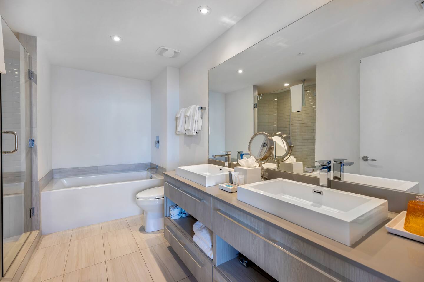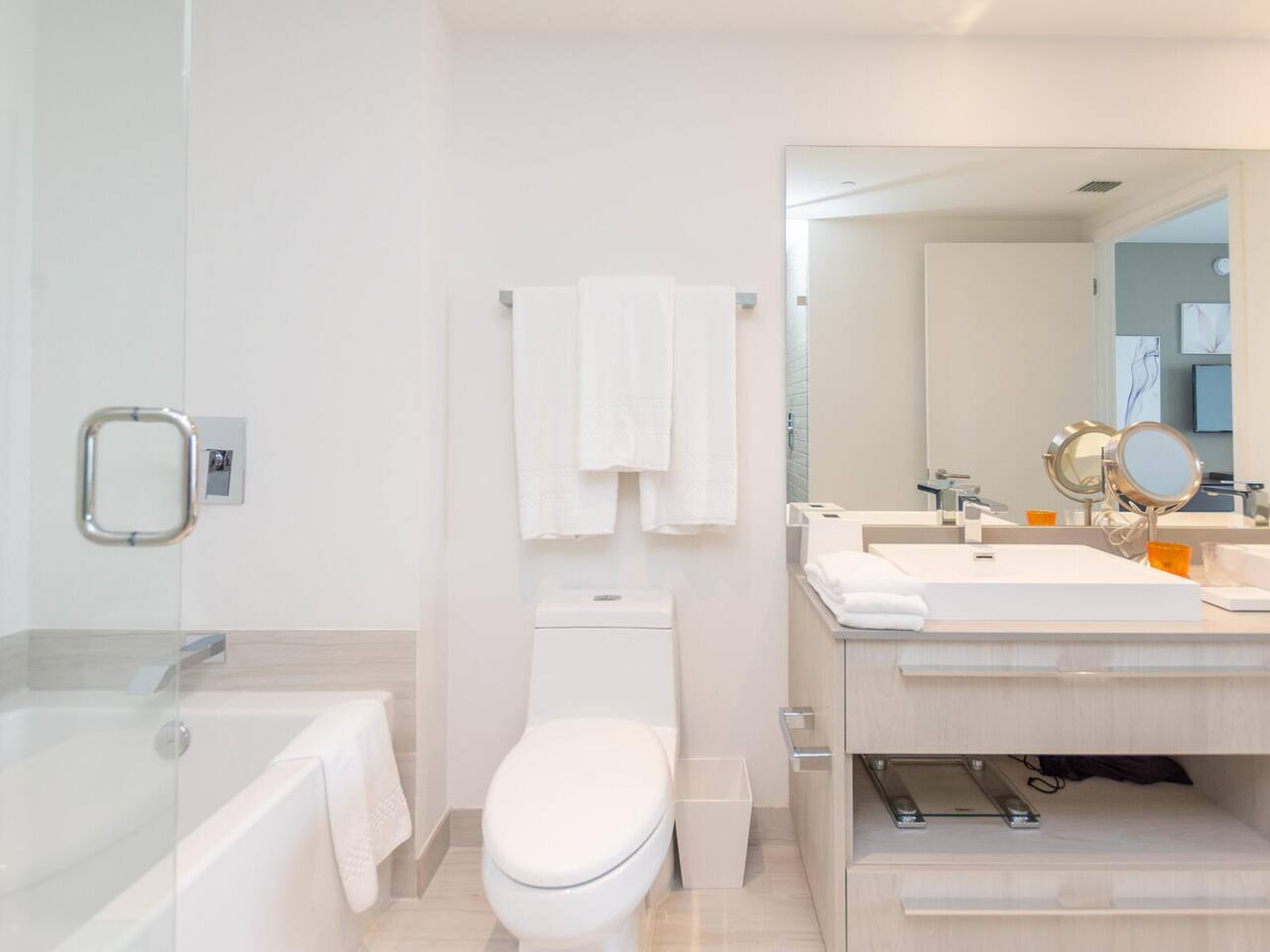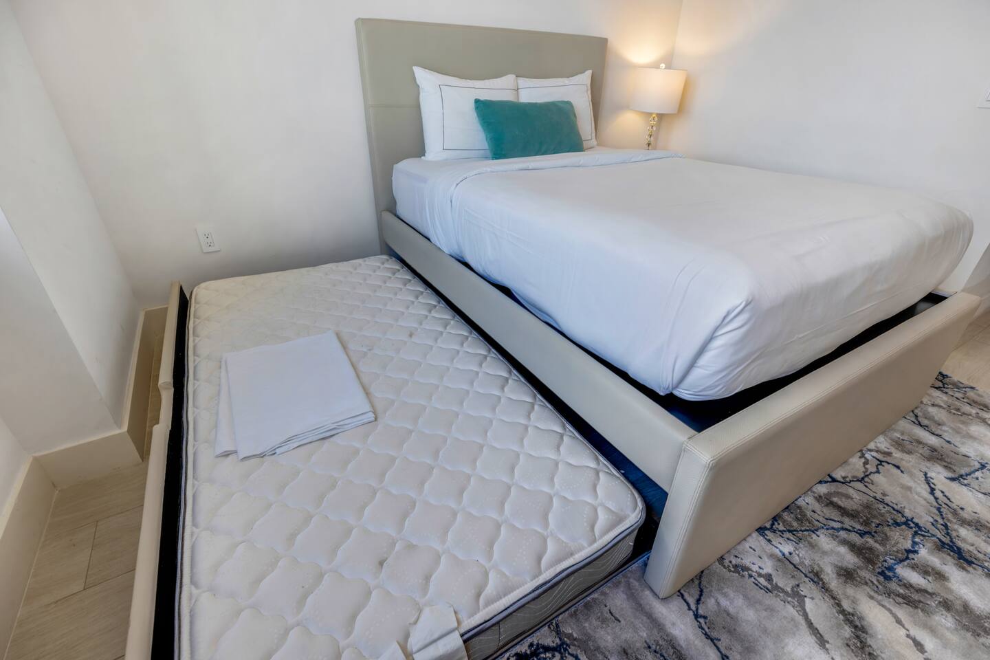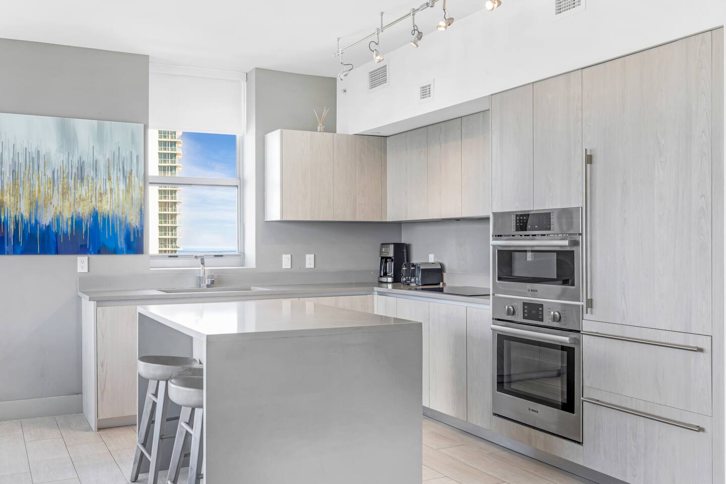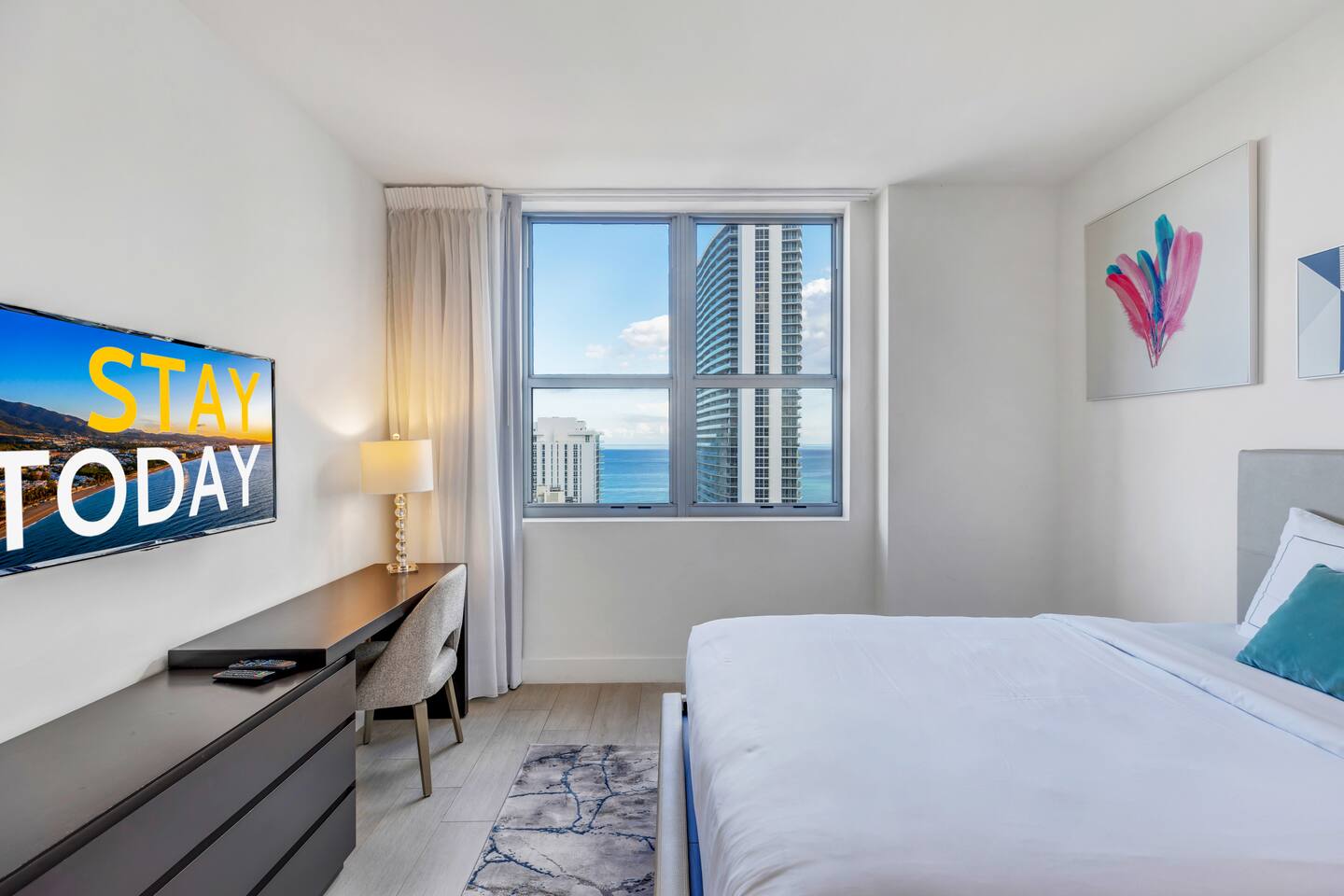 ✨ Welcome to your coastal escape where modern style meets effortless comfort. Wake up to sunlit ocean views, unwind in elegant interiors, and enjoy tranquil moments between the ocean and the bay. Whether you’re sharing time with loved ones or simply recharging, this serene retreat offers the perfect blend of relaxation and sophistication, with every detail designed for your comfort and peace of mind. ⚠️Kindly review and agree to everything described in "Other things to note"⚠️ ⸻ 🛋️ Living Room: Bright and inviting, the living room features floor-to-ceiling windows framing stunning ocean, city, and Intracoastal views. A plush blue sofa unfolds into a comfortable queen-size bed, offering both style and functionality. A flat-screen TV provides entertainment for relaxing nights in. Step out onto the private balcony to enjoy the breeze, or unwind inside surrounded by modern décor and soft natural light. ⸻ 🥂Dining Area: Set beside floor-to-ceiling windows, the dining area offers a bright, airy space with sweeping ocean and city views. A sleek glass table with seating for six creates the perfect setting for shared meals or morning coffee. Whether it’s a relaxed breakfast or a candlelit dinner, every moment here comes with a stunning backdrop. ⸻ 🍳 Kitchen: The full kitchen combines modern design with everyday convenience. Featuring sleek cabinetry, high-end appliances, and a spacious island with bar seating for two, it’s fully equipped with cookware, utensils, and essentials for home-style meals. Whether you’re preparing breakfast or hosting dinner, this elegant space makes cooking effortless and enjoyable. ⸻ 🛏️ Master Bedroom(Intercostal/Side ocean view): Elegant and serene, the master bedroom features a plush king-size bed, walk-in closet, private bathroom, and a TV for relaxation. Floor-to-ceiling windows open to the balcony, revealing city, Intracoastal, and side ocean views. A dedicated workspace and in-room safe add convenience, making this peaceful retreat perfect for both rest and productivity. ⸻ 🛏️ Second Bedroom (Intracoastal/Direct ocean view): Bright and cozy, the second bedroom features a comfortable double bed with an additional trundle bed for extra guests. A TV and workspace provide comfort and convenience, while large windows frame stunning city, Intracoastal, and direct ocean views. The designated bathroom is located just next to the room with easy access from the living area. ⸻ 🛁Master Bathroom: Spacious and elegant, the master bathroom features a glass-enclosed shower, a relaxing bathtub, and dual vanities for extra convenience. With sleek finishes and soft lighting, it offers a serene retreat to unwind and refresh. Located directly within the master bedroom, it provides both privacy and comfort. ⸻ 🛁Second Bathroom: Modern and bright, the second bathroom features a sleek glass-enclosed shower, elegant vanity, and soft neutral tones that create a clean, refreshing atmosphere. Conveniently located next to the second bedroom with access from the living area, it offers both style and practicality for guests’ comfort. ⸻ 🌅Private Balcony: The private balcony offers a peaceful outdoor retreat with sweeping views of the ocean, city skyline, and Intracoastal Waterway. Furnished with comfortable seating, it’s an inviting space to enjoy your morning coffee, unwind after a day at the beach, or simply take in the fresh coastal breeze and breathtaking scenery. ⸻ 🧺 Washer/Dryer: In-unit washer and dryer available for your convenience.