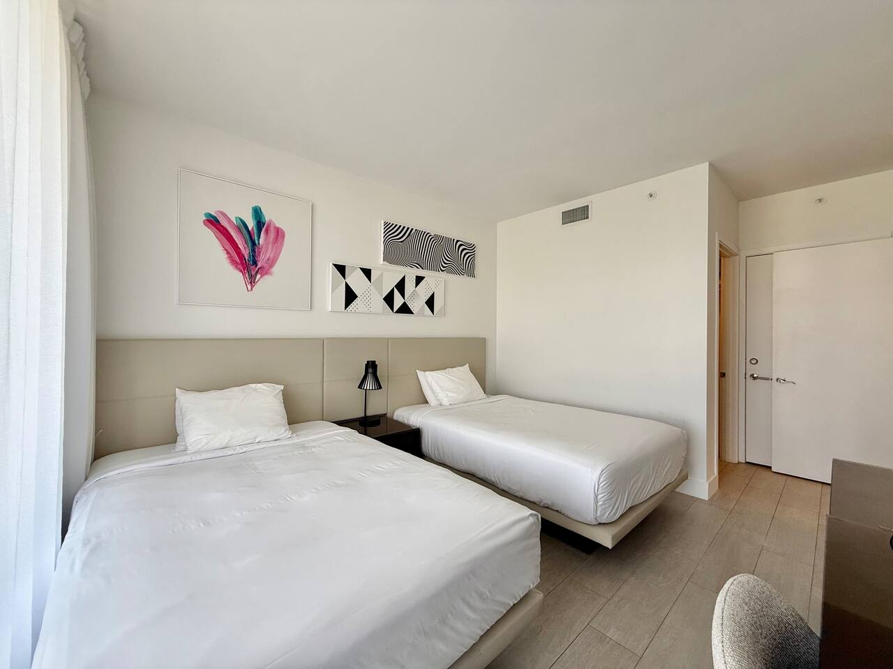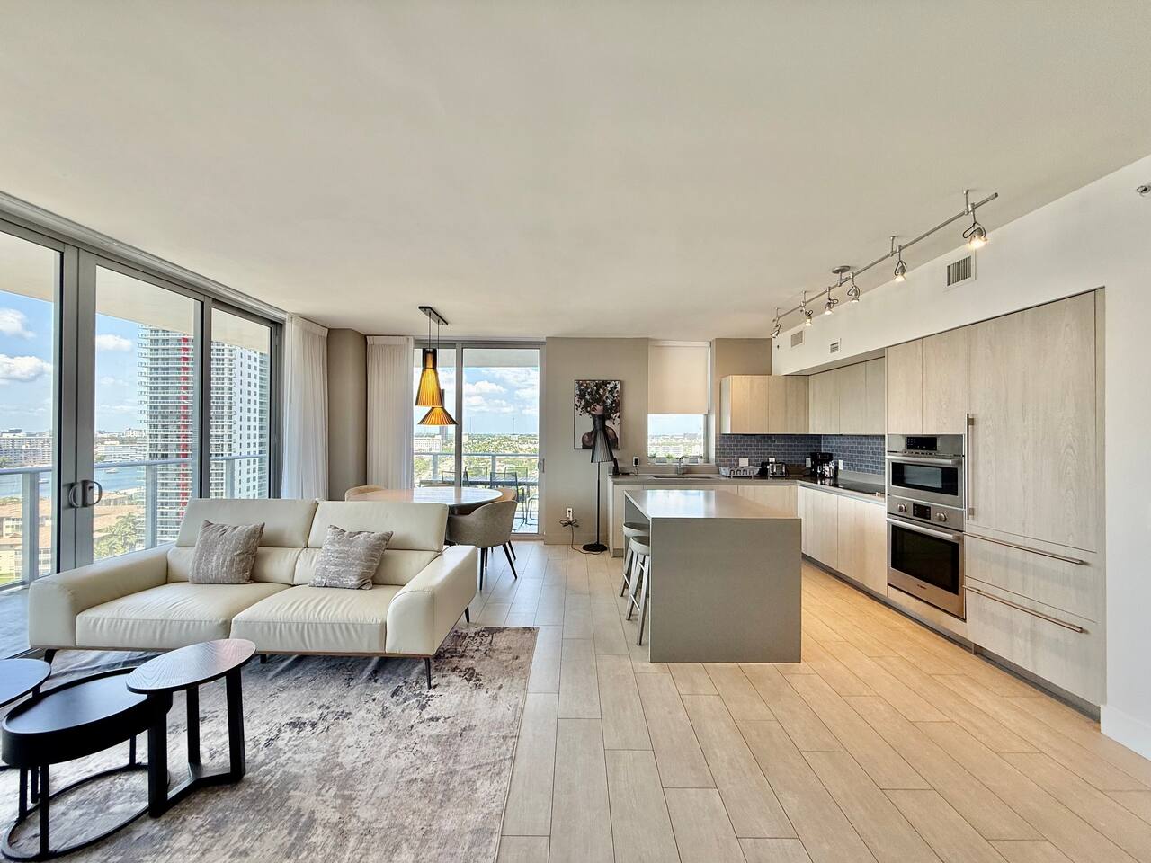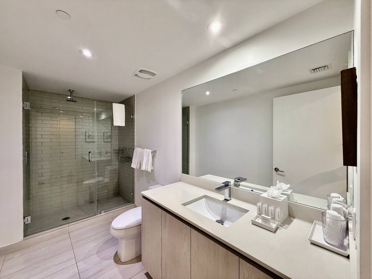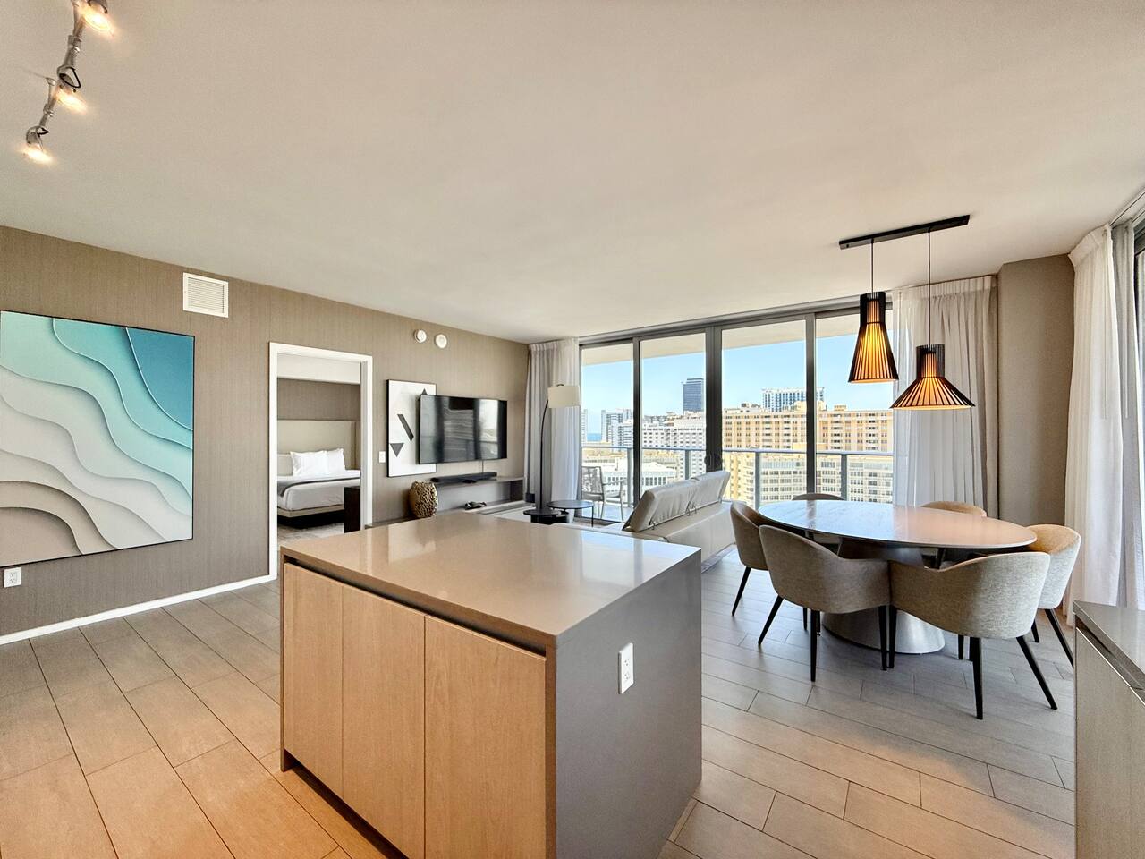 🛋️ Living Room: The living room features an open, modern layout filled with natural light and framed by floor-to-ceiling windows showcasing direct city and Intracoastal views. A comfortable couch, stylish décor, and a flat-screen TV create an inviting space for relaxation and entertainment, while the seamless access to the private balcony lets you enjoy the refreshing breeze and stunning scenery day or night. ⸻ 🥂Dining Area: The dining area offers a stylish and comfortable setting for shared meals and gatherings. A modern table with seating for six sits beside large windows, allowing natural light to fill the space and reveal beautiful city views. Two additional bar seats at the kitchen island provide a casual spot for coffee, breakfast, or evening drinks while enjoying the open, airy ambiance. ⸻ 🍳 Kitchen: The kitchen features a sleek, contemporary design with high-end finishes and modern appliances. It includes an oven, stove, microwave, refrigerator, coffee machine, and toaster, making it easy to prepare anything from a quick breakfast to a full dinner. A spacious island with two bar seats adds convenience and serves as a casual dining space, all within a bright and open layout connected to the living and dining areas. ⸻ 🛏️ Master Bedroom: The master bedroom offers a serene retreat with a luxurious king bed, elegant furnishings, and warm lighting that creates a calm and inviting atmosphere. It includes a flat-screen TV for entertainment and floor-to-ceiling windows that open directly onto the balcony, offering beautiful city views and plenty of natural light. The room also features a private in-suite bathroom for added comfort and convenience. ⸻ 🛏️ Second Bedroom: The second bedroom features two comfortable double beds, a spacious walk-in closet, and access to a private balcony with beautiful city views. It includes a flat-screen TV and a dedicated workspace with a desk and lamp, perfect for relaxation or remote work. The designated bathroom is located right next to the bedroom, accessible from the living room for added convenience. ⸻ 🛏️ Third Bedroom: The third bedroom offers two comfortable single beds, ideal for friends or family members sharing the space. A flat-screen TV provides entertainment, while a dedicated workspace with a desk and lamp makes it convenient for reading or remote work. The room’s large window allows natural light to brighten the space, creating a calm and pleasant atmosphere. ⸻ 🛁Master Bathroom: The master bathroom, located within the master bedroom, features a modern and elegant design with premium finishes. It includes a spacious walk-in shower with glass doors, a relaxing bathtub, and a sleek vanity with a large mirror and ample counter space. Soft lighting and high-quality amenities create a spa-like atmosphere perfect for unwinding after a long day. ⸻ 🛁Second Bathroom: The second bathroom is conveniently located next to the second bedroom, with easy access from the living room. It features a modern walk-in shower with glass doors, a wide vanity with a large mirror, and soft lighting that enhances its clean, contemporary design. Fresh towels and essential toiletries are provided for a comfortable and refreshing experience. ⸻ 🛁Third Bathroom: The third bathroom features a clean, minimalist design with modern fixtures and soft neutral tones. It includes a large mirror, a sleek pedestal sink, and fresh towels for guests' convenience. Bright lighting and tasteful décor add a touch of elegance, making it a comfortable and functional space for daily use. ⸻ 🌅Private Balcony: The private balcony extends along the entire length of the residence, offering panoramic views of the Intracoastal Waterway and city skyline. Furnished with multiple seating areas, including a dining table and lounge chairs, it’s perfect for enjoying morning coffee, outdoor meals, or simply relaxing while taking in the fresh breeze and scenic surroundings. ⸻ 🧺 Washer/Dryer: In-unit washer and dryer available for your convenience.