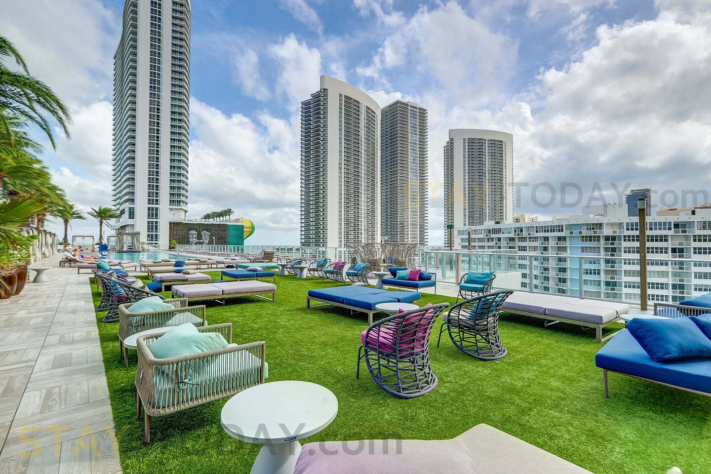 🏊 Rooftop Pool (6th Floor): Infinity-edge ocean view pool located on the 6th floor, complete with Jacuzzi, sundeck, and lounge seating. Open daily from 7:00 AM to 10:00 PM. ✅ Included in resort fee ⸻ 🌅 Intracoastal Pool (1st Floor): Infinity-edge pool located on the ground floor, offering peaceful views of the Intracoastal Waterway. Open daily from 7:00 AM to 10:00 PM. ✅ Included in resort fee ⸻ 🏋️ Fitness Center (6th Floor): Located on the 6th floor, the fully equipped gym overlooks the Intracoastal for a scenic workout. Open daily from 6:00 AM to 10:00 PM. ✅ Included in resort fee ⸻ 🎬 Rooftop Movie Nights (6th Floor): Enjoy outdoor movie screenings under the stars every Wednesday and Friday at 7:00 PM. Relax in a cozy rooftop setting with beautiful evening views. ✅ Included in resort fee ⸻ 🏖️ Beach Access (Across the street): Includes 2 beach chairs, 1 umbrella, and 2 towels per room. Extra chairs are available on a first come, first served basis during peak season. Open daily from 9:00 AM to 4:00 PM. The designated beach area is a short walk from the building. ✅ Included in resort fee ⸻ 🎾 Sports Courts (6th Floor): Access to tennis, basketball, and racquetball courts. Open daily from 7:00 AM to 10:00 PM. ✅ Included in resort fee ⚠️ Please note: The tennis court will be closed for the summer season. ⸻ 🧘 Yoga & Kids Camp: Yoga classes on Saturdays at 9:00 AM and Kids Camp at 1:00 PM, both held on the 6th floor. ✅ Included in resort fee ⸻ 🧑💼 Concierge Service: 24-hour personal concierge and room service for all guests. ✅ Included in resort fee ⸻ 🍫 Snacks & Vending Machines: Available 24/7 behind the front desk. ⸻ 🌴 Costera Sunset Bar & Grill: Discover the vibrant flavors of South Florida from the 6th-floor pool deck at Costera. Overlooking the coast, this poolside bar and grill offers a relaxed setting to enjoy handheld classic bites and beach-inspired cocktails. 💲 Paid separately, no room service