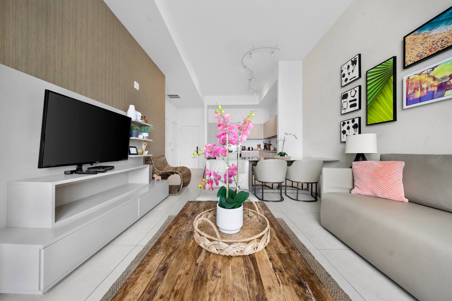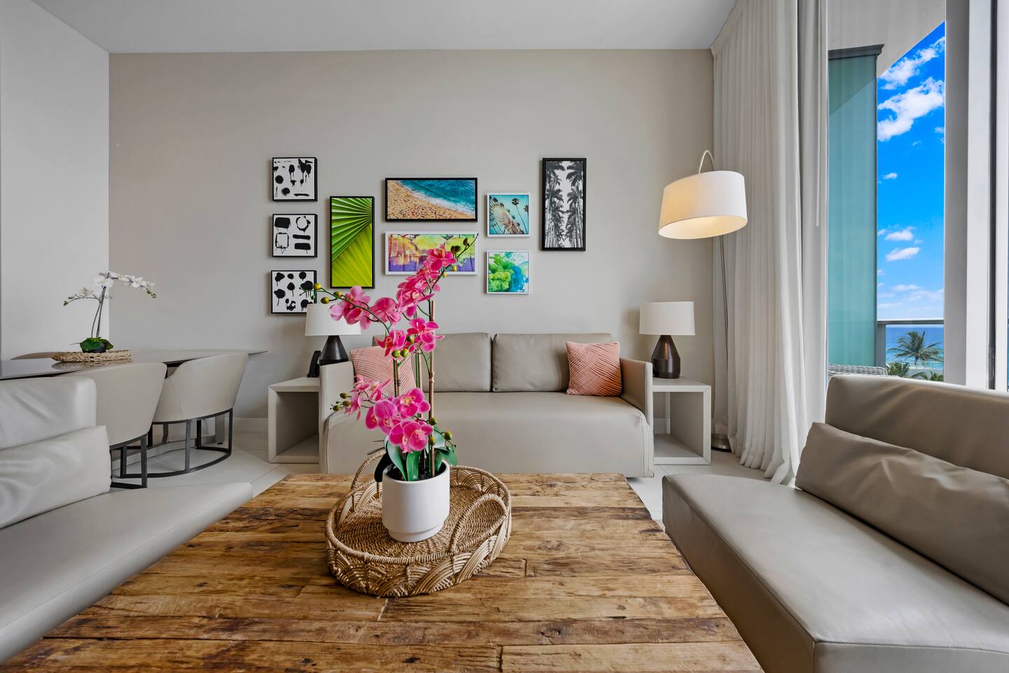 The condo is located in the upscale neighborhood of Hallandale just steps from the beach and minutes from the Aventura Mall and the restaurants in Sunny Isles Beach.