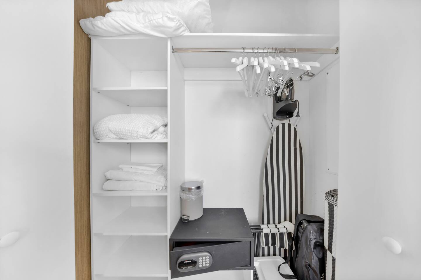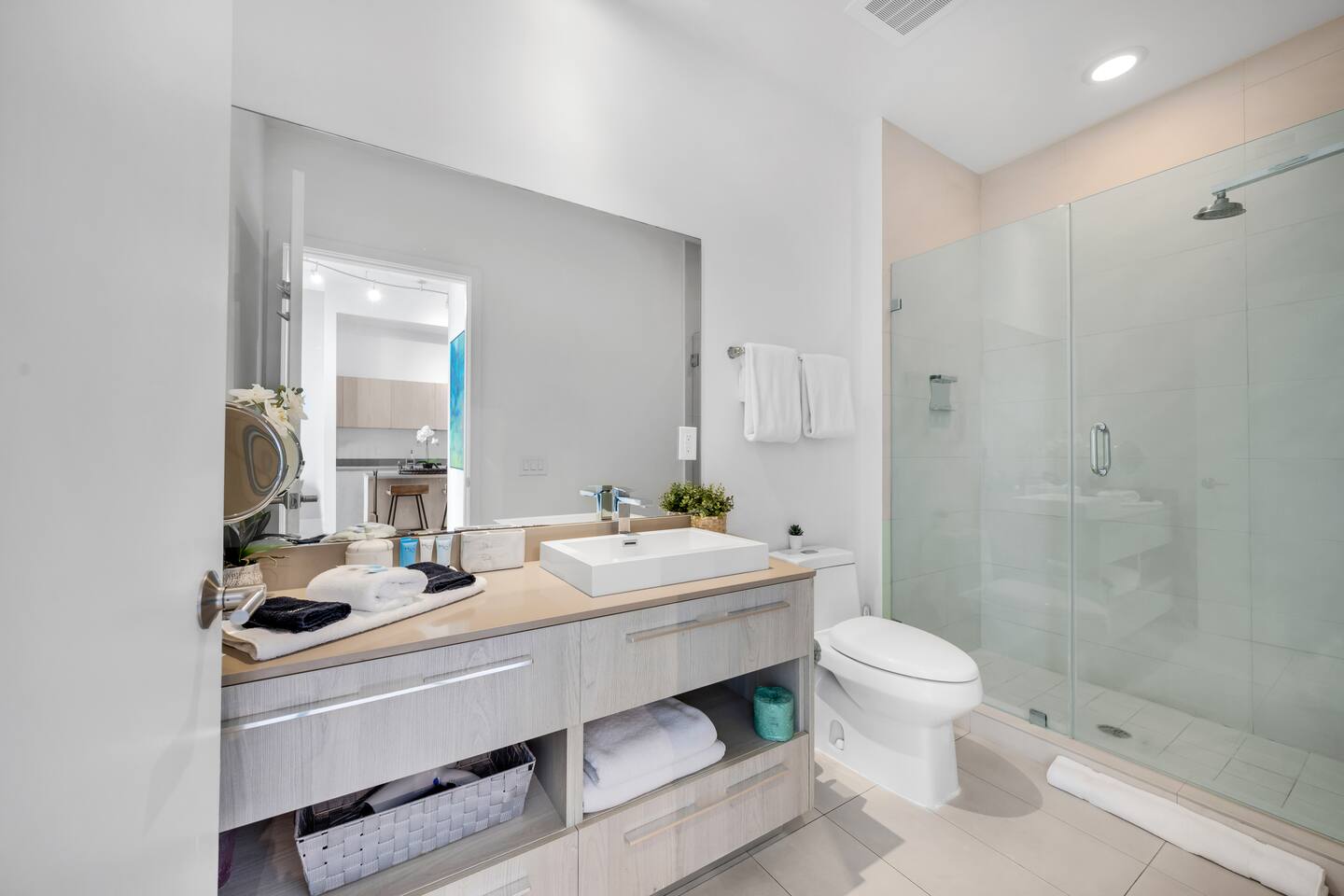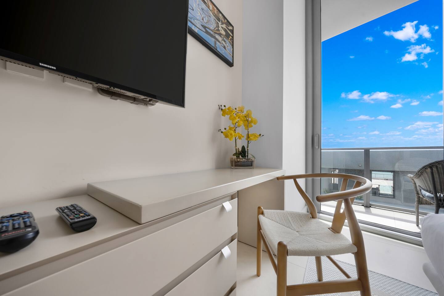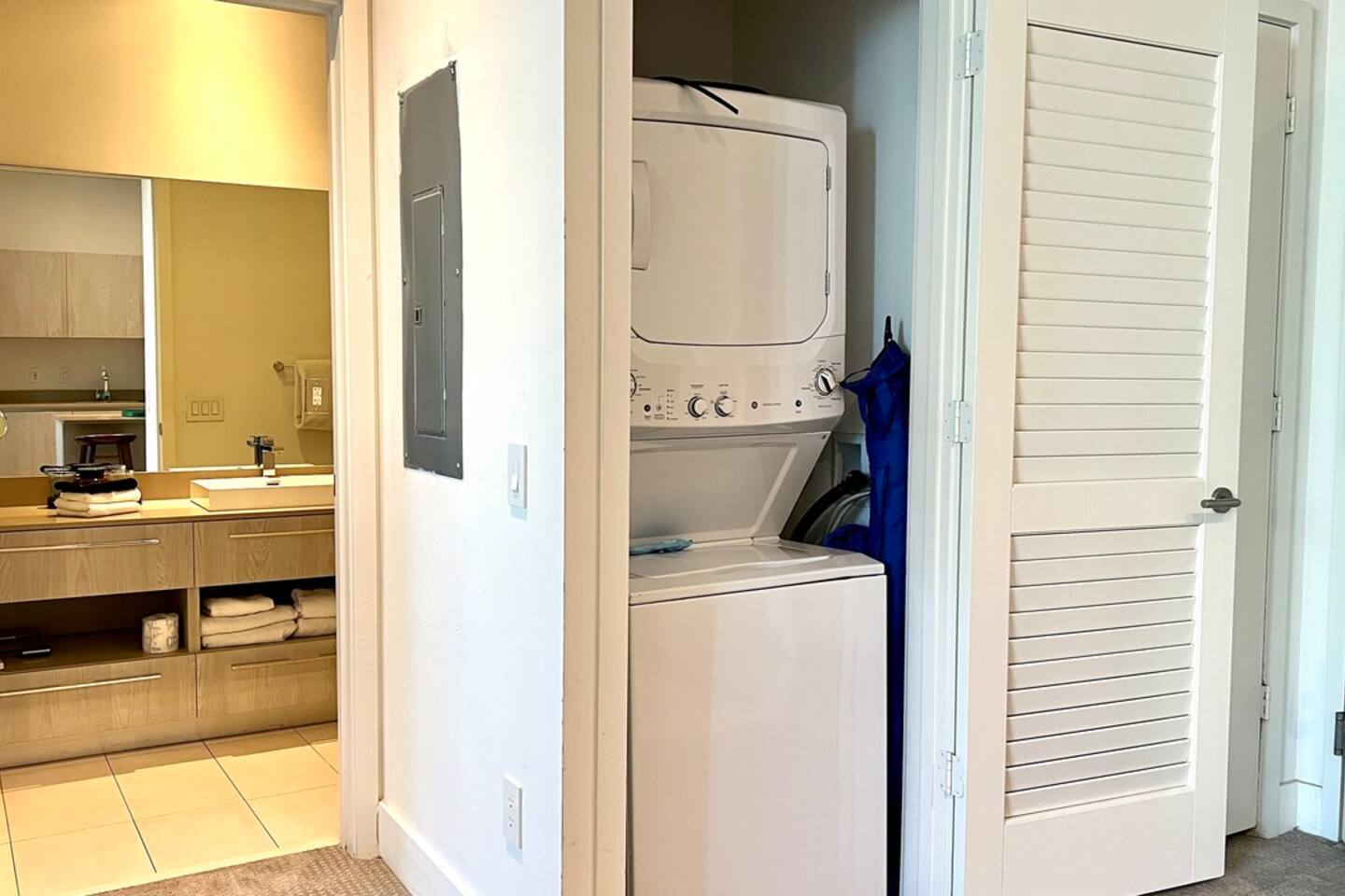 🏡Step inside to find a haven of sophistication, where every piece of top-notch furniture has been carefully selected to enhance your living experience. The spacious living areas with high ceilings are ideal for relaxing or entertaining, seamlessly blending style with functionality. ⸻ 🛋️ Living Room: The living room offers a welcoming space designed for relaxation and convenience. The sofa folds into a full-size double bed, providing extra sleeping arrangements, while the 50-inch TV ensures easy access to entertainment. Warm, modern décor and natural touches create a comfortable setting for unwinding after a day at the beach or exploring the city. ⸻ 🥂Dining Area: The dining area provides a cozy setting for shared meals and meaningful moments, with seating for four that makes every gathering feel special. Its warm and inviting atmosphere enhances your stay and creates the perfect place to connect. ⸻ 🍳 Kitchen: The kitchen is fully equipped with modern appliances, ample counter space, and premium cookware, offering everything you need to prepare meals with ease. A sleek island with two bar seats makes it just as perfect for a quick breakfast as for a gourmet dinner, blending style with functionality. ⸻ 🛏️ Bedroom (Ocean view): The bedroom features a comfortable king-size bed with soft linens and plush pillows, creating the perfect setting for restful sleep. A designated working space makes it easy to stay productive, while a walk-in closet provides ample storage. Step out to your private balcony to enjoy fresh air and natural light, or unwind with entertainment on the 43-inch TV. For added convenience, the bathroom is located right next to the bedroom. ⸻ 🛁 Bathroom: The bathroom offers a sleek, modern design with a spacious glass-enclosed shower. Fresh towels, shampoo, and conditioner are provided, ensuring a refreshing and comfortable experience throughout your stay. ⸻ 🌅Private Balcony: The balcony offers a refreshing escape with open views of the ocean and swaying palms below. A perfect spot to enjoy your morning coffee, breathe in the sea air, and take in the beauty of Hollywood Beach. ⸻ 🧺 Washer/Dryer: A washer and dryer are available in the unit, providing the convenience of doing laundry during your stay so you can always have fresh clothes on hand.