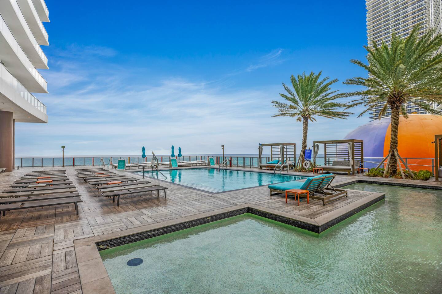 🏖️ Beach Access & Service: The designated beach area, just a 5-minute walk from the resort, offers 2 lounge chairs and 1 umbrella for your comfort. Fresh beach towels are provided by the Resort Beach Service and are intended for use at the beach for your convenience. ✅ Included in resort fee ⸻ 🏊 Rooftop Pools & Sun Deck (9th floor): Two infinity-edge ocean-view pools, including a rooftop pool with sweeping views of the Atlantic. Located on the 9th floor, featuring a sundeck and private cabanas. Jacuzzi also available. ✅ Included in resort fee ⸻ 🏋️ Fitness Center (9th floor): Stay active in the fully equipped fitness center, featuring Oceanview cardio machines, free weights, and strength training equipment designed to keep your routine on track. ✅ Included in resort fee ⸻ 🧑💼 Concierge Service: 24-hour personal concierge and room service for all guests. ✅ Included in resort fee ⸻ 🍽️ Terrazas Restaurant & Bar (Poolside): Located right next to the rooftop pool, Terrazas serves fresh seafood, seasonal dishes, and South Florida-inspired cuisine. Enjoy food and drinks poolside from the adjacent full-service bar. 💲 Paid separately ⸻ 🍣 ETARU Restaurant: Located just a few steps from Terrazas, ETARU offers contemporary Japanese Robatayaki cuisine in a waterfront setting. 💲 Paid separately.