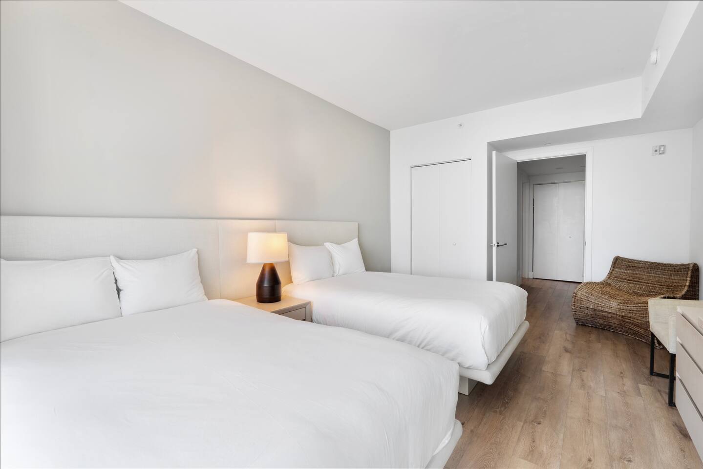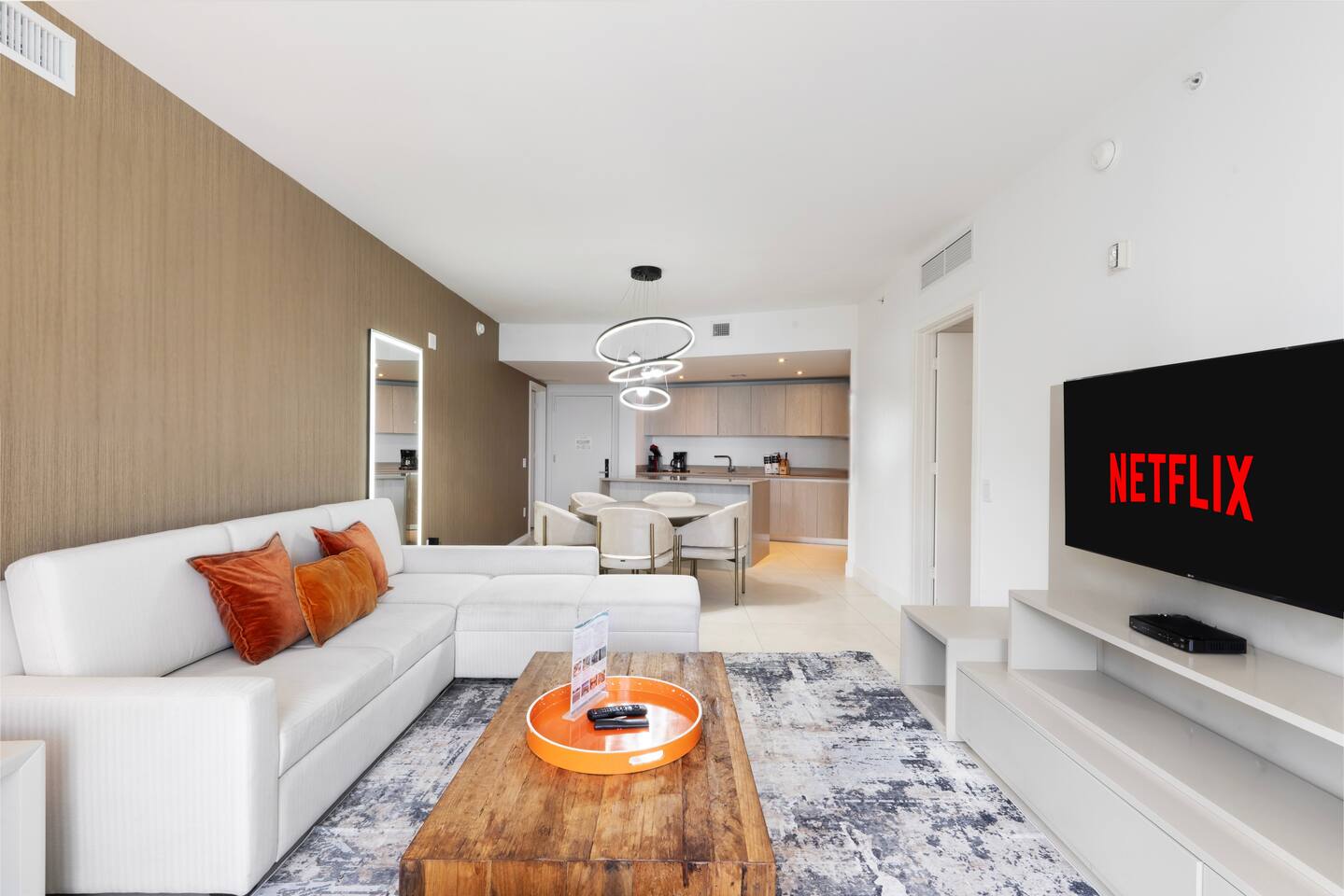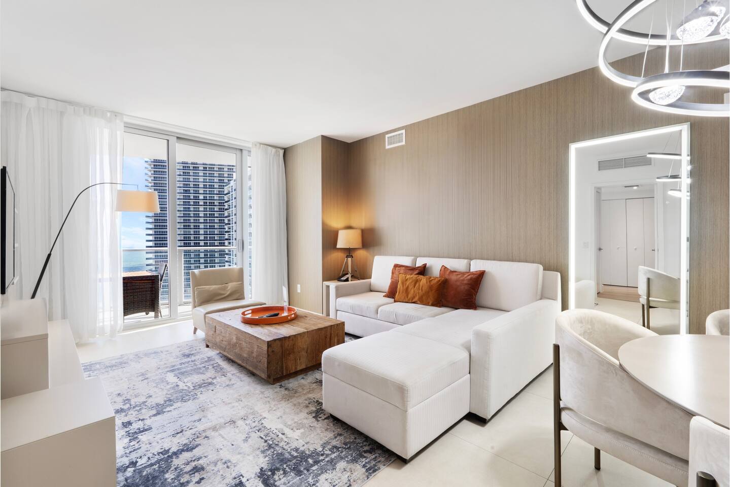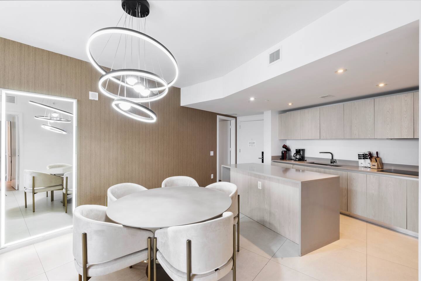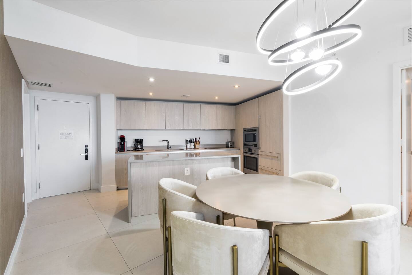 🏙️Step into your private oasis, where luxury meets comfort. Your stunning condo boasts panoramic ocean views, sleek modern design, and high-end finishes. Indulge in exclusive amenities - soak up the sun at the rooftop pool, stay active in our state-of-the-art fitness center, or rejuvenate at the onsite spa. ⸻ 🛋️ Living Room: The living room is filled with natural light from large windows and designed for both comfort and style. A cozy sofa and 50-inch flat-screen TV make it perfect for relaxing, while the private balcony invites you to enjoy sweeping ocean and city views. For added flexibility, the sofa also folds out into a full-size double bed, providing extra sleeping space when needed. ⸻ 🥂Dining Area: The dining area offers a modern, inviting space with a round table for six, set under a chic chandelier. Its open layout flows effortlessly into the living room, making it perfect for shared meals, conversation, and enjoying the ocean views beyond. ⸻ 🍳 Kitchen: The kitchen combines modern design with everyday convenience, featuring sleek stainless steel appliances, custom cabinetry, and generous counter space. Perfect for quick breakfasts, fresh coffee, or cooking full meals, it’s both stylish and functional. ⸻ 🛏️Master Bedroom(Intercostal/city, Ocean-View): The master bedroom is your private retreat, featuring a plush queen-size bed, 43-inch flat-screen TV, and elegant furnishings. Floor-to-ceiling windows frame sweeping intracoastal, city, and ocean views, while the private balcony offers a perfect spot to take in the scenery. An en-suite bathroom and ample storage complete this stylish space. ⸻ 🛏️Second Bedroom(Intercostal/city, Ocean-View): The second bedroom offers two plush double beds, ideal for families or friends. Enjoy a private balcony with ocean, city, and intracoastal views, plus an 43-inch flat-screen TV and seating area. The en-suite bathroom also connects to the living room for added convenience. ⸻ 🛁Master Bathroom: Located in the master bedroom, this sleek bathroom provides a spa-like retreat with a glass-enclosed shower, modern fixtures, and a spacious vanity. Designed for comfort and style, it features both a walk-in shower and a relaxing bathtub. ⸻ 🛁Second Bathroom: The second bathroom offers both convenience and privacy, designed with sleek finishes and a spacious walk-in shower. Accessible directly from the second bedroom and also from the living room, it’s a practical and stylish space to freshen up after a day in Miami. ⸻ 🌅Private Balcony: The private balcony offers stunning views of the ocean, city, and Intracoastal. With ample space and seating, it’s an inviting spot to enjoy your morning coffee, relax after a day at the beach, or take in a beautiful Miami sunset. ⸻ 🧺 Washer/Dryer: The laundry area features a convenient in-unit washer and dryer, making it easy to keep your clothes fresh and ready throughout your stay.