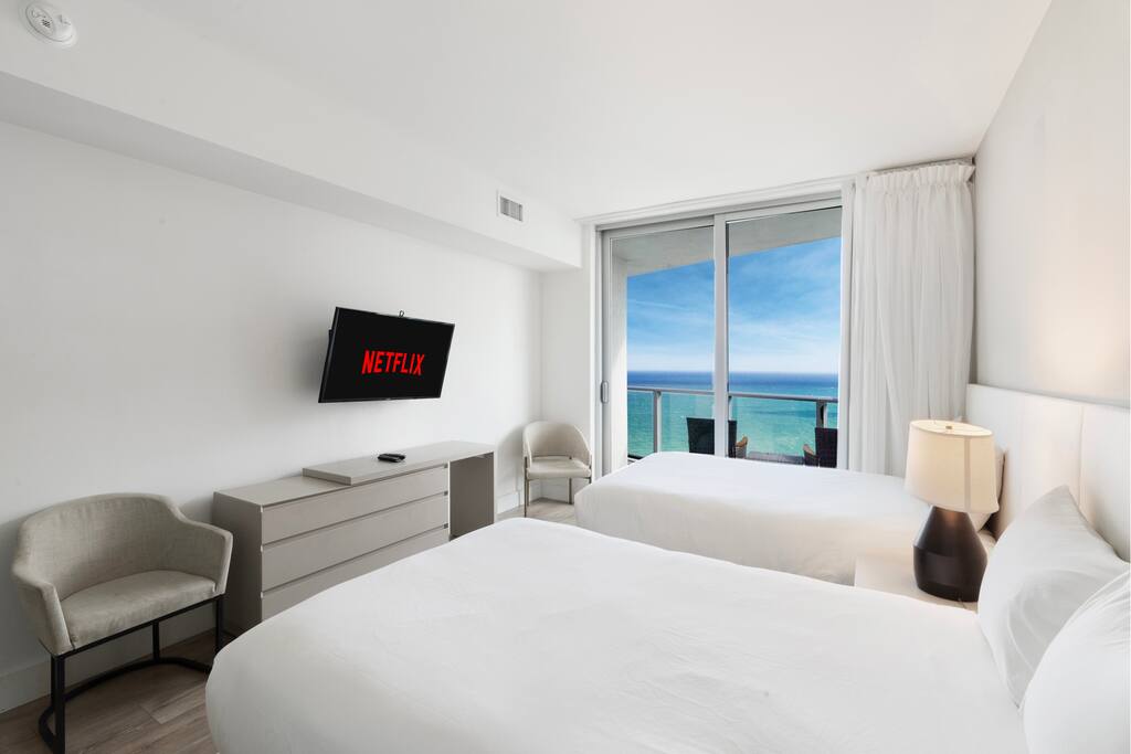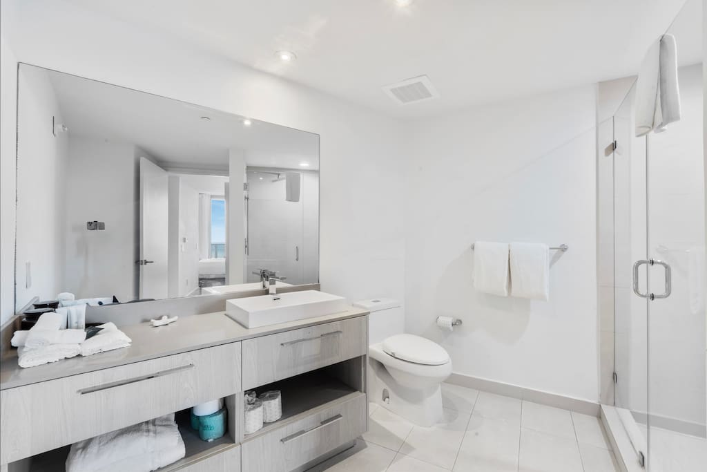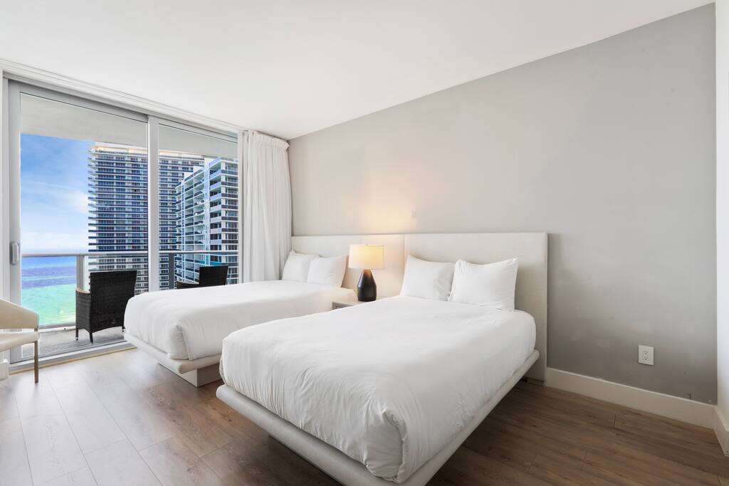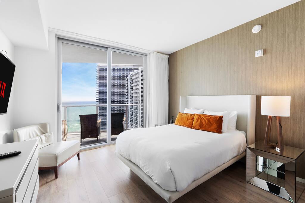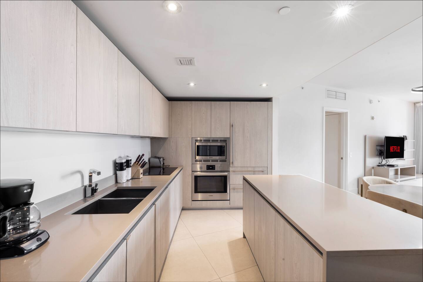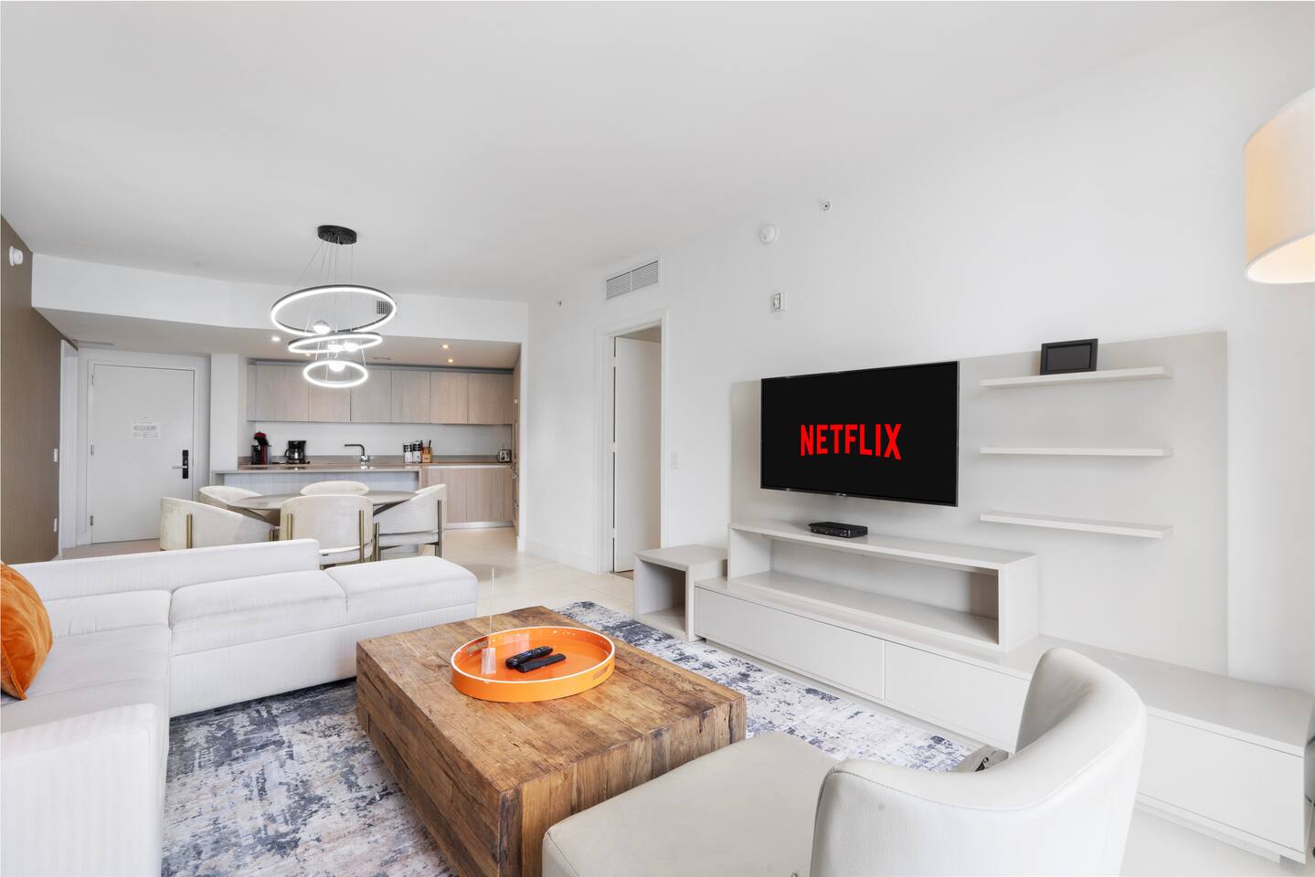 🏙️Step into your private oasis, where luxury meets comfort. Your stunning condo boasts panoramic ocean views, sleek modern design, and high-end finishes. Indulge in exclusive amenities - soak up the sun at the rooftop pool, stay active in our state-of-the-art fitness center, or rejuvenate at the onsite spa. ⸻ 🛋️ Living Room: The living room is filled with natural light from large windows and designed for both comfort and style. A cozy sofa and 50-inch flat-screen TV make it perfect for relaxing, while the private balcony invites you to enjoy sweeping ocean and city views. For added flexibility, the sofa also folds out into a full-size double bed, providing extra sleeping space when needed. ⸻ 🥂Dining Area: The dining area offers a modern, inviting space with a round table for six, set under a chic chandelier. Its open layout flows effortlessly into the living room, making it perfect for shared meals, conversation, and enjoying the ocean views beyond. ⸻ 🍳 Kitchen: The kitchen combines modern design with everyday convenience, featuring sleek stainless steel appliances, custom cabinetry, and generous counter space. Perfect for quick breakfasts, fresh coffee, or cooking full meals, it’s both stylish and functional. ⸻ 🛏️Master Bedroom(Intercostal/city, Ocean-View): The master bedroom is your private retreat, featuring a plush queen-size bed, 43-inch flat-screen TV, and elegant furnishings. Floor-to-ceiling windows frame sweeping intracoastal, city, and ocean views, while the private balcony offers a perfect spot to take in the scenery. An en-suite bathroom and ample storage complete this stylish space. ⸻ 🛏️Second Bedroom(Intercostal/city, Ocean-View): The second bedroom offers two plush double beds, ideal for families or friends. Enjoy a private balcony with ocean, city, and intracoastal views, plus an 43-inch flat-screen TV and seating area. The en-suite bathroom also connects to the living room for added convenience. ⸻ 🛁Master Bathroom: Located in the master bedroom, this sleek bathroom provides a spa-like retreat with a glass-enclosed shower, modern fixtures, and a spacious vanity. Designed for comfort and style, it features both a walk-in shower and a relaxing bathtub. ⸻ 🛁Second Bathroom: The second bathroom offers both convenience and privacy, designed with sleek finishes and a spacious walk-in shower. Accessible directly from the second bedroom and also from the living room, it’s a practical and stylish space to freshen up after a day in Miami. ⸻ 🌅Private Balcony: The private balcony offers stunning views of the ocean, city, and Intracoastal. With ample space and seating, it’s an inviting spot to enjoy your morning coffee, relax after a day at the beach, or take in a beautiful Miami sunset. ⸻ 🧺 Washer/Dryer: The laundry area features a convenient in-unit washer and dryer, making it easy to keep your clothes fresh and ready throughout your stay.