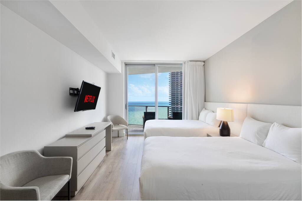 🏖️ Beach Access & Service: The designated beach area, just a 5-minute walk from the resort, offers 2 lounge chairs and 1 umbrella for your comfort. Fresh beach towels are provided by the Resort Beach Service and are intended for use at the beach for your convenience. ✅ Included in resort fee ⸻ 🏊 Rooftop Pools & Sun Deck (9th floor): Two infinity-edge ocean-view pools, including a rooftop pool with sweeping views of the Atlantic. Located on the 9th floor, featuring a sundeck and private cabanas. Jacuzzi also available. ✅ Included in resort fee ⸻ 🏋️ Fitness Center: A modern gym with cardio equipment, free weights, and large windows facing the ocean. ✅ Included in resort fee. ⸻ 🧑💼 Concierge Service: 24-hour personal concierge and room service for all guests. ✅ Included in resort fee ⸻ 🍽️ Terrazas Restaurant & Bar (Poolside): Located right next to the rooftop pool, Terrazas serves fresh seafood, seasonal dishes, and South Florida-inspired cuisine. Enjoy food and drinks poolside from the adjacent full-service bar. 💲 Paid separately ⸻ 🍣 ETARU Restaurant: Located just a few steps from Terrazas, ETARU offers contemporary Japanese Robatayaki cuisine in a waterfront setting. 💲 Paid separately.