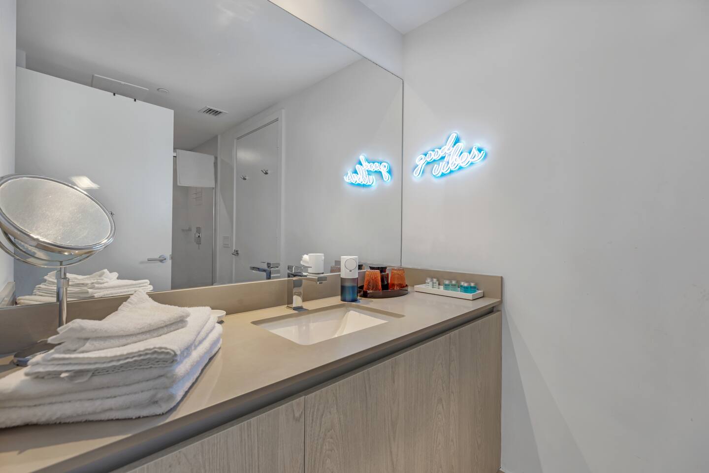 🏙️Modern new building with two private pools, cabanas and breathtaking views will take you to an absolutely fantastic state of mind. Ideal for groups of friends & families looking for a high-end Florida destination. As well as for a romantic break to spend with the loved ones. ⸻ 🛋️ Living Room: The living room offers a bright and inviting space with floor-to-ceiling windows that open to stunning ocean views. Designed with comfort and style in mind, it features plush blue seating, a large HD TV, and seamless access to the private balcony. Perfect for relaxing after a day at the beach or enjoying time with family and friends. ⸻ 🥂Dining Area: The dining area features a modern table with six plush blue chairs, creating an elegant yet comfortable space for shared meals. Positioned beside large windows, it offers plenty of natural light and seamless connection to the living room and balcony views. ⸻ 🍳 Kitchen: The sleek, fully equipped kitchen features modern appliances, cookware, and all the essentials for preparing meals at home. A stylish island with bar seating for two adds a casual dining option, perfect for quick breakfasts or evening drinks. After cooking, savor your coffee or meal out on the balcony with ocean views. ⸻ 🛏️Master Bedroom(Intercostal/city, Ocean-View): The master bedroom is designed for comfort and relaxation, featuring a plush king-size bed, ample storage with a walk-in closet and drawers, and a private en suite bathroom. Floor-to-ceiling windows open to the balcony, filling the space with natural light and ocean views. For quiet evenings, enjoy the TV while relaxing under the cool AC with a glass of wine after a sunny day. ⸻ 🛏️Second Bedroom(Intercostal/city, Ocean-View): The second bedroom features two full-size beds, a private closet, and an en suite bathroom also accessible from the living room. Step out to the balcony for breathtaking city and ocean views, or unwind inside with a TV . After a sunny day, relax under the cool AC with a glass of wine and enjoy the perfect retreat. ⸻ 🛁Master Bathroom: The master bathroom offers a clean and spacious design with modern fixtures, a large mirror, and plenty of storage. Connected directly to the master bedroom, it provides comfort and privacy for a refreshing start or relaxing end to your day. ⸻ 🛁Second Bathroom: The second bathroom is private to the second bedroom, with en-suite access and an additional entry from the living room. It features a sleek walk-in shower, modern vanity, and all essentials for a refreshing experience. ⸻ 🌅Private Balcony: The private balcony offers sweeping views of the ocean, Intracoastal, and city skyline. It’s the perfect spot to sip your morning coffee, watch the sunset, or simply relax while enjoying the refreshing coastal breeze. ⸻ 🧺 Washer/Dryer: A washer and dryer are available in the unit, providing the convenience of doing laundry during your stay so you can always have fresh clothes on hand.