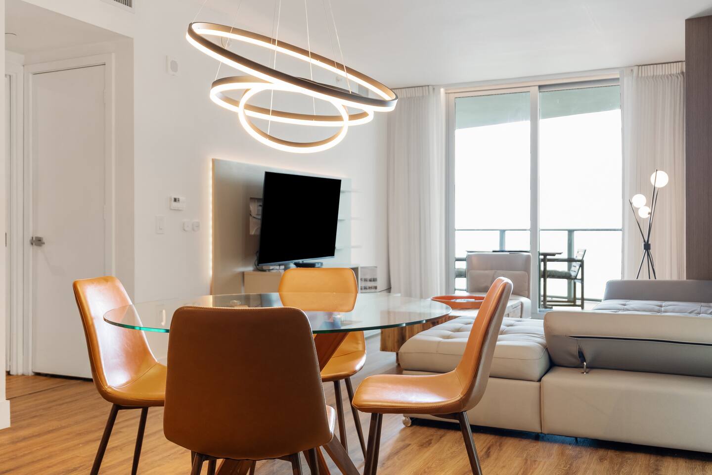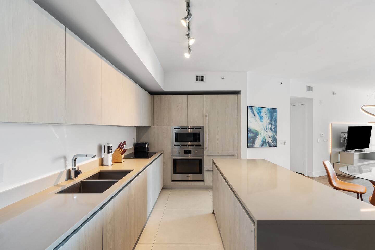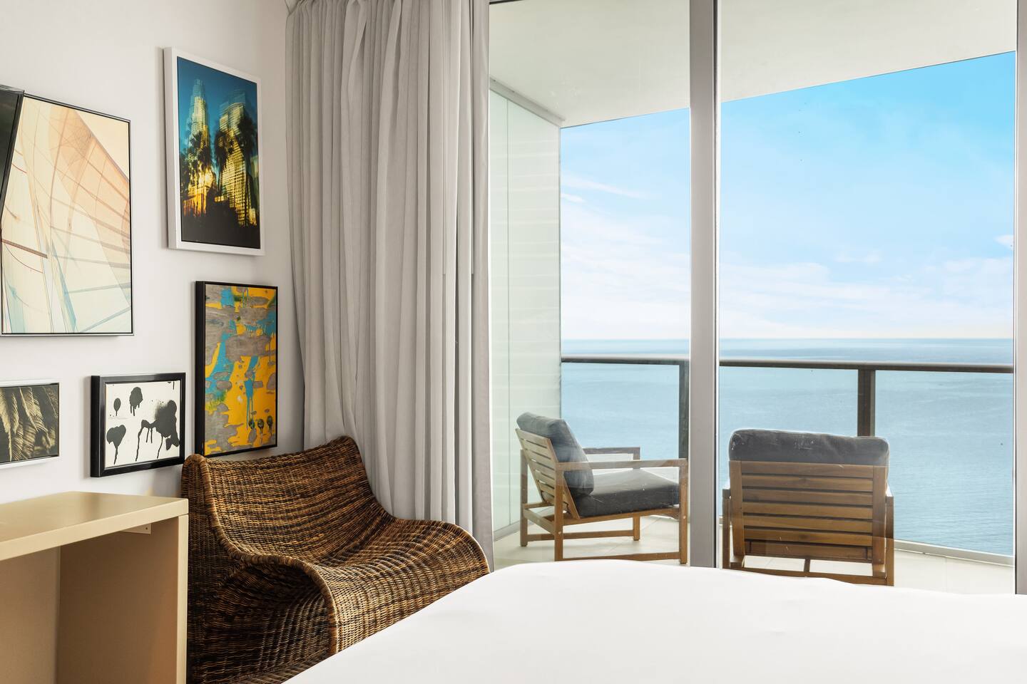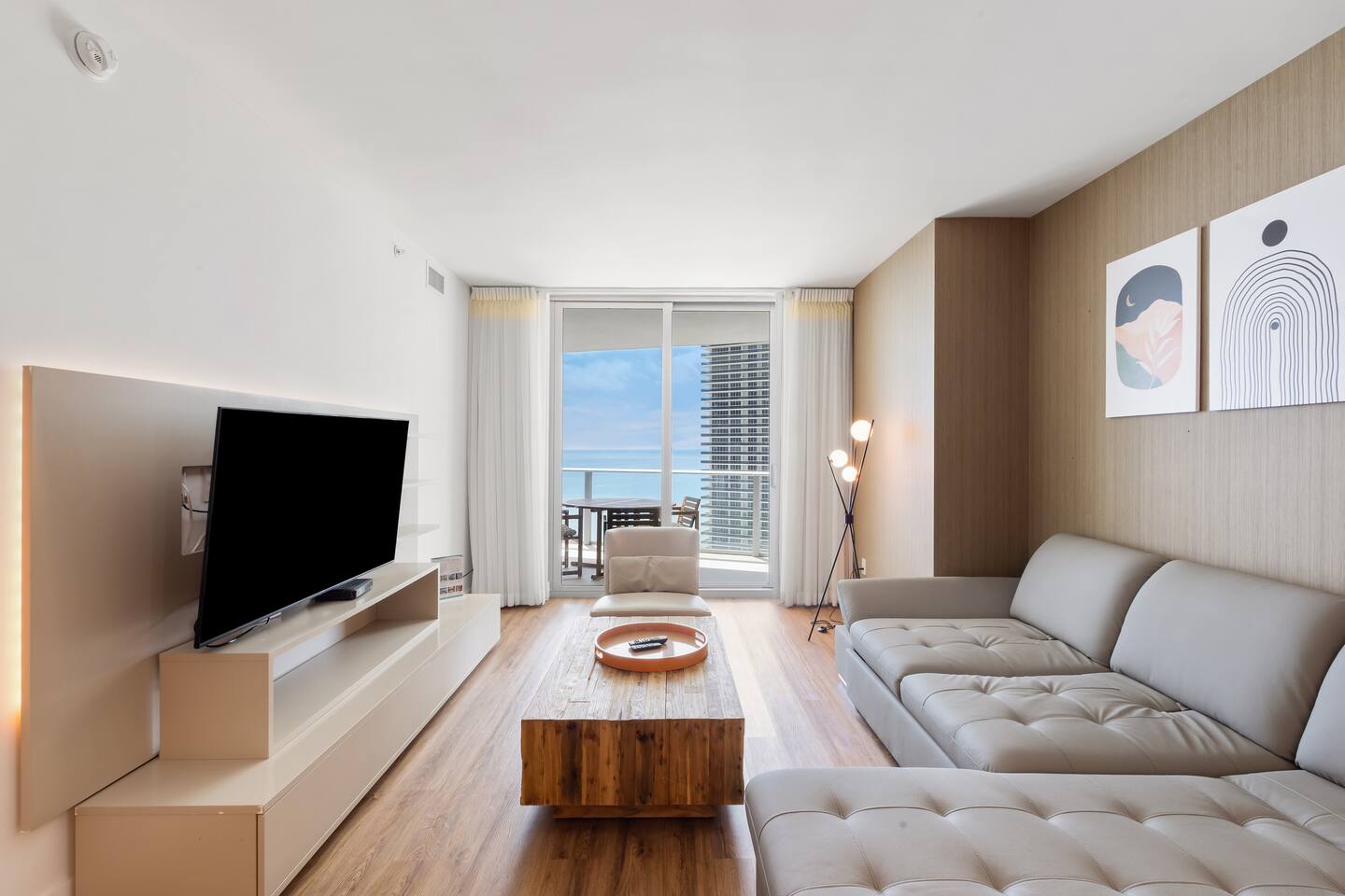 🍽️Dining Area: A sleek dining area awaits, featuring a modern table and comfortable seating - perfect for enjoying a cozy meal or a quick snack. ⸻ 🍲Kitchen: The fully-equipped kitchen boasts all modern appliances and utensils you’ll need. Whether you’re whipping up a gourmet meal or a quick snack, you’ll find the comfort and convenience to do so right here. ⸻ 📺Living area: Bright and modern space with two sleek couches, a rustic wooden coffee table, and a large flat-screen Smart TV. Floor-to-ceiling glass doors open to the balcony, filling the room with natural light and ocean views. Perfect for relaxing or gathering with family and friends. ⸻ 🛌Bedroom Spacious and inviting, the bedroom features a plush king bed with crisp linens, warm lighting, and modern décor. Floor-to-ceiling windows open to the balcony with ocean views. A private en-suite bathroom adds comfort and privacy. ⸻ 🚿Bathroom: Modern and spacious with a glass-enclosed walk-in shower, sleek vanity with large mirror, and fresh towels neatly prepared. Thoughtfully stocked with essentials, it offers a clean and comfortable space to refresh and unwind. ⸻ 🌇Balcony: Relax on your spacious private balcony with stunning ocean views. Featuring a dining set and lounge chairs, it’s the ideal place to enjoy morning coffee, sunset drinks, or simply unwind in the sea breeze.