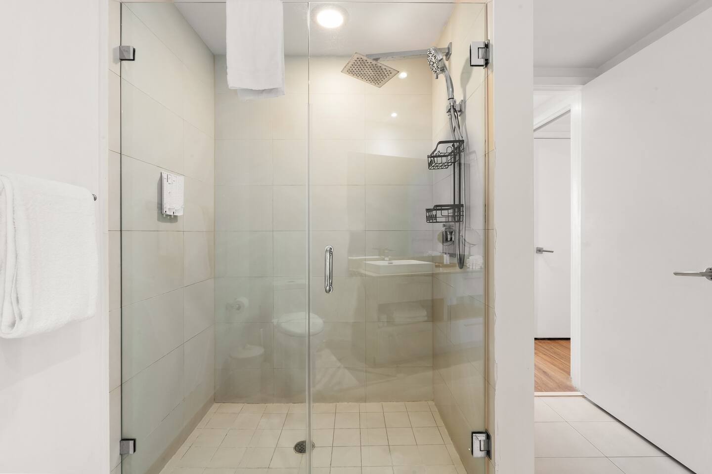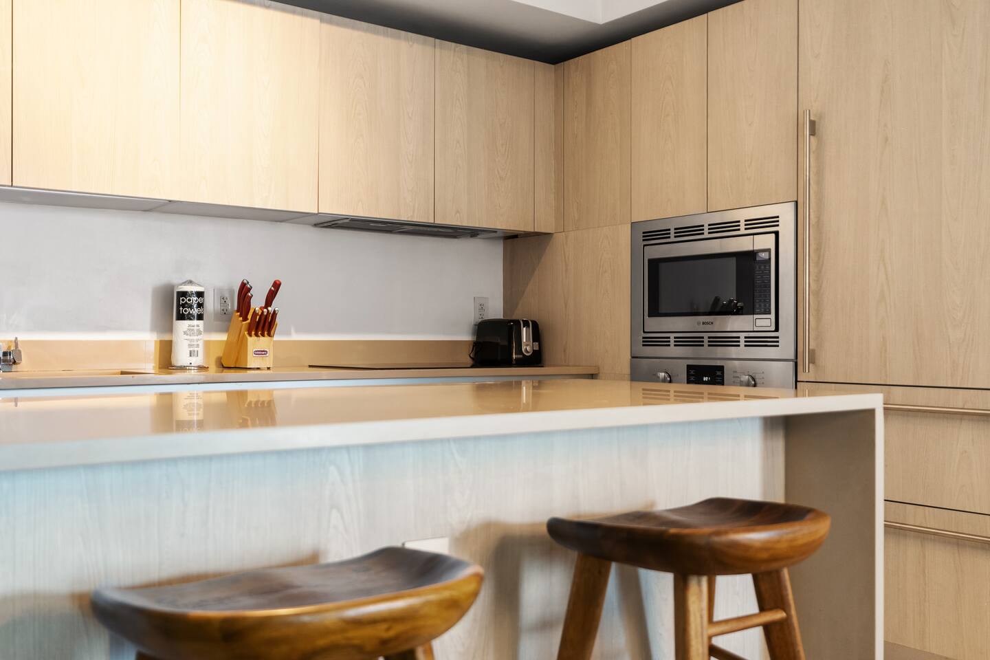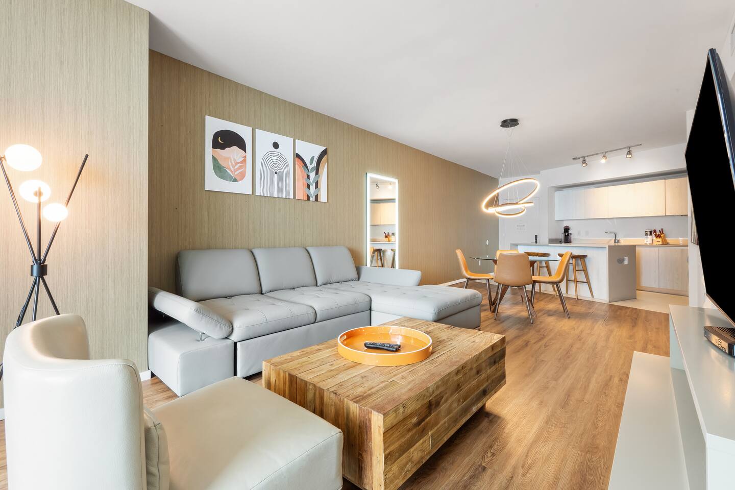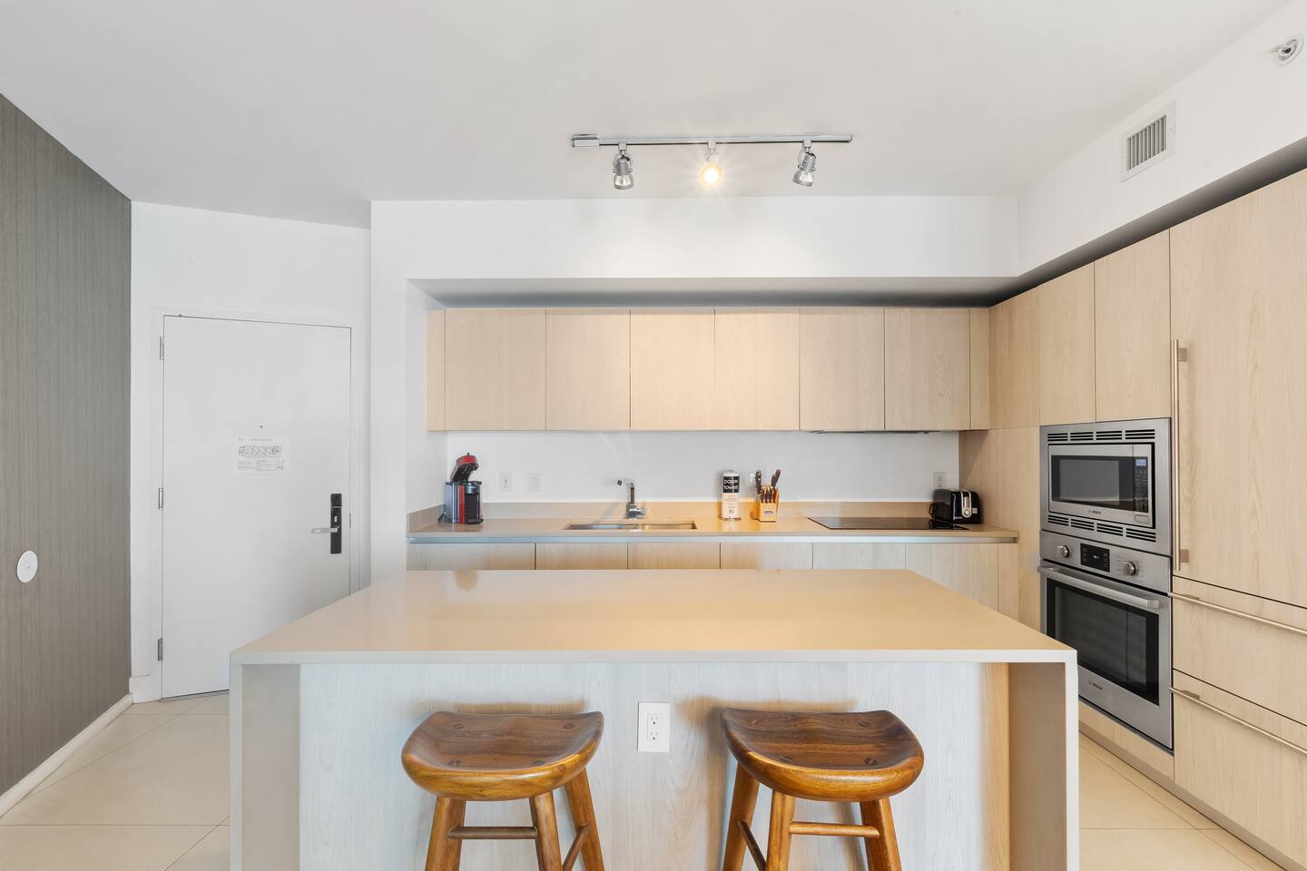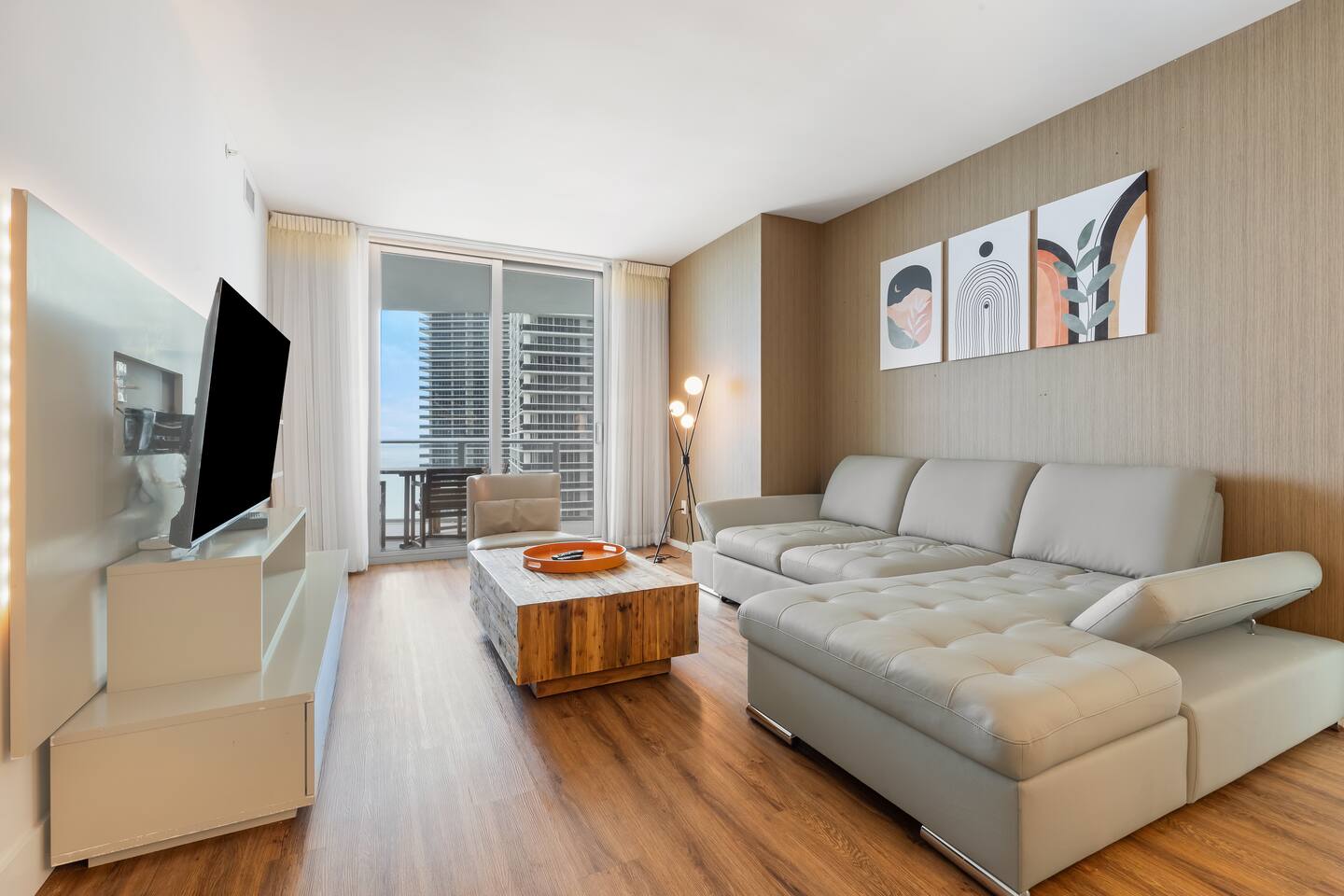 🍽️Dining Area: A sleek dining area awaits, featuring a modern table and comfortable seating - perfect for enjoying a cozy meal or a quick snack. ⸻ 🍲Kitchen: The fully-equipped kitchen boasts all modern appliances and utensils you’ll need. Whether you’re whipping up a gourmet meal or a quick snack, you’ll find the comfort and convenience to do so right here. ⸻ 📺Living area: Bright and modern space with two sleek couches, a rustic wooden coffee table, and a large flat-screen Smart TV. Floor-to-ceiling glass doors open to the balcony, filling the room with natural light and ocean views. Perfect for relaxing or gathering with family and friends. ⸻ 🛌Bedroom Spacious and inviting, the bedroom features a plush king bed with crisp linens, warm lighting, and modern décor. Floor-to-ceiling windows open to the balcony with ocean views. A private en-suite bathroom adds comfort and privacy. ⸻ 🚿Bathroom: Modern and spacious with a glass-enclosed walk-in shower, sleek vanity with large mirror, and fresh towels neatly prepared. Thoughtfully stocked with essentials, it offers a clean and comfortable space to refresh and unwind. ⸻ 🌇Balcony: Relax on your spacious private balcony with stunning ocean views. Featuring a dining set and lounge chairs, it’s the ideal place to enjoy morning coffee, sunset drinks, or simply unwind in the sea breeze.