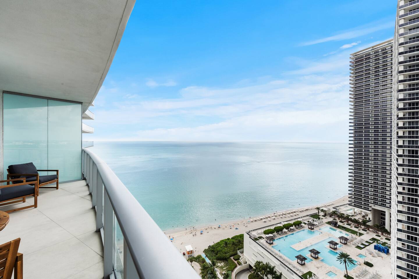 🏖️ Beach Access: The designated beach area, just a 5-minute walk from the resort, offers 2 lounge chairs and 1 umbrella for your comfort. Fresh beach towels are provided by the Resort Beach Service and are intended for use at the beach for your convenience. ✅ Included in resort fee ⸻ 🏊 Rooftop Pools & Sun Deck (9th floor): Two infinity-edge ocean-view pools, including a rooftop pool with sweeping views of the Atlantic. Located on the 9th floor, featuring a sundeck and private cabanas. Jacuzzi also available. ✅ Included in resort fee ⸻ 🏋️ Fitness Center(9th floor): Stay active in the fully equipped fitness center, featuring Oceanview cardio machines, free weights, and strength training equipment designed to keep your routine on track. ✅ Included in resort fee ⸻ 🧑💼 Concierge Service: 24-hour personal concierge and room service for all guests. ✅ Included in resort fee ⸻ 🍽️ Terrazas Restaurant & Bar (Poolside): Located right next to the rooftop pool, Terrazas serves fresh seafood, seasonal dishes, and South Florida-inspired cuisine. Enjoy food and drinks poolside from the adjacent full-service bar. 💲 Paid separately ⸻ 🍣 ETARU Restaurant: Located just a few steps from Terrazas, ETARU offers contemporary Japanese Robatayaki cuisine in a waterfront setting. 💲 Paid separately.