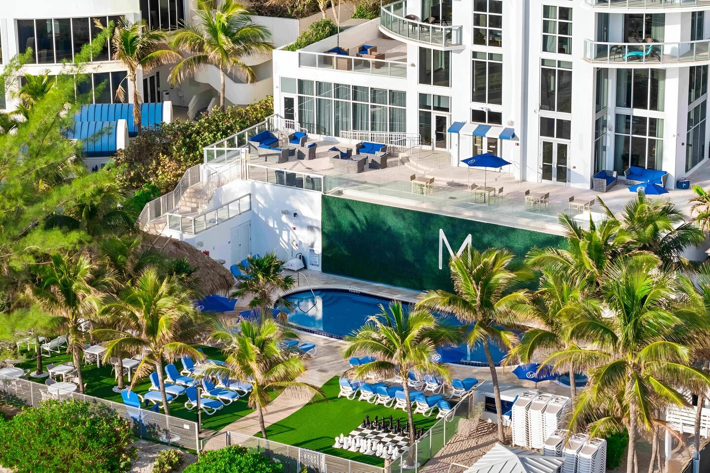 🌊 Beach Access & Service Enjoy direct access to a private beach with complimentary loungers and umbrellas—perfect for sunbathing or relaxing by the shore. ✅ Included in resort fee (must be paid additionally on time of check-in) ⸻ 🏊 Oceanfront Pool & Hot Tub Take a dip in the sparkling outdoor infinity-edge pool or unwind in the soothing hot tub. A peaceful space to relax any time of day. ✅ Included in resort fee. ⸻ 🏋️ Fitness Center & Wellness Stay active in the 24-hour fitness center equipped with state-of-the-art CYBEX cardio machines and free weights. Unwind in the sauna or join complimentary weekend Zumba and yoga classes. ✅ Included in resort fee. ⸻ 🚴 Beach Cruiser Bikes Explore Sunny Isles with complimentary beach cruiser bikes—available for one hour per day. ✅ Included in resort fee. ⸻ 🎮 Game Room Enjoy family-friendly games and activities in the on-site game room. ✅ Included in resort fee. ⸻ 🍾 Champagne Welcome Receive a complimentary glass of champagne upon check-in to start your stay in style. ✅ Included in resort fee. ⸻ 🍽️ Dining Options on site • Piacere Restaurant: Savor contemporary American cuisine with Mediterranean influences and ocean views. • Pool & Beach Bar: Enjoy refreshing snacks and Caribbean-flavored cocktails served poolside or on the beach. • M Bar & Lounge: Relax with a pre-dinner cocktail or unwind after a long day in a stylish setting. 💲 Dining services are paid separately. ⸻