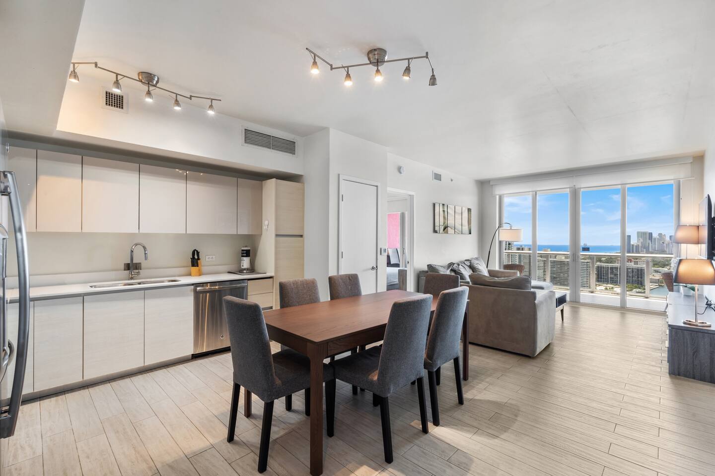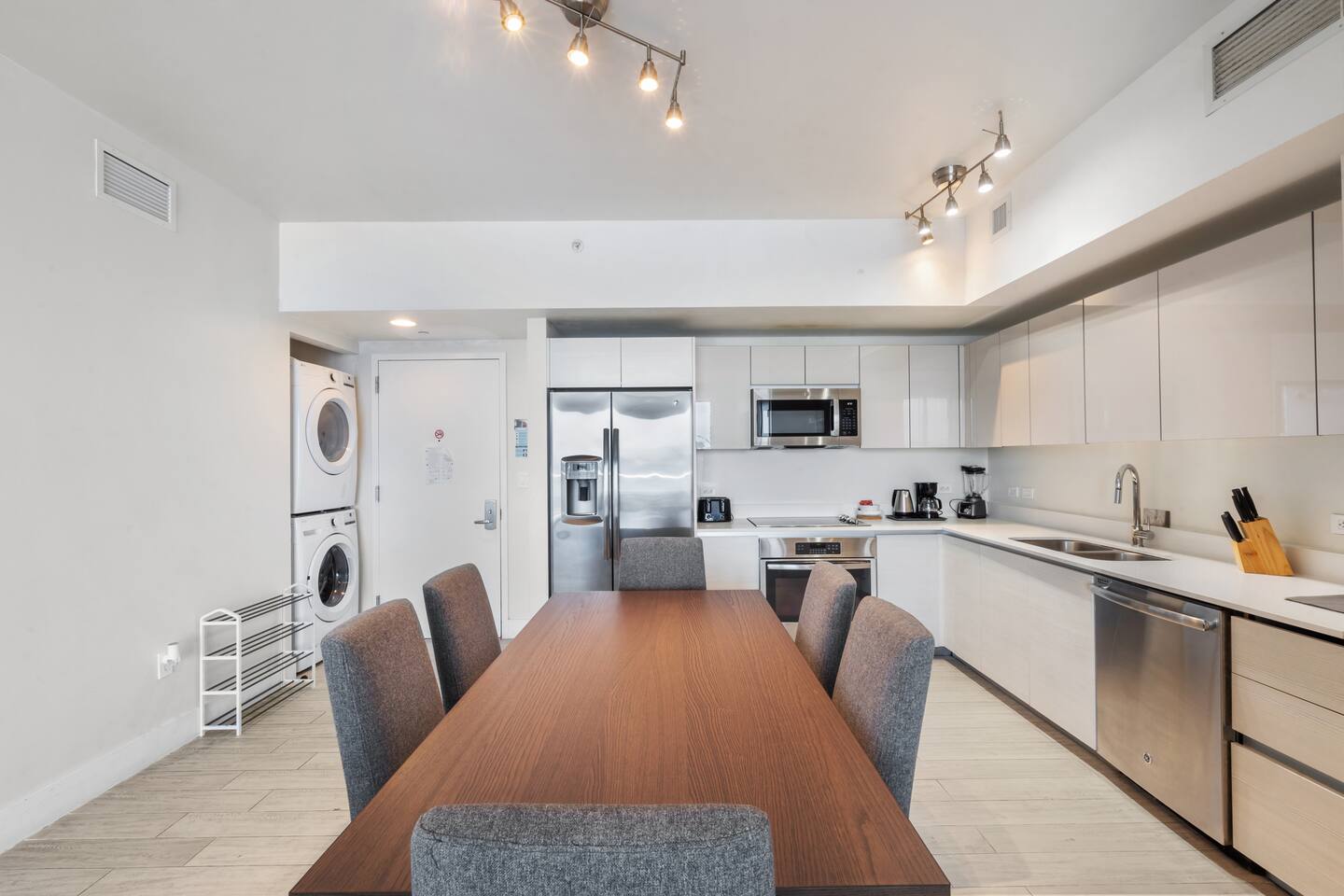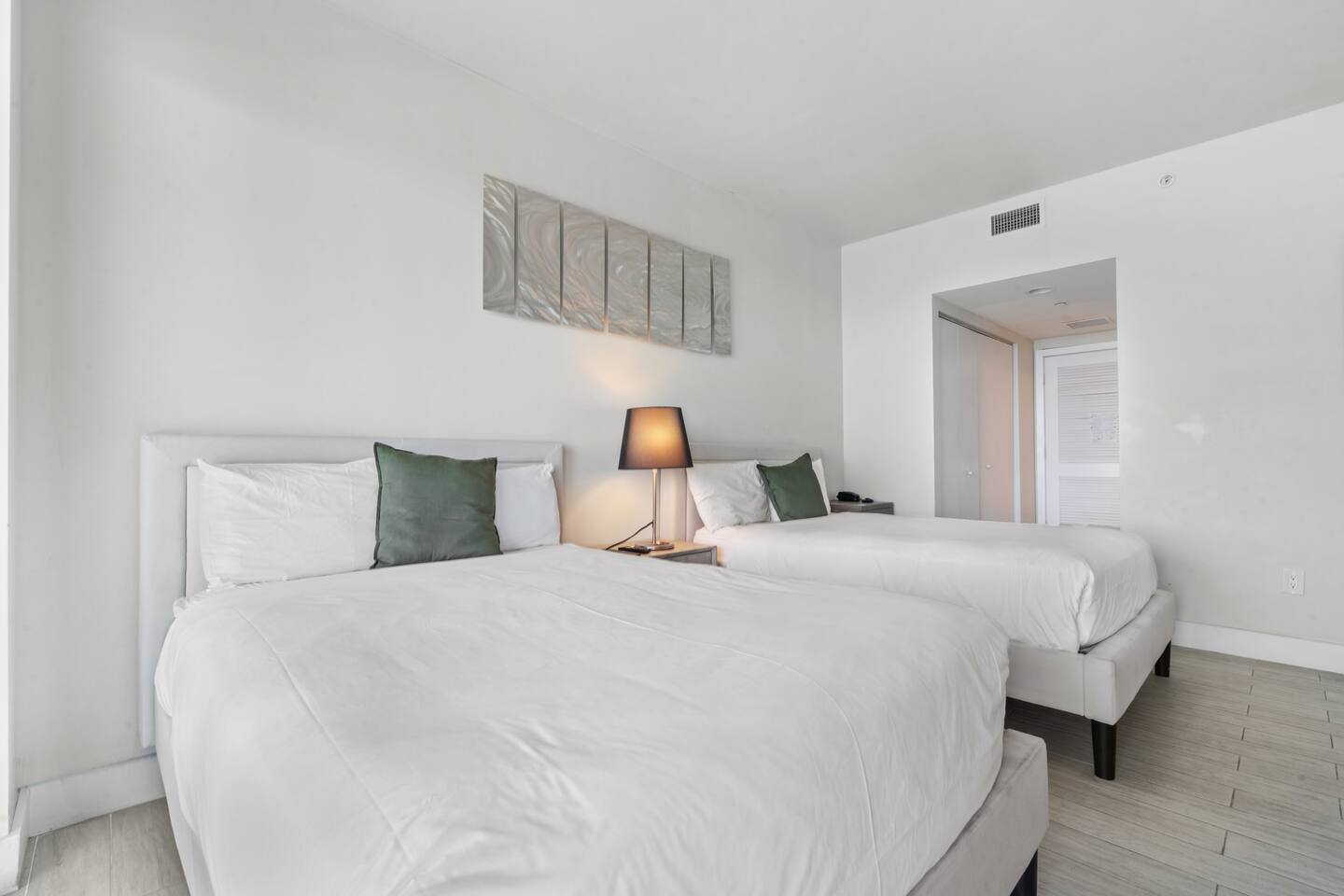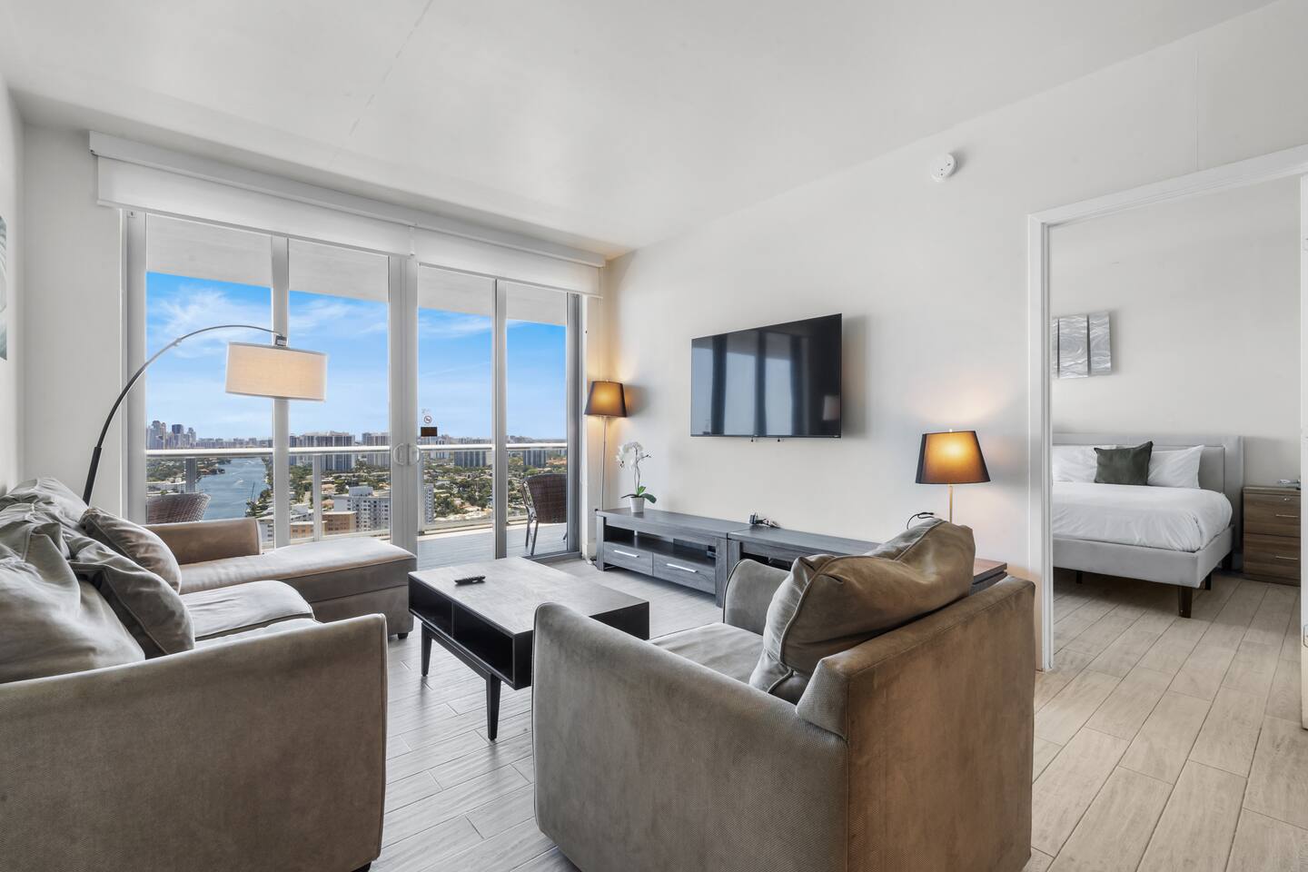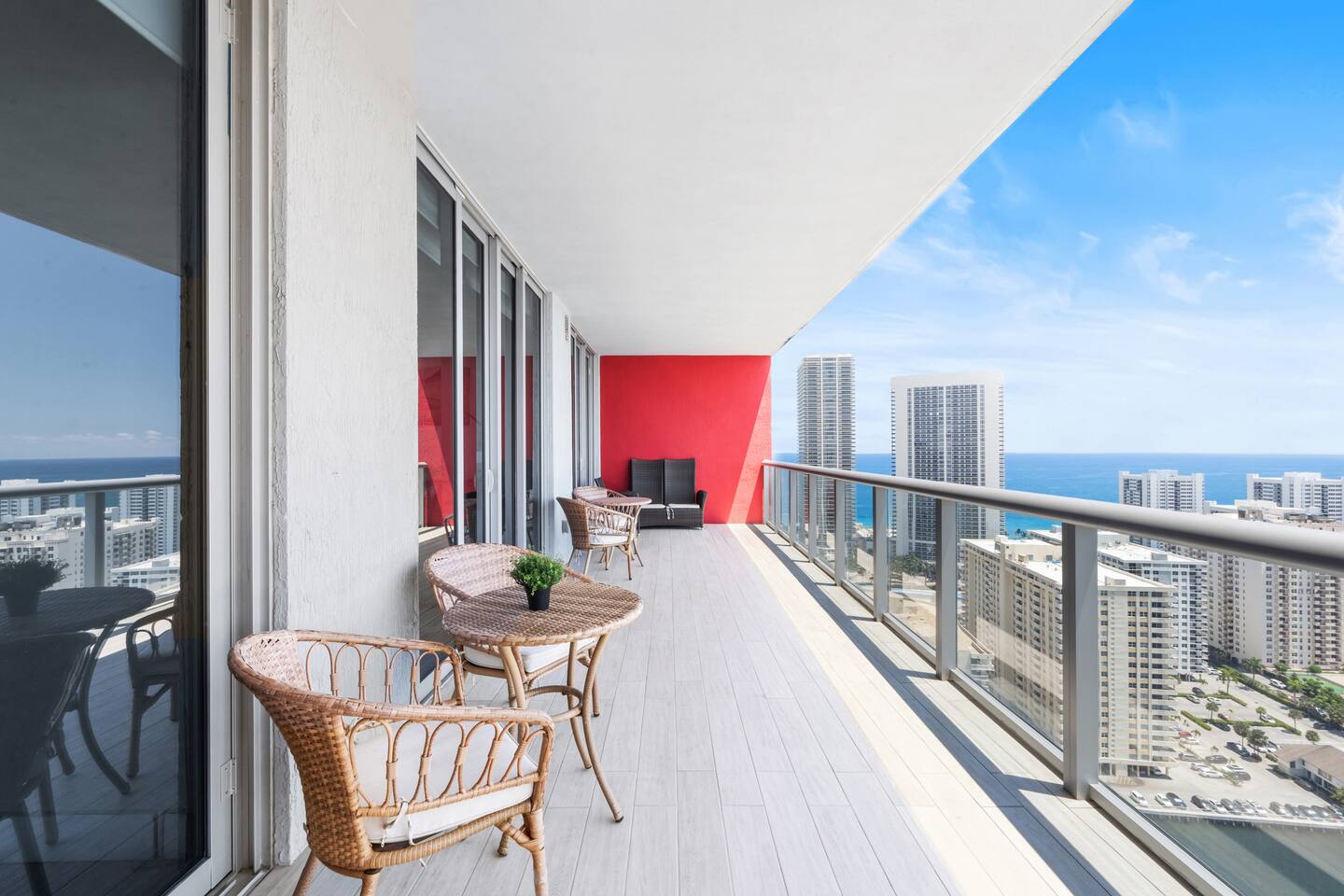 🏝️Located in the heart of South Florida, this penthouse is just a short stroll from the sandy shoreline and close to Gulfstream Park, Aventura Mall, Sunny Isles, and Hollywood Beach. Enjoy a variety of nearby restaurants, bars, and beachside cafés, with easy highway access to Miami’s glamour, Wynwood’s art scene, and Fort Lauderdale. Whether you’re here to relax, explore, or work remotely, this penthouse is the perfect base for your South Florida getaway. ⸻ 🍳 Kitchen: The kitchen is fully equipped with sleek, modern appliances, including a coffee maker and dishwasher for added convenience. Whether you’re starting your day with a fresh brew or cooking a delicious dinner, this stylish space is ready for all your culinary moments. ⸻ 🥂Dining Area: The dining area offers a welcoming space to gather, featuring a sleek table with comfortable seating for six. Whether you’re enjoying a casual breakfast or a special dinner, the open layout keeps you connected to the kitchen, living room, and beautiful views beyond. ⸻ 🛋️Living Room: The living room is a bright and inviting space with large windows that frame stunning water and city views. A plush, comfortable sofa doubles as an extra sleeping space for added flexibility, while a flat-screen TV offers entertainment after a day of exploring. Warm lighting and modern design create a cozy atmosphere you’ll love spending time in. ⸻ 🛏️Master Bedroom(Intercostal/city, side ocean-view): The master bedroom is your private retreat, featuring a king-size bed with plush bedding, abundant natural light, and direct access to the balcony for fresh air and stunning views. Enjoy a dedicated workspace, ample storage for your essentials, and a Smart TV to unwind after a day of adventures. ⸻ 🛏️Second Bedroom(Intercostal/city, side ocean-view): The second bedroom is perfect for families, kids, or friends sharing, featuring two comfortable double beds with fresh linens and fluffy pillows. A bright, cheerful atmosphere and a Smart TV make it ideal for relaxing movie nights or morning cartoons. ⸻ 🛁Master Bathroom: The master bathroom is a private en-suite designed for comfort and style, featuring a walk-in shower with sleek fixtures, bright lighting, and a large mirror. Enjoy soft towels and premium toiletries in a fresh, modern space that keeps you feeling refreshed throughout your stay. ⸻ 🛁Second Bathroom: The second bathroom, located within the second bedroom, features a clean, modern design with a walk-in shower, fresh towels, and all the essentials provided. Convenient and stylish, it offers guests comfort and privacy during their stay. ⸻ 🌅Balcony: The balcony is your private outdoor escape, offering incredible ocean, Intracoastal, and city views. With a spacious layout, comfortable seating, and a dining area perfect for meals or evening drinks, it’s the ideal spot to relax and soak in the Miami vibes any time of day. ⸻ 🧺 Washer/Dryer: In-unit washer and dryer available for your convenience.